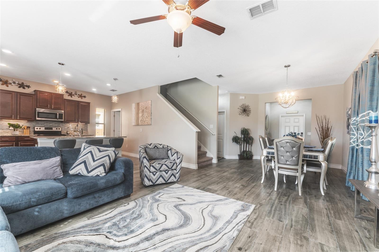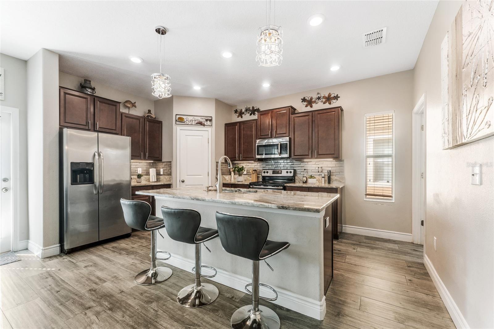 Esta bela casa de 3 quartos e 3 banheiros na comunidade de Connerton, em Land O' Lakes, é uma verdadeira joia! Com 2.074 pés quadrados de espaço cuidadosamente projetado, oferece luxo e funcionalidade. O primeiro andar é perfeito para a vida moderna, apresentando uma cozinha atualizada com impressionantes bancadas de granito, um conjunto completo de eletrodomésticos, iluminação LED e uma conveniente despensa. O layout aberto conecta perfeitamente as áreas de estar e de jantar, tornando-o ideal para entretenimento ou para a vida cotidiana. No andar de cima, a suíte principal é um verdadeiro retiro com pias duplas e banheiro tipo spa, enquanto os dois quartos adicionais são perfeitos para famílias ou convidados. A segunda área de estar oferece flexibilidade adicional para relaxamento ou hobbies. Em toda a casa, você encontrará placas de porcelanato atualizadas e recursos como aquecimento e resfriamento central e aquecedor de água a gás sem tanque garantem conforto e eficiência durante todo o ano. O quintal privativo é um destaque, completo com uma charmosa fogueira e belas vistas para o mar - perfeito para relaxar ou organizar reuniões. Os residentes de Connerton desfrutam de uma variedade de comodidades, incluindo piscinas em estilo resort, academias de ginástica, parques e trilhas para caminhada. Com excelentes escolas, lojas e restaurantes nas proximidades, esta casa oferece o melhor em conforto e conveniência. Não perca a oportunidade de adquirir este maravilhoso imóvel!