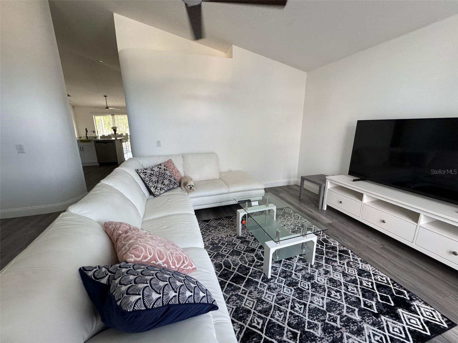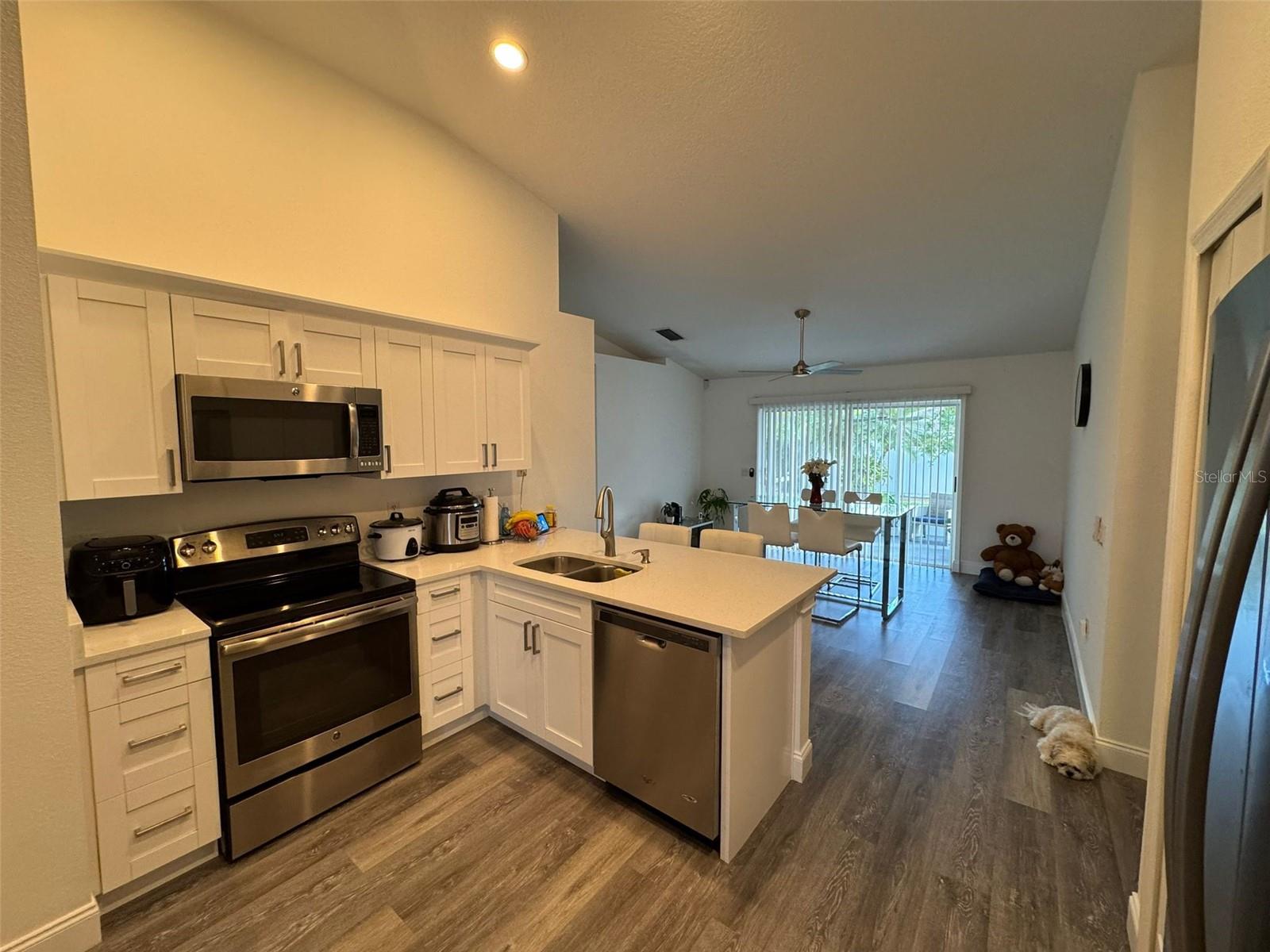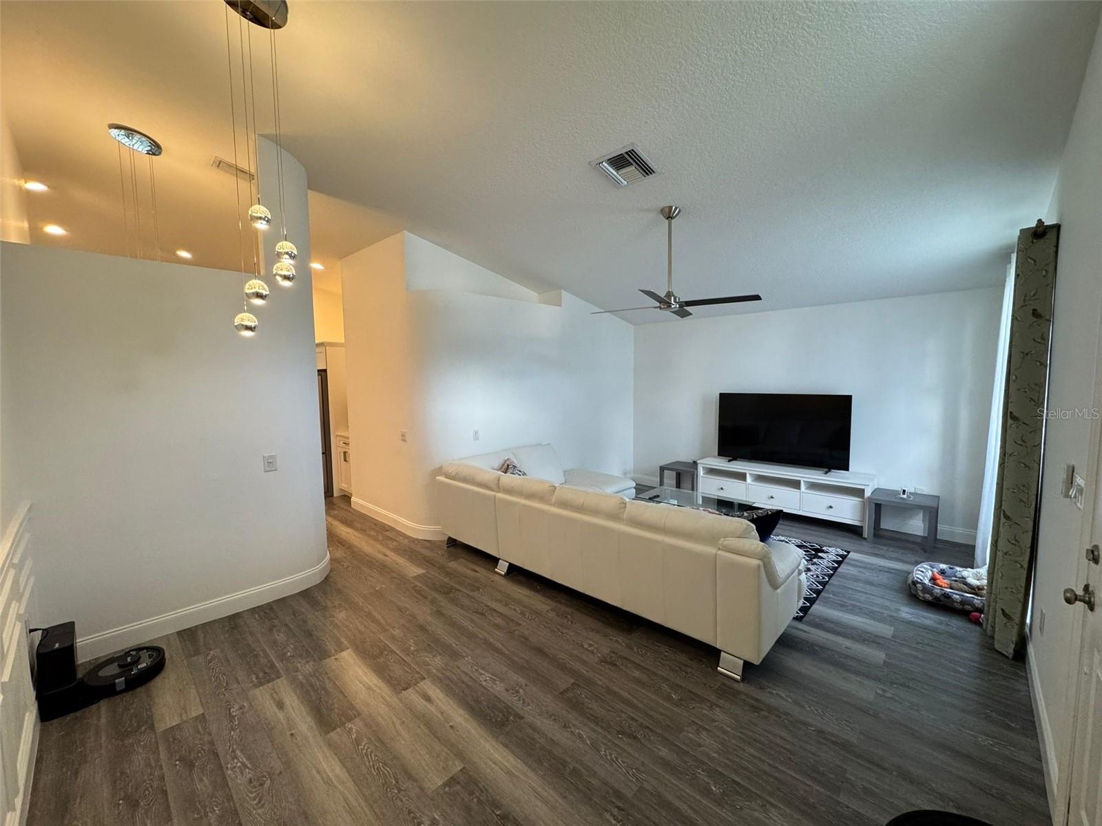 Aqui está sua oportunidade de possuir este 3/2/2 lindamente conservado com quintal cercado e varanda com tela arejada. A casa oferece um A Sala Familiar e uma nova cozinha desta planta popular têm tetos abobadados que se unem para criar uma área de reunião aberta e iluminada para família e amigos. A sala de estar e sala de jantar multifuncional separada oferece espaço de reunião adicional e flexibilidade para quem gosta de trabalhar em casa. A Suíte Primária possui um amplo closet e banheiro privativo com banheira de jardim. A nova cozinha oferece um pacote completo de eletrodomésticos em aço inoxidável e uma espaçosa área de refeições, além do bar que serve café da manhã. Você vai querer passar um tempo desfrutando de seu café da manhã ou de uma bebida à noite na varanda arejada com vista para o quintal cercado que foi lindamente paisagístico com lindas plantas. Há um novo sistema de sprinklers e a comunidade economiza dinheiro com água recuperada, mantendo a grama da comunidade verde e vibrante. A planta dos quartos divididos oferece privacidade e os quartos secundários compartilham o banheiro do corredor. Cozinha nova, pintura nova, piso novo.