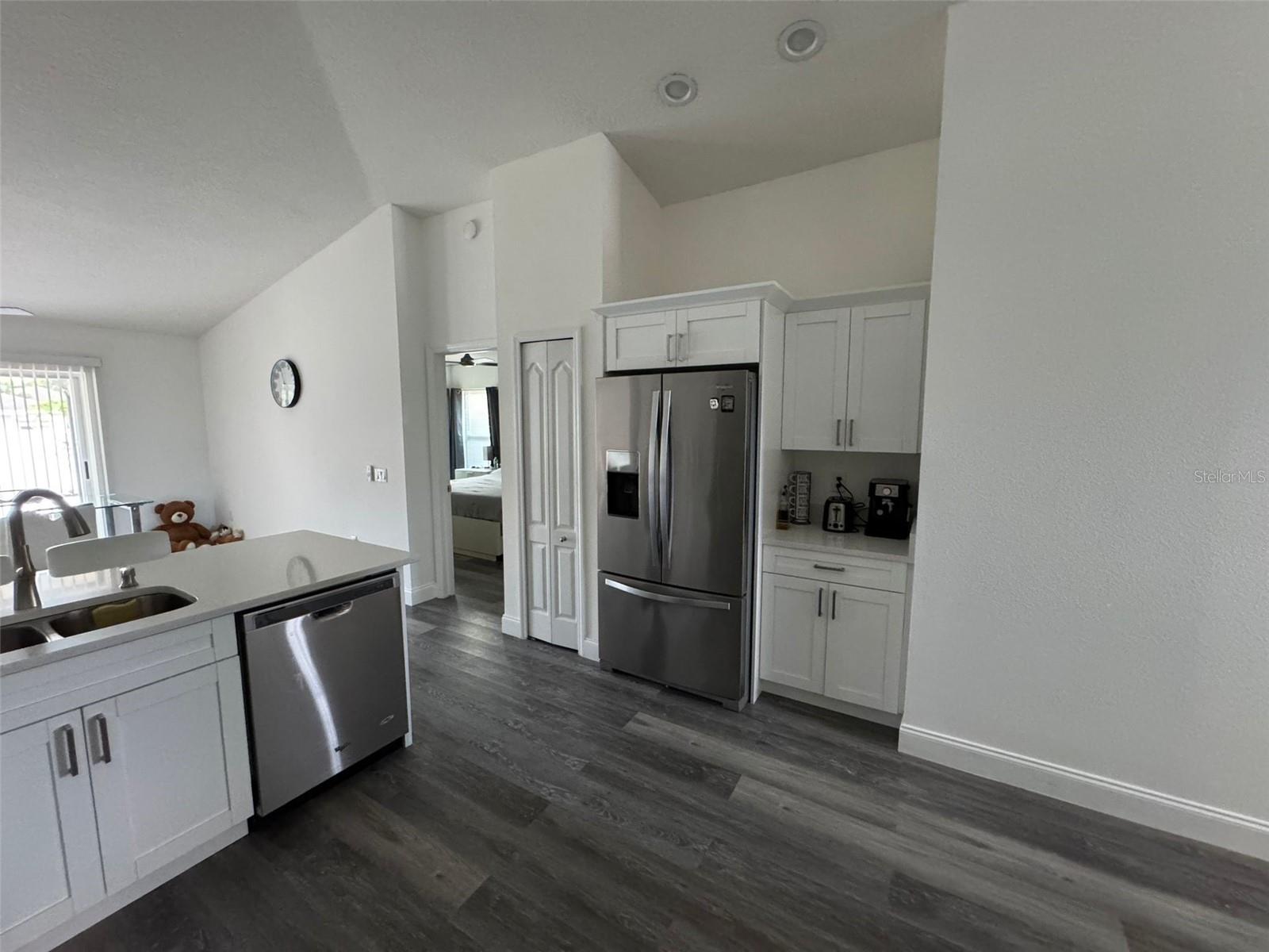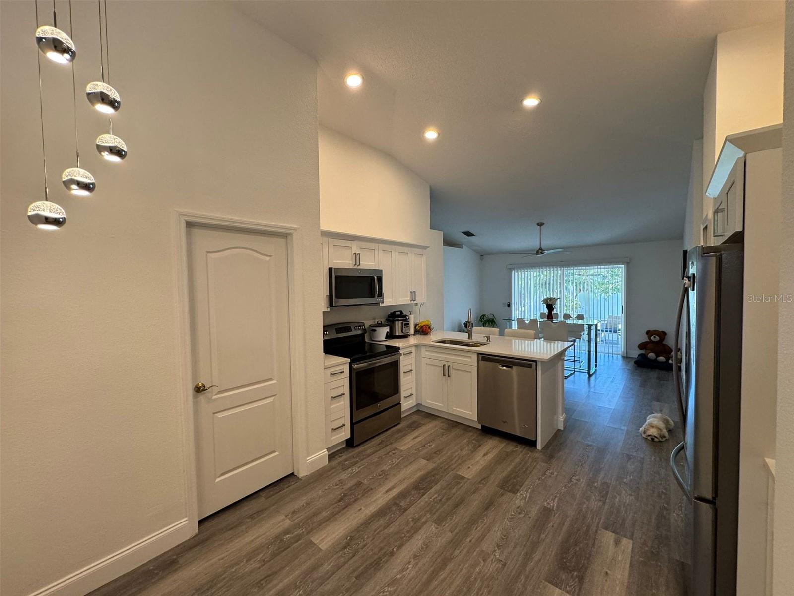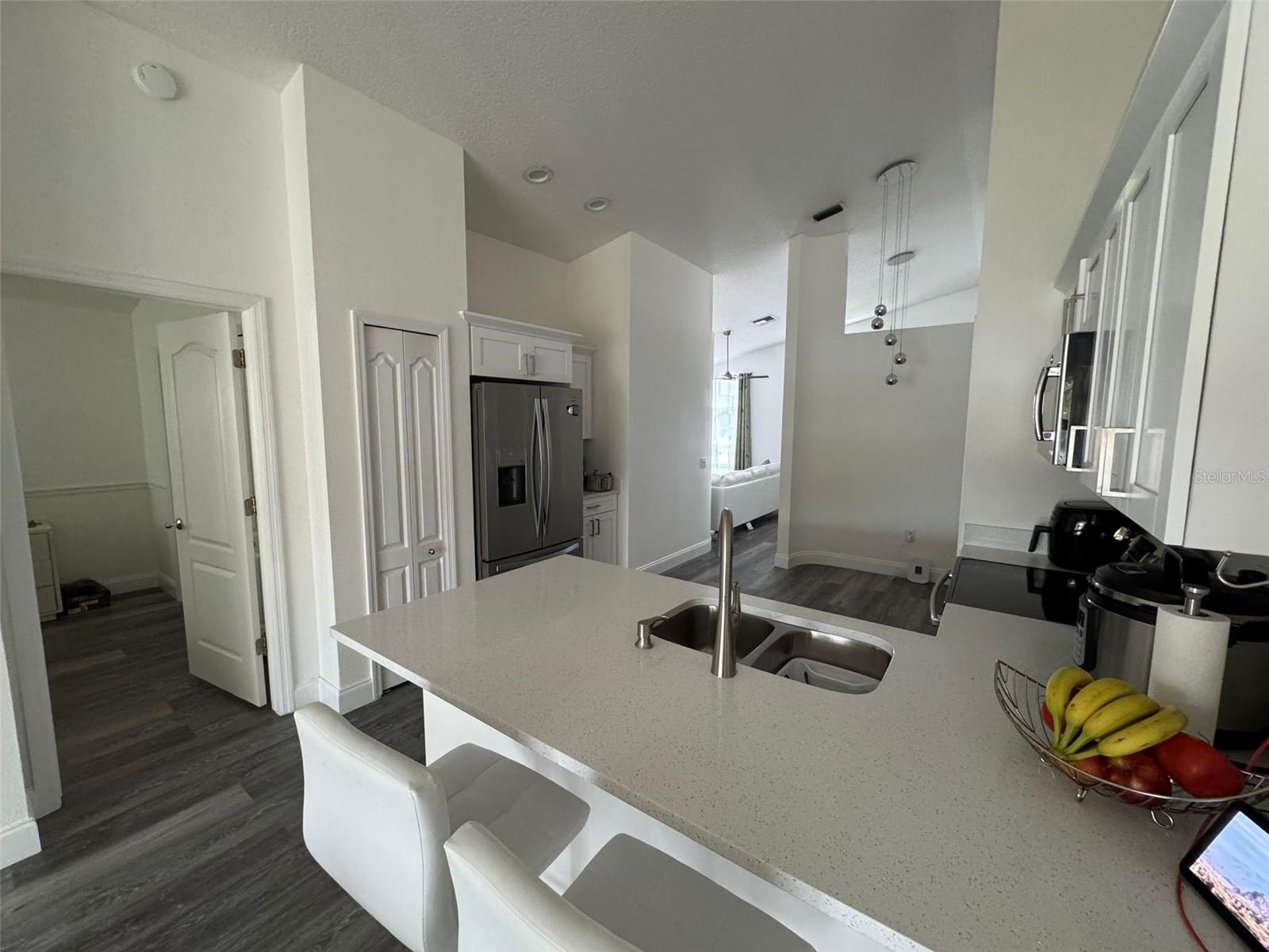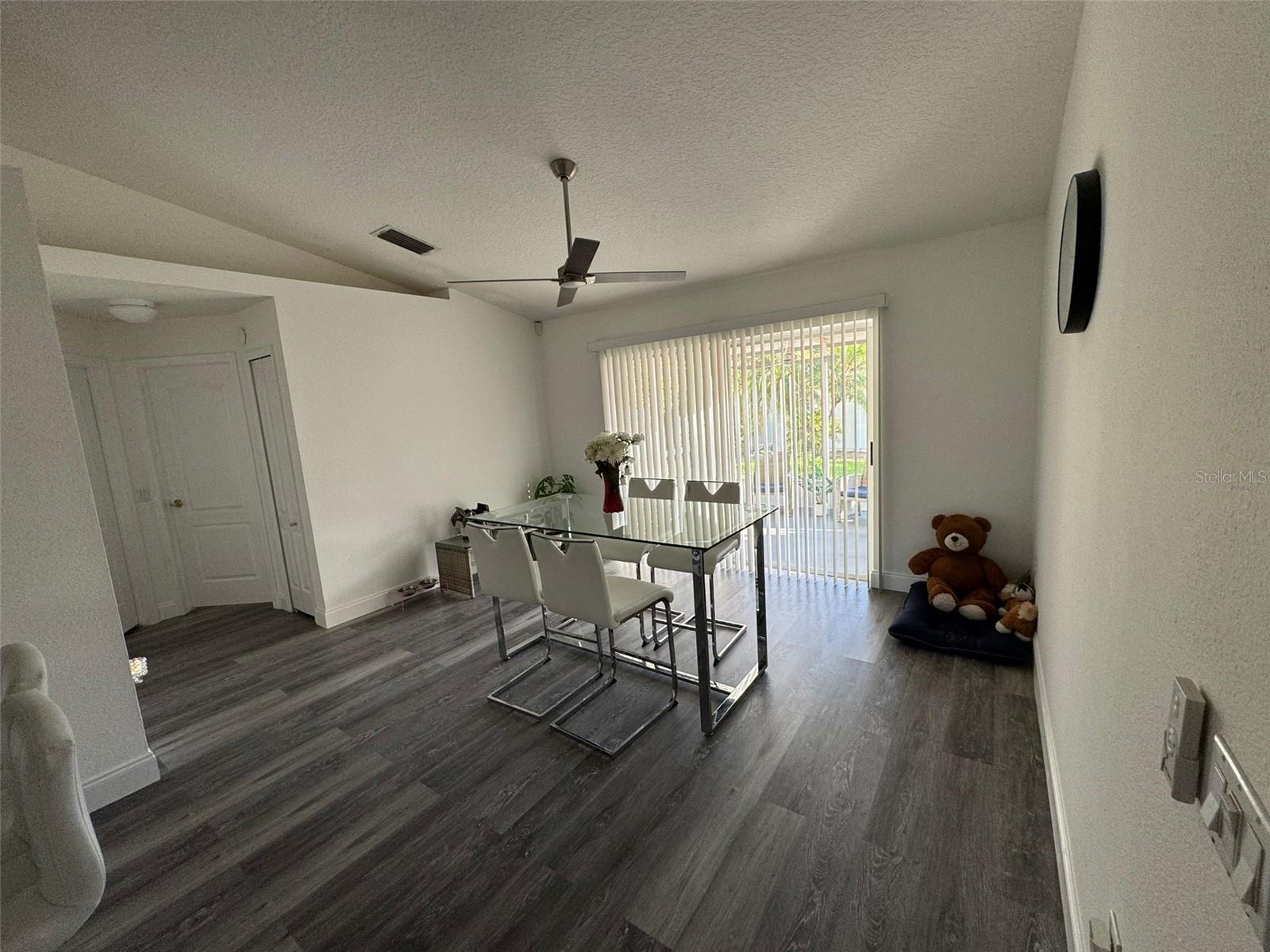 Aqui está sua oportunidade de possuir este 3/2/2 lindamente conservado com quintal cercado e varanda com tela arejada. A casa oferece um A Sala Familiar e uma nova cozinha desta planta popular têm tetos abobadados que se unem para criar uma área de reunião aberta e iluminada para família e amigos. A sala de estar e sala de jantar multifuncional separada oferece espaço de reunião adicional e flexibilidade para quem gosta de trabalhar em casa. A Suíte Primária possui um amplo closet e banheiro privativo com banheira de jardim. A nova cozinha oferece um pacote completo de eletrodomésticos em aço inoxidável e uma espaçosa área de refeições, além do bar que serve café da manhã. Você vai querer passar um tempo desfrutando de seu café da manhã ou de uma bebida à noite na varanda arejada com vista para o quintal cercado que foi lindamente paisagístico com lindas plantas. Há um novo sistema de sprinklers e a comunidade economiza dinheiro com água recuperada, mantendo a grama da comunidade verde e vibrante. A planta dos quartos divididos oferece privacidade e os quartos secundários compartilham o banheiro do corredor. Cozinha nova, pintura nova, piso novo.