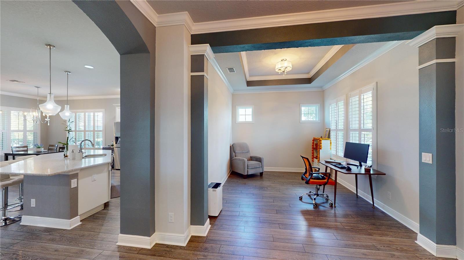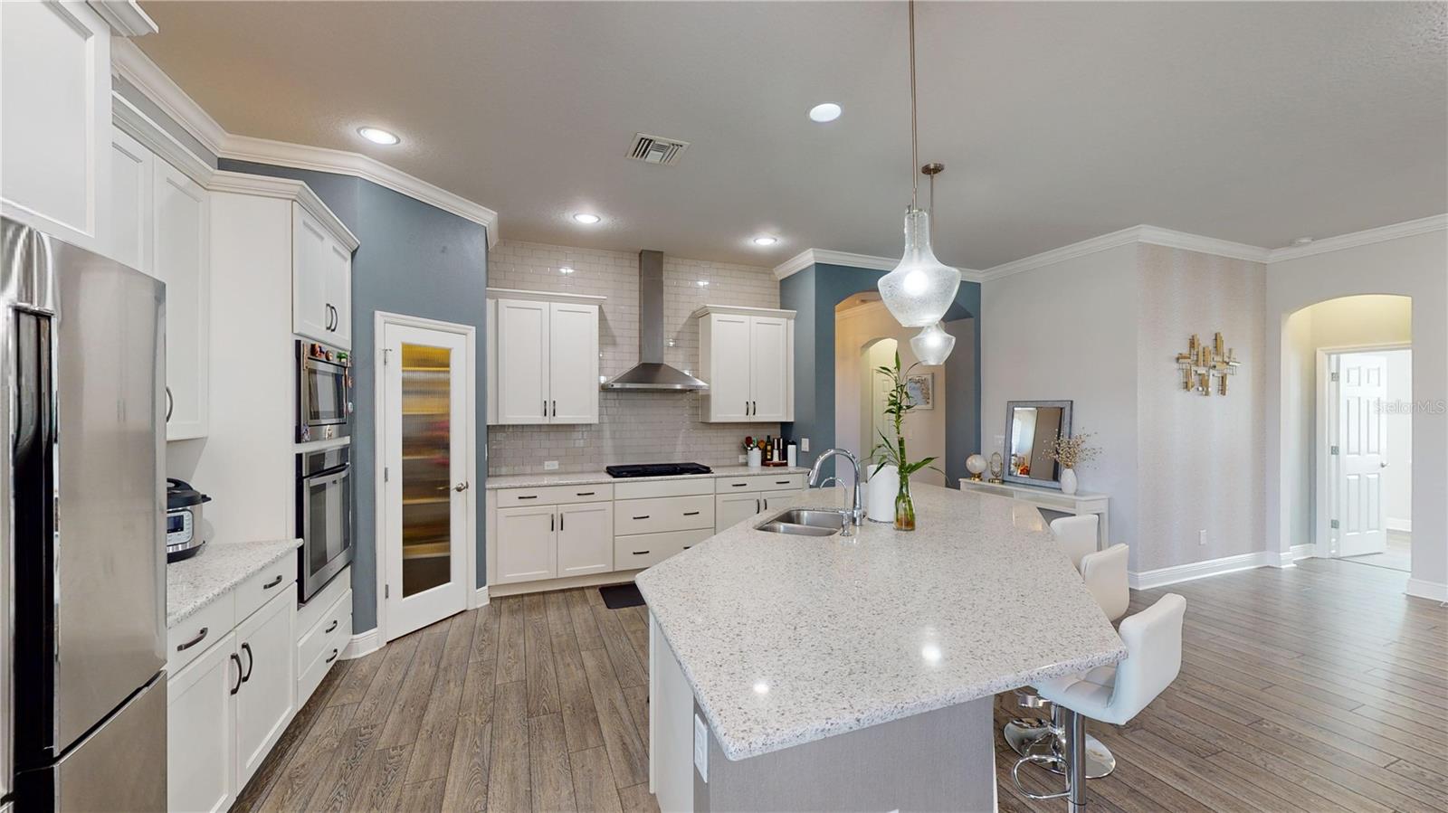 Bem -vindo a Bexley !! Esta recentemente reduzida e impressionante 3 quartos, além de uma sala de bônus e uma garagem de 3 carros, está disponível na incrível comunidade de Bexley. Esta casa de David Weekley apresenta um lote de canto, atualizações personalizadas de ponta, como a madeira como a madeira que o guia pela casa, persianas de plantação de madeira por toda parte e uma visão de lago !! Ao entrar na casa, você se encontra na área de Den/Office, que está transbordando de luz natural e tem vista para a lagoa do outro lado da rua. À sua esquerda, você encontrará um dos quartos e banheiros de reposição. O quarto possui madeira como piso de azulejos, um ventilador de teto, um armário e tem vista para a lagoa. O banheiro possui uma única vaidade com bancada em granito, armários de madeira maciça, combinação de válvulas e chuveiro/banheira. Enquanto você continua por toda a casa, você encontrará a cozinha, refeições, combinação da sala de estar. A cozinha possui uma grande ilha com bancada em granito com pia, utensílios de aço inoxidável, armários de madeira branca sólida, fogão a gás, caminhada em despensa, construída em microondas e mais e uma grande geladeira. A sala de estar construiu alto -falantes de som surround e iluminação de montagem nivelada. Fora da sala de estar, você encontrará o segundo quarto com private banhoso, um ventilador de teto e um closet. O segundo banheiro apresenta uma única vaidade com bancada em granito, armários de madeira sólida branca, combinação de válvulas e chuveiro/banheira. Ao chegar à parte traseira da casa, você encontrará a porta de entrada Lanai e a suíte primária. A suíte primária é a estrela do show com tetos de bandeja e um banheiro que é para morrer !! O privilégio primário possui um grande espaço com armário de linho, chuveiro independente, vaidades duplas com bancadas em granito e armários de madeira sólida branca, despensa de água privada e grande closet com inseto. O totalmente exibido em Lanai é o ponto de encontro perfeito para reuniões ou para um bom lugar para ler um livro. Bexley tem muito a oferecer com o BMX Park, mais de 10 quilômetros quadrados de espaço verde, 1200 acres de espaço verde, cafés Twisted Sprocket, Fitness Center, 2 piscinas ao estilo resort, Splashpad e vários playgrounds. A Bexley Elementary está no bairro, bem como em uma opção Montessori. Como todos sempre dizem: Bom, melhor, Bexley! https://my.matterport.com/show/?m=rfrfu2j6sqj&mls=1