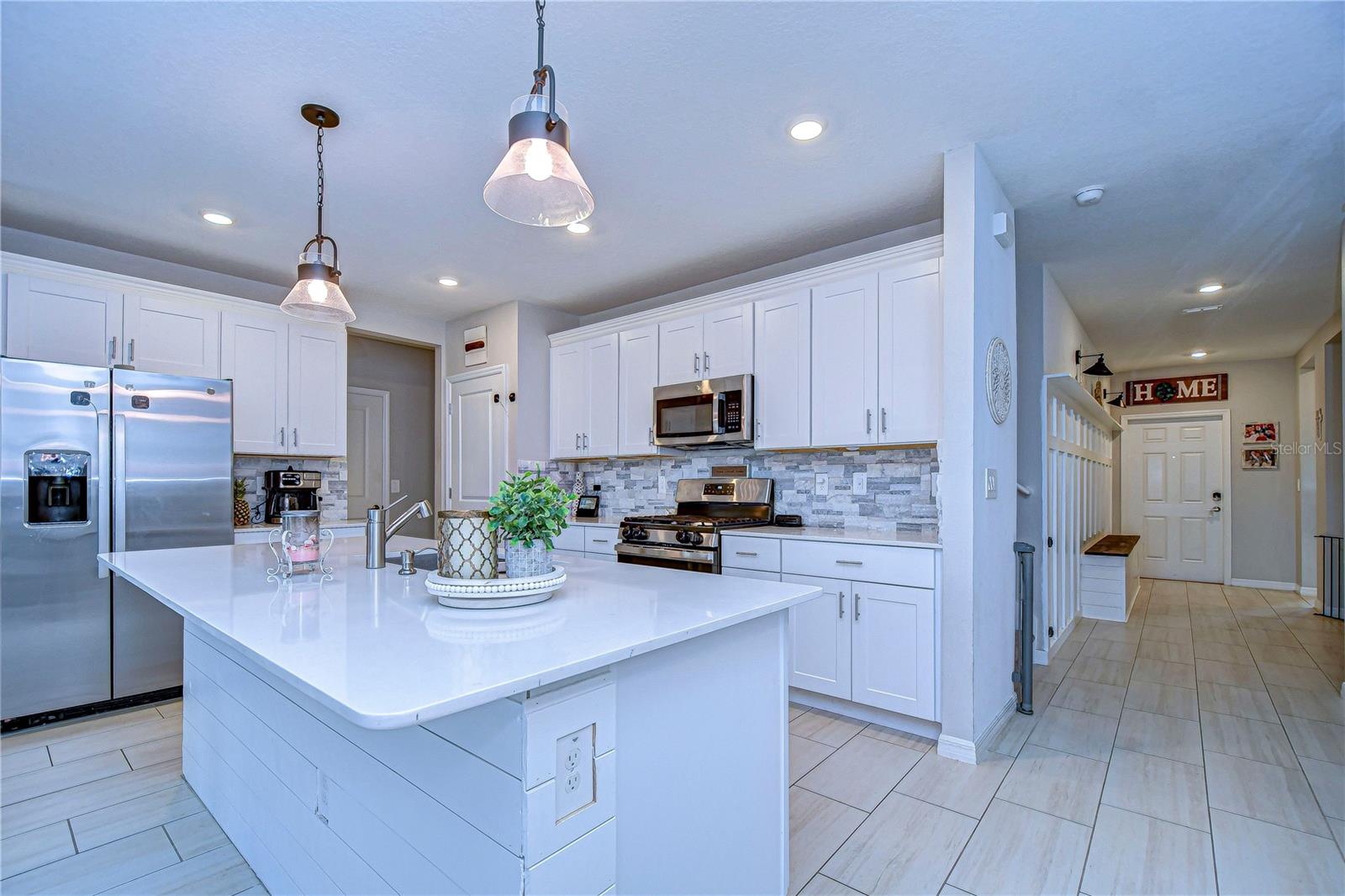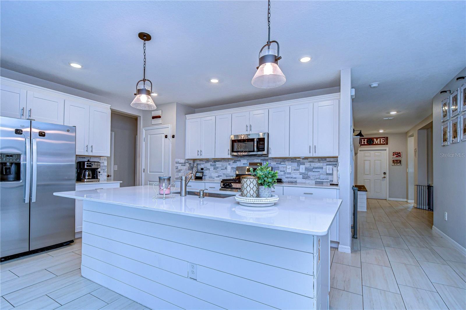 Esta casa moderna recém -construída em Connerton é uma verdadeira jóia! Com 6 quartos espaçosos, 3 banheiros, uma sala flexível e um loft, oferece muito espaço e versatilidade para qualquer estilo de vida. No momento em que você entra, é recebido por atualizações luxuosas, como a impressionante parede de destaque e o elegante piso de azulejo branco em todas as áreas comuns. O quarto e o banheiro são perfeitos para visitantes ou podem dobrar como uma suíte de sogro. A cozinha de conceito aberto, a sala da família e a área de jantar criam uma atmosfera acolhedora e convidativa. A lareira personalizada na sala da família acrescenta um toque de elegância com seu manto de madeira de cedro e lareira. A cozinha atualizada possui um belo backsplash de pedra e armários de madeira com moldagem por coroa. O grande quarto primário está convenientemente localizado no primeiro andar e vem com um banheiro privativo e um impressionante closet. No andar de cima, você encontrará uma área de loft espaçosa que pode ser transformada em uma sala de jogos, centro de mídia ou qualquer outra coisa que você imagine. Além disso, mais quatro quartos e um 3º banheiro oferecem muito espaço para a família ou os hóspedes. Atualmente, um quarto é usado como escritório, tornando -o ideal para um trabalho remoto. Do lado de fora, o expansivo quintal apresenta um grande deck personalizado perfeito para entretenimento ou relaxamento. A frente do lote enfrenta um beco sem saída, oferecendo uma sensação de abertura relaxante. A taxa de HOA inclui internet. O quintal está totalmente cercado. A New Charter School Pinecrest Academy está programada para abrir em 2025. Connerton é conhecido por suas incríveis comodidades comunitárias, incluindo um clube com um restaurante, academia, centers de jogo e grandes piscinas com belas características de água. O segundo clube de Connerton e o centro de amenidades estão em andamento. Além disso, você terá fácil acesso a restaurantes, escolas, compras e acesso à via expressa dos Veteranos. Se você está procurando uma casa pronta para mudar com atualizações impressionantes e um local imbatível, este é o lugar para você! Venha ver por si mesmo, você vai se apaixonar!