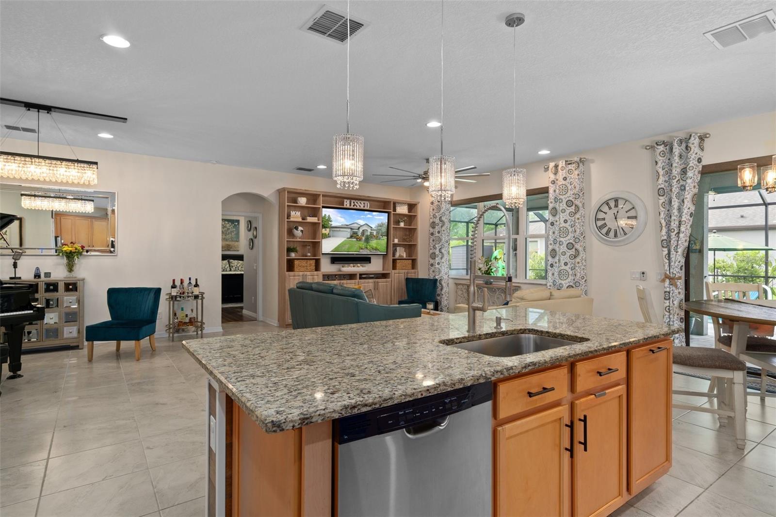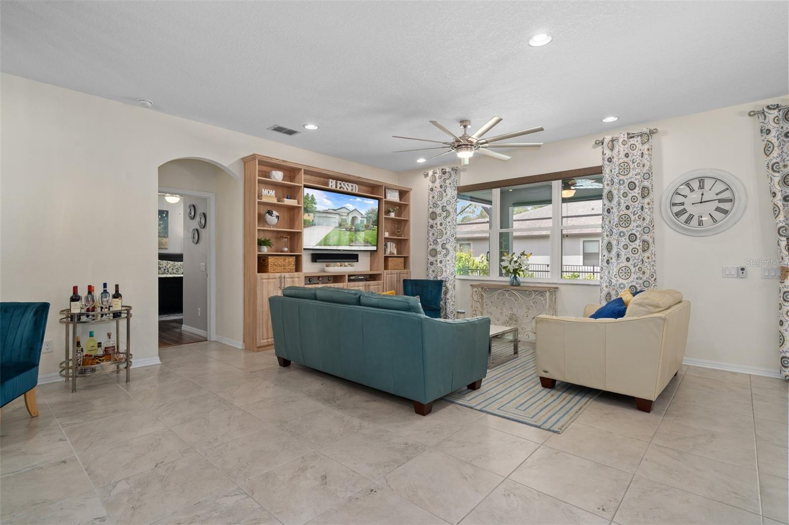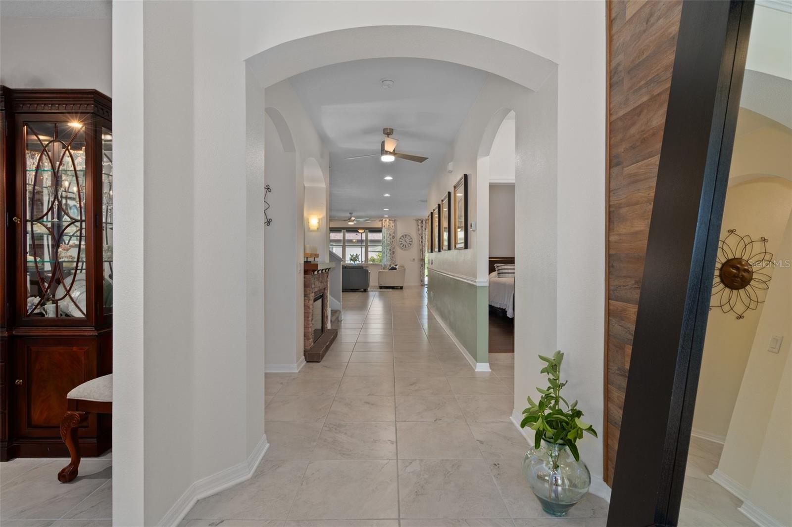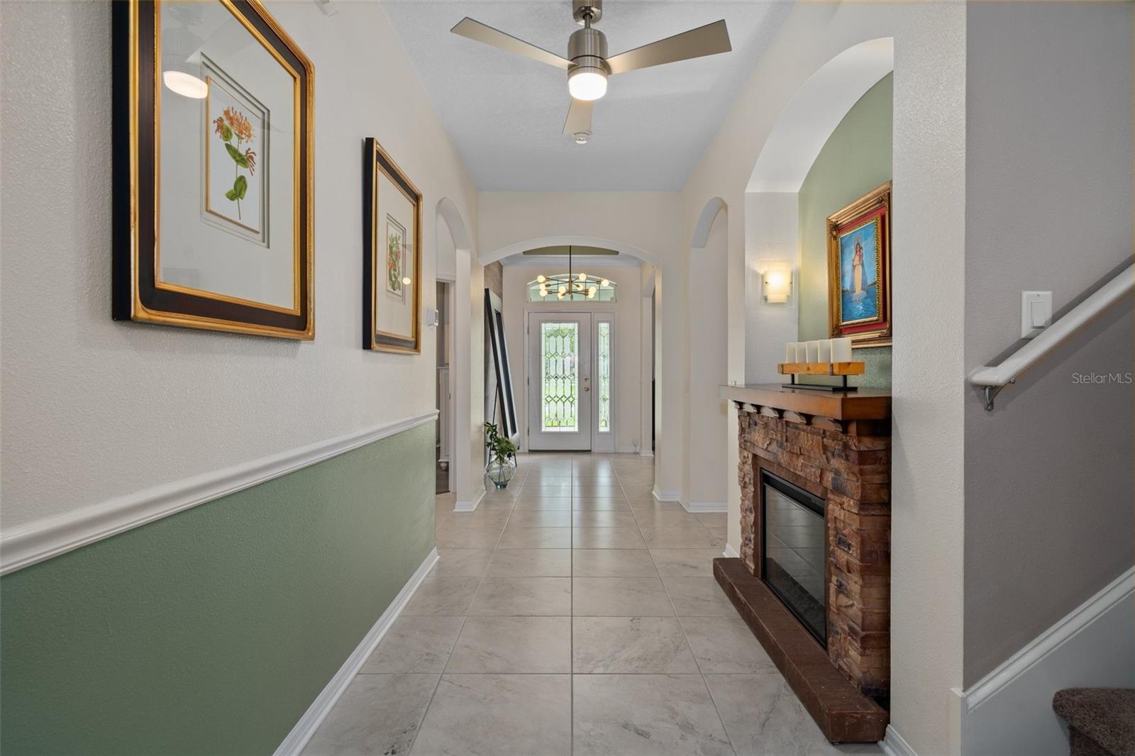 Bem -vindo a esta luxuosa casa de piscina, oferecendo 3.110 pés quadrados de espaço de estar lindamente projetado, perfeito para famílias. A casa possui uma planta baixa com 4 quartos, 4 banheiros, uma espaçosa suíte de nível superior e uma garagem em tandem de 3 carros. Ao entrar, você encontrará uma sala de jantar formal imediatamente à sua esquerda. Continuando pelo hall de entrada, você descobrirá dois quartos espaçosos e um banheiro completo. Mais adiante, há um lavabo, uma grande lavanderia com pia de utilidade e acesso à garagem. As principais áreas de estar apresentam pisos elegantes de ladrilhos de cerâmica, levando você à grande sala com janelas triplas que mostram vistas deslumbrantes da piscina e Lanai - perfeitas para entretenimento. O design de conceito aberto conecta perfeitamente a sala de estar, a sala de jantar e a cozinha. A cozinha é o sonho de um chef com bancadas em granito, um backsplash de ladrilhos, armários shaker, uma fogão a gás, uma grande ilha/café da manhã e uma despensa. As portas deslizantes do recanto de jantar levam a uma piscina privada selecionada com áreas de estar. A luxuosa suíte master na parte traseira da casa apresenta pisos de bambu, armários dele e dela com os organizadores e um deslumbrante banheiro principal com pias duplas, bancadas em granito, uma banheira de jardim, um grande chuveiro e um armário de água privado. No andar de cima, o quarto quarto possui um grande armário, um banheiro completo e uma área versátil de loft. Esse espaço é perfeito como retiro de um adolescente, uma suíte primária privada ou até uma suíte de sogro-oferecendo inúmeras possibilidades de personalização. As características adicionais desta casa incluem um amaciador de água, calhas de chuva, painéis solares, aparelhos de gás natural e uma garagem de três carros com espaço flexível para armazenamento ou uma oficina. Localizado na comunidade desejável de Connerton,