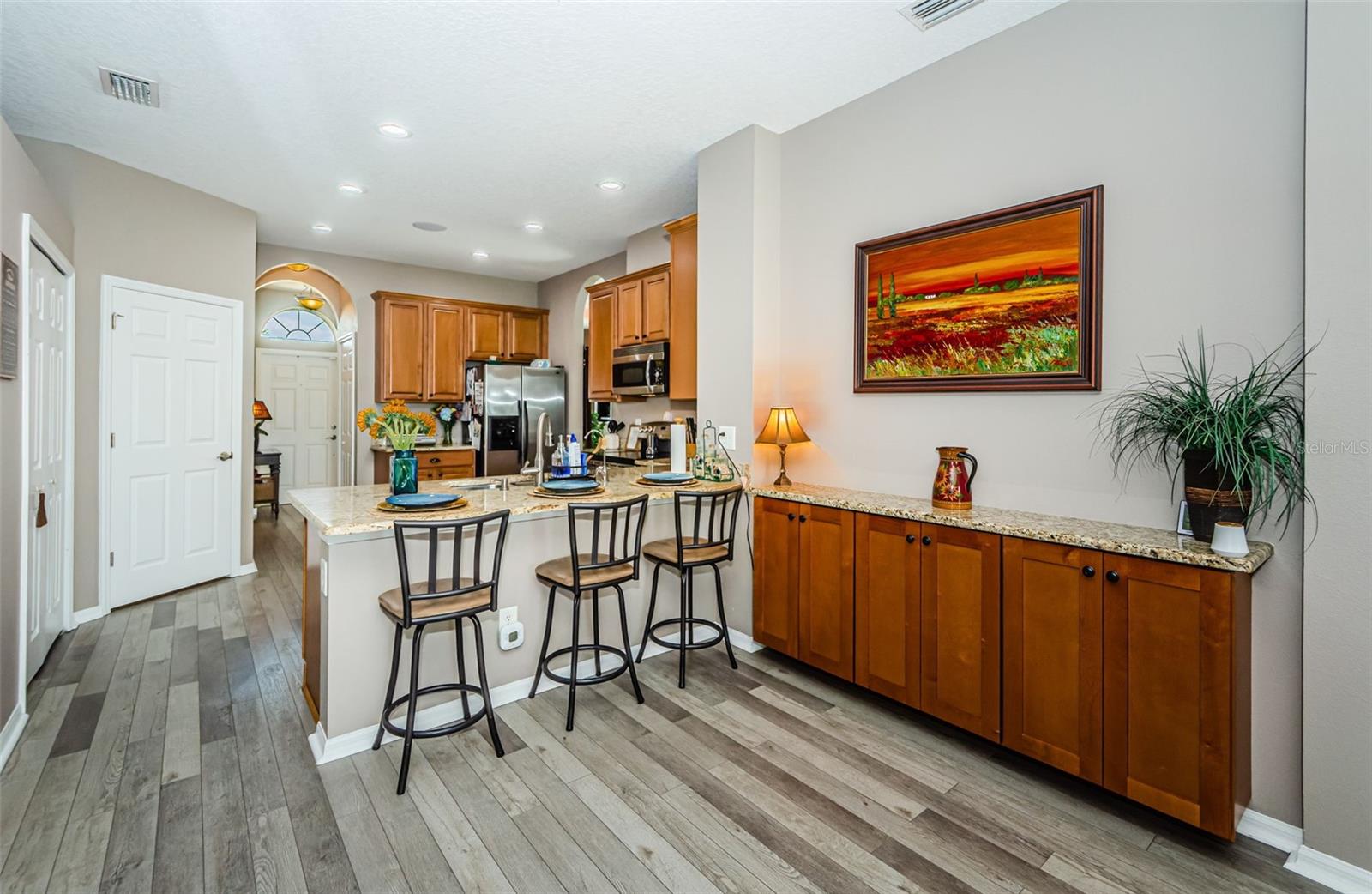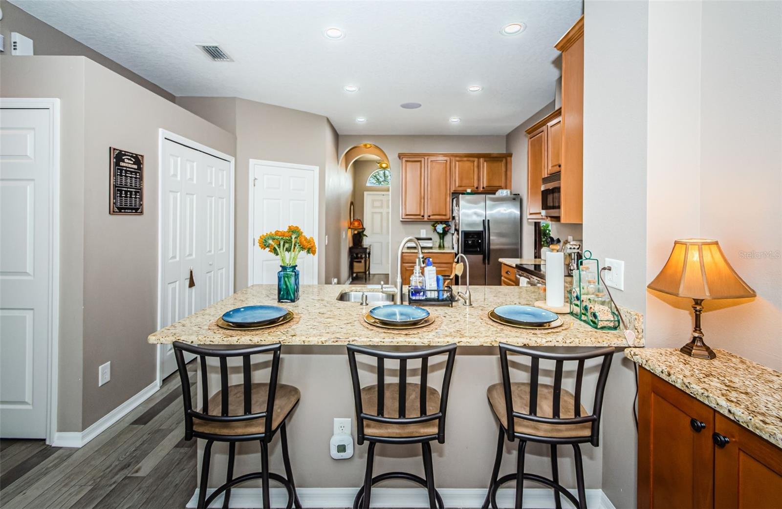 Vendedor contribuindo com US$ 15 mil em concessões no fechamento para o comprador para custos de fechamento ou futura substituição do telhado! Esta é uma casa deslumbrante de 4 quartos com vista para a conservação e para o lago, SEM CDD e BAIXA HOA! Por que pagar um CDD e impostos mais altos quando você pode POSSUIR esta casa imaculada com as melhores vistas! Bem-vindo à casa dos seus sonhos! Situada em uma rua sem saída tranquila, esta propriedade paisagística apresenta uma entrada enorme e cores vibrantes no jardim. Ao entrar, você será recebido por vistas deslumbrantes da conservação e do lago - perfeitas para apreciar a natureza durante o dia ou observar as estrelas à noite. Ao entrar, à sua esquerda, encontrará uma espaçosa zona de refeições e de estar, ideal para reunir amigos e familiares. Uma unidade de armazenamento embutida na extremidade oferece amplo espaço para organização. A cozinha é uma delícia para o chef, com bancadas de granito, armários altos com sancas, eletrodomésticos de aço inoxidável e sistema de osmose reversa para água purificada. Adjacente à cozinha, a lavandaria oferece arrumação adicional e acesso cómodo à garagem. Além disso, a casa está equipada com sistema de amaciamento de água. Para maior privacidade, dois quartos e um banheiro completo estão escondidos na cozinha. A sala de estar é um retiro aconchegante, mas espaçoso, com uma parede decorativa com detalhes em madeira, centro de armazenamento/entretenimento embutido e vistas pitorescas do quintal. Desfrute de música ou filmes com o sistema de alto-falantes integrado em toda a casa. A Suíte Primária é um oásis privado com vistas serenas do quintal, um luxuoso banheiro privativo completo com banheira de jardim, box amplo, pias duplas e um closet espaçoso. Mas isso não é tudo: atrás do centro de entretenimento, você descobrirá um quarto quarto escondido com armazenamento extra e vista para o espaço externo. Saia para sua ampla varanda e quintal, perfeito para entreter ou relaxar com tranquilidade. Esta casa também possui painéis solares pagos e sistema de segurança com fio, garantindo eficiência energética e tranquilidade. Não perca a oportunidade de possuir esta casa única com vistas deslumbrantes, design inteligente e armazenamento infinito! Agende sua exibição hoje mesmo!