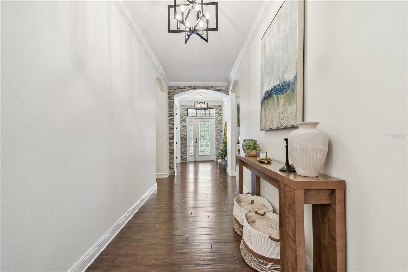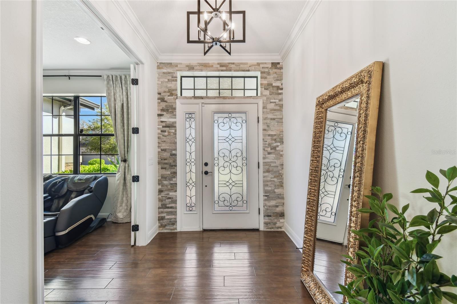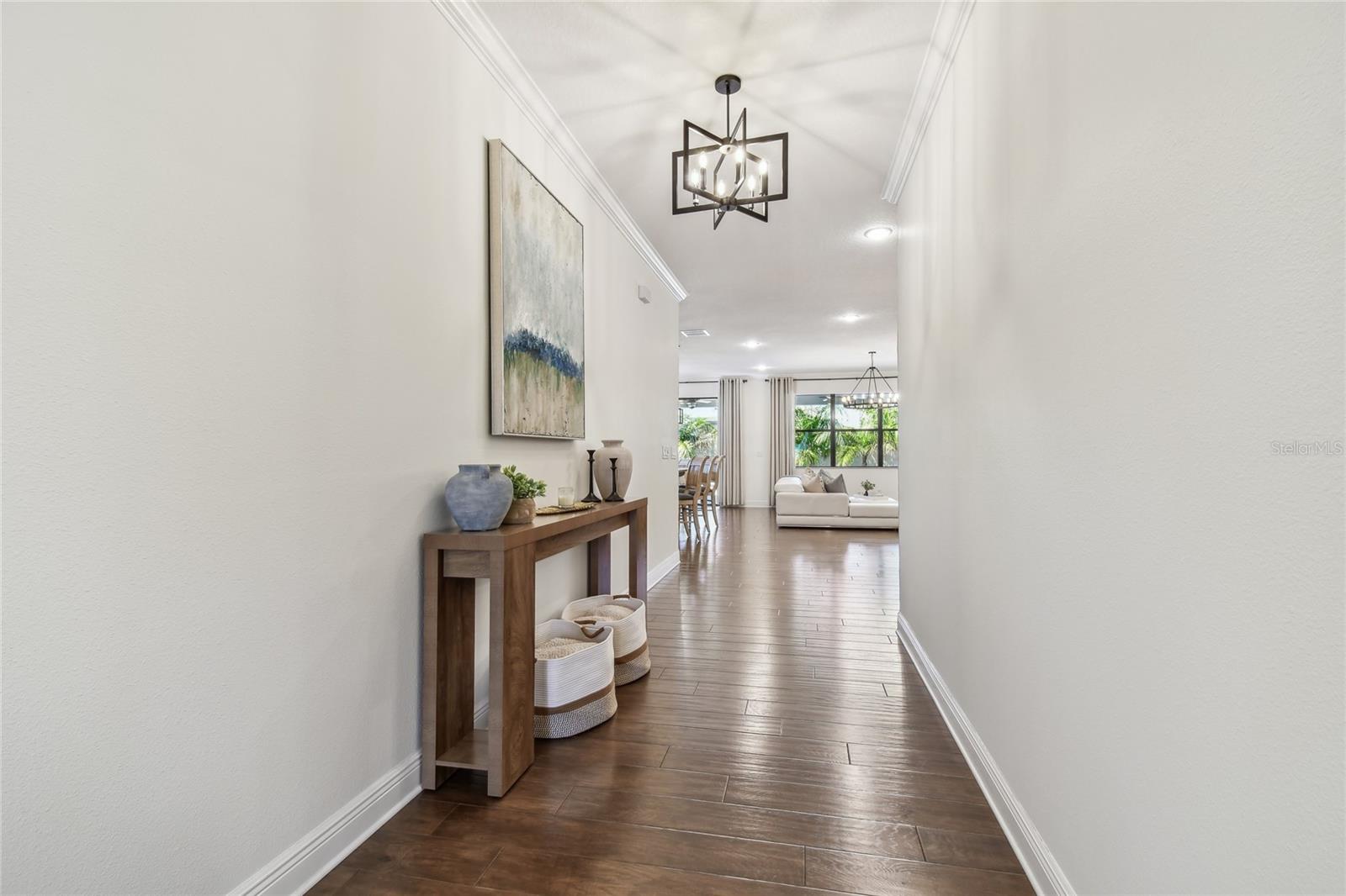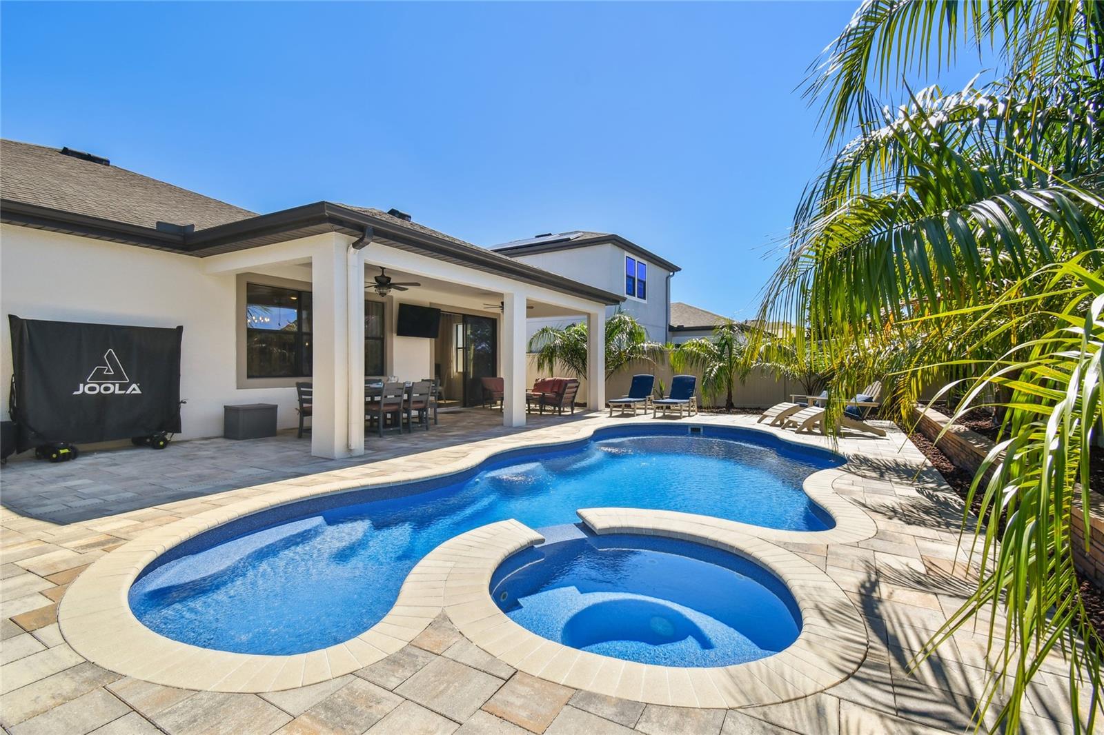 Bem-vindo ao 8307 Bluevine Sky Drive, uma impressionante casa de spa e piscina de água salgada pronta para morar que captura a essência do estilo de vida da Flórida na tão procurada comunidade de Connerton. A partir do momento em que você chega, o exterior recém-pintado da casa, as elegantes luzes do ônibus, as palmeiras atualizadas e a acolhedora varanda frontal preparam o cenário para o que está dentro. Passe pela porta frontal de vidro atualizada, onde tetos altos, pisos de madeira ricos e sancas elegantes chamam imediatamente sua atenção. O grande hall de entrada, acentuado por sancas, leva a um escritório doméstico privado atrás de portas francesas de 2,5 metros, um espaço de trabalho perfeito ou um quarto quarto. À esquerda, dois espaçosos quartos secundários apresentam janelas altas, pisos de madeira e ventiladores de teto atualizados, proporcionando conforto e estilo. Um banheiro completo lindamente atualizado atende a esses quartos, ostentando uma penteadeira atualizada com bancadas Cambria Quartz, uma nova luminária, ferragens de bronze e um chuveiro de azulejos que se estende até o teto. Do outro lado do hall de entrada e no final do corredor fica o terceiro banheiro completo, que também possui uma penteadeira atualizada com bancadas de quartzo, uma nova luminária, ferragens de bronze e um chuveiro de azulejos que se estende até o teto, perfeito para os hóspedes. Mais adiante no corredor, a espaçosa lavanderia oferece armários atualizados de 42 polegadas e amplo armazenamento e fica em frente à enorme garagem tandem para três carros. No coração da casa, o espaço de conceito aberto foi projetado para entretenimento. A cozinha gourmet é o sonho de um chef, ostentando armários de 42 polegadas com sobreposição de esmalte, gavetas em formato de andorinha, uma prateleira para vinhos decorativa e um backsplash de altura total. As bancadas de quartzo, os eletrodomésticos de aço inoxidável, o fogão a gás, o forno de parede, o micro-ondas embutido e o impressionante exaustor criam o equilíbrio perfeito entre função e luxo. Uma grande ilha com iluminação pendente serve como ponto de encontro ideal, enquanto a cozinha compacta oferece uma espaçosa área de refeições com vista para o oásis do quintal. A cozinha se conecta perfeitamente à área de jantar, onde uma atraente parede de tijolos e um lustre atualizado adicionam calor e personalidade. A espaçosa sala familiar é repleta de luz natural proveniente de grandes janelas, proporcionando o espaço perfeito para relaxar e descontrair. A suíte do proprietário é um retiro privado, com piso de cerâmica com aparência de madeira, teto em forma de bandeja, sancas e luz natural abundante que entra por várias janelas. O banheiro privativo oferece uma experiência de spa com pia dupla com bancada de quartzo, uma grande banheira de jardim, box amplo com azulejos do chão ao teto e dois closets que oferecem amplo armazenamento. Saia para o paraíso do seu próprio quintal. Um retiro totalmente cercado, cercado por paisagismo tropical e palmeiras aprimoradas, dá o tom para o relaxamento. O amplo deck pavimentado leva a uma piscina aquecida e spa reluzente, convidando você a aproveitar o sol ou desfrutar de noites tranquilas sob as estrelas. Seja organizando reuniões animadas ou desfrutando de momentos tranquilos, este oásis ao ar livre foi projetado para criar memórias inesquecíveis. Esta casa excepcional combina perfeitamente luxo, conforto e vida moderna. Connerton Community é um empreendimento planejado que combina reservas naturais com vida em estilo resort. Desfrute de trilhas pitorescas, lagos e pântanos, além de comodidades como piscinas, academia, quadras esportivas e um calendário repleto de atividades. A Pinecrest Academy será inaugurada no outono de 2025, e um segundo clube com piscina, academia e seis quadras de pickleball está em construção. Agende seu passeio hoje mesmo!