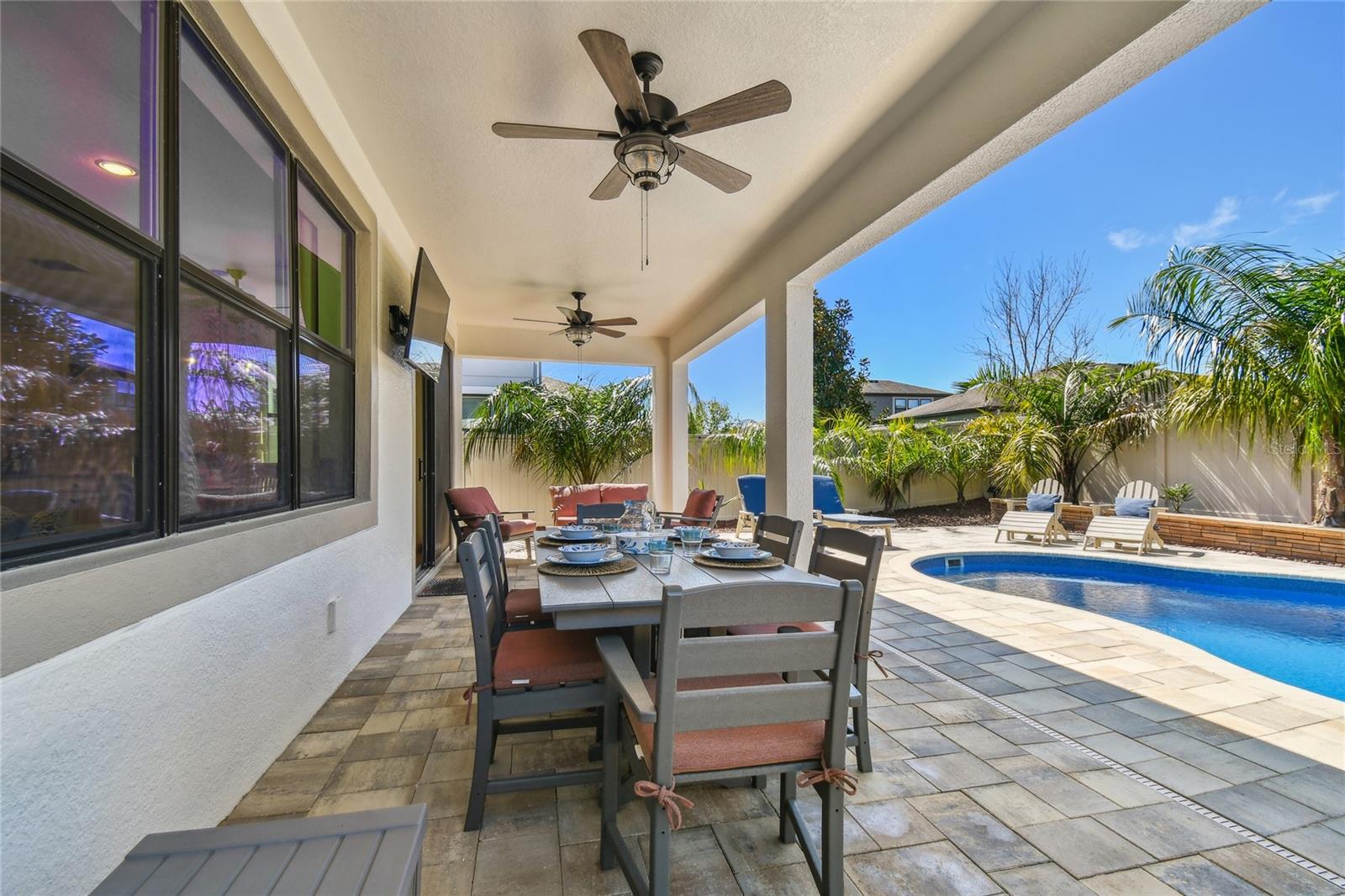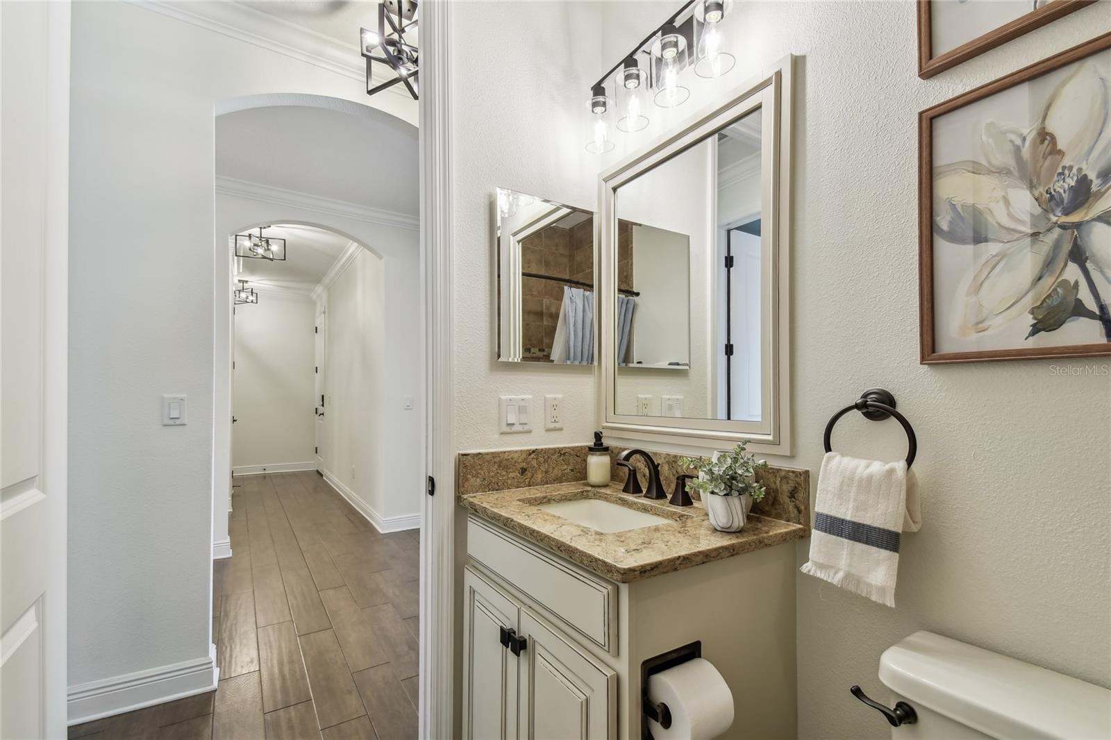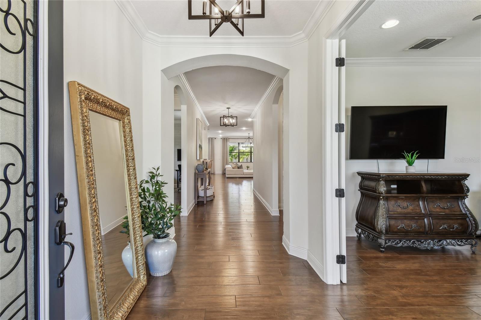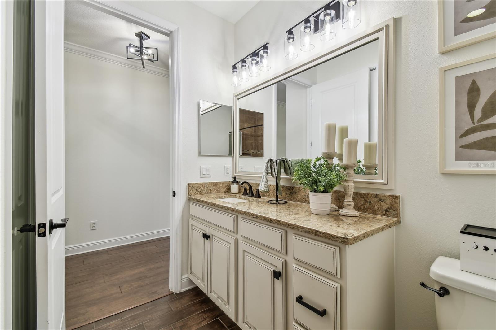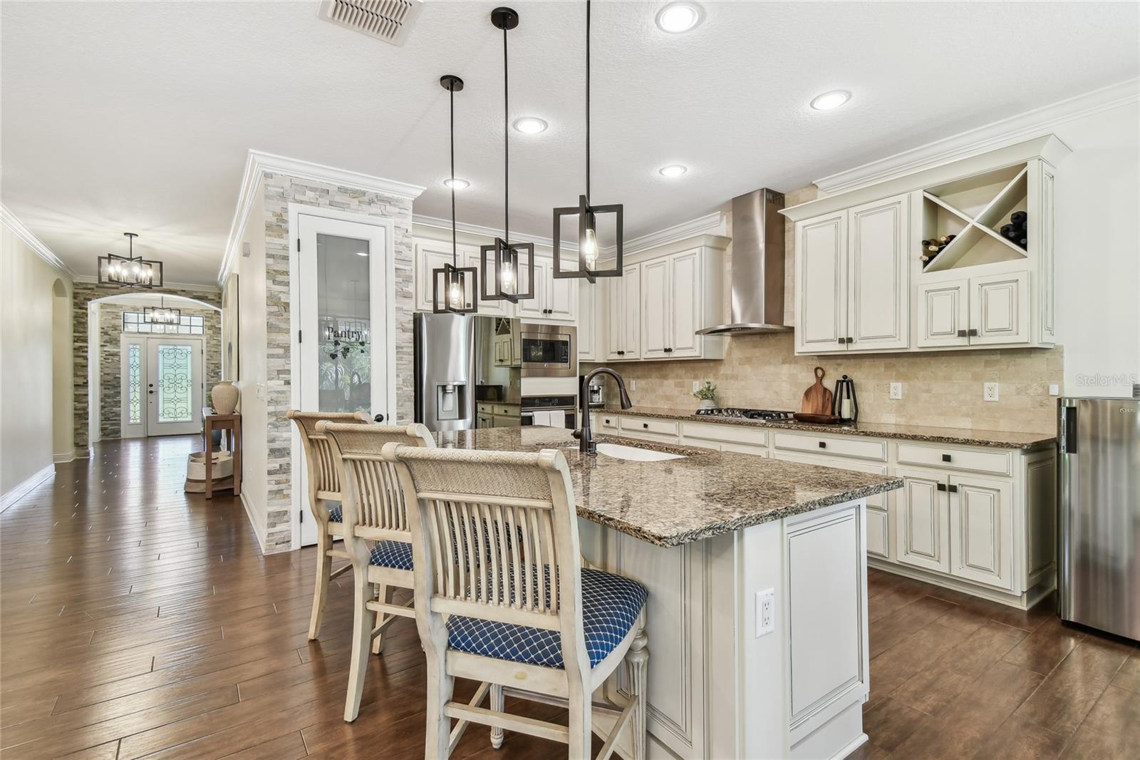 Bem-vindo ao 8307 Bluevine Sky Drive, uma impressionante casa de spa e piscina de água salgada pronta para morar que captura a essência do estilo de vida da Flórida na tão procurada comunidade de Connerton. A partir do momento em que você chega, o exterior recém-pintado da casa, as elegantes luzes do ônibus, as palmeiras atualizadas e a acolhedora varanda frontal preparam o cenário para o que está dentro. Passe pela porta frontal de vidro atualizada, onde tetos altos, pisos de madeira ricos e sancas elegantes chamam imediatamente sua atenção. O grande hall de entrada, acentuado por sancas, leva a um escritório doméstico privado atrás de portas francesas de 2,5 metros, um espaço de trabalho perfeito ou um quarto quarto. À esquerda, dois espaçosos quartos secundários apresentam janelas altas, pisos de madeira e ventiladores de teto atualizados, proporcionando conforto e estilo. Um banheiro completo lindamente atualizado atende a esses quartos, ostentando uma penteadeira atualizada com bancadas Cambria Quartz, uma nova luminária, ferragens de bronze e um chuveiro de azulejos que se estende até o teto. Do outro lado do hall de entrada e no final do corredor fica o terceiro banheiro completo, que também possui uma penteadeira atualizada com bancadas de quartzo, uma nova luminária, ferragens de bronze e um chuveiro de azulejos que se estende até o teto, perfeito para os hóspedes. Mais adiante no corredor, a espaçosa lavanderia oferece armários atualizados de 42 polegadas e amplo armazenamento e fica em frente à enorme garagem tandem para três carros. No coração da casa, o espaço de conceito aberto foi projetado para entretenimento. A cozinha gourmet é o sonho de um chef, ostentando armários de 42 polegadas com sobreposição de esmalte, gavetas em formato de andorinha, uma prateleira para vinhos decorativa e um backsplash de altura total. As bancadas de quartzo, os eletrodomésticos de aço inoxidável, o fogão a gás, o forno de parede, o micro-ondas embutido e o impressionante exaustor criam o equilíbrio perfeito entre função e luxo. Uma grande ilha com iluminação pendente serve como ponto de encontro ideal, enquanto a cozinha compacta oferece uma espaçosa área de refeições com vista para o oásis do quintal. A cozinha se conecta perfeitamente à área de jantar, onde uma atraente parede de tijolos e um lustre atualizado adicionam calor e personalidade. A espaçosa sala familiar é repleta de luz natural proveniente de grandes janelas, proporcionando o espaço perfeito para relaxar e descontrair. A suíte do proprietário é um retiro privado, com piso de cerâmica com aparência de madeira, teto em forma de bandeja, sancas e luz natural abundante que entra por várias janelas. O banheiro privativo oferece uma experiência de spa com pia dupla com bancada de quartzo, uma grande banheira de jardim, box amplo com azulejos do chão ao teto e dois closets que oferecem amplo armazenamento. Saia para o paraíso do seu próprio quintal. Um retiro totalmente cercado, cercado por paisagismo tropical e palmeiras aprimoradas, dá o tom para o relaxamento. O amplo deck pavimentado leva a uma piscina aquecida e spa reluzente, convidando você a aproveitar o sol ou desfrutar de noites tranquilas sob as estrelas. Seja organizando reuniões animadas ou desfrutando de momentos tranquilos, este oásis ao ar livre foi projetado para criar memórias inesquecíveis. Esta casa excepcional combina perfeitamente luxo, conforto e vida moderna. Connerton Community é um empreendimento planejado que combina reservas naturais com vida em estilo resort. Desfrute de trilhas pitorescas, lagos e pântanos, além de comodidades como piscinas, academia, quadras esportivas e um calendário repleto de atividades. A Pinecrest Academy será inaugurada no outono de 2025, e um segundo clube com piscina, academia e seis quadras de pickleball está em construção. Agende seu passeio hoje mesmo!