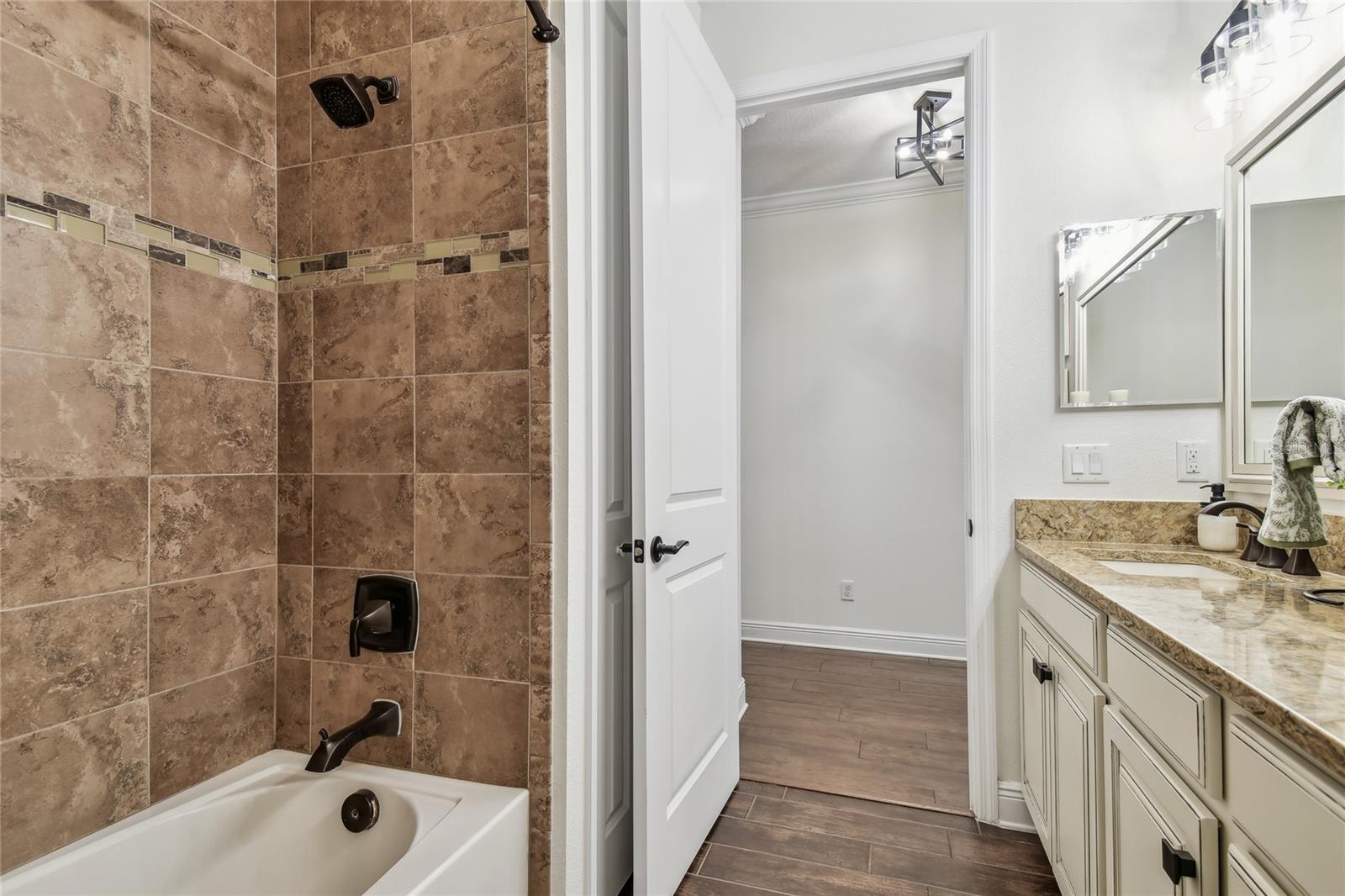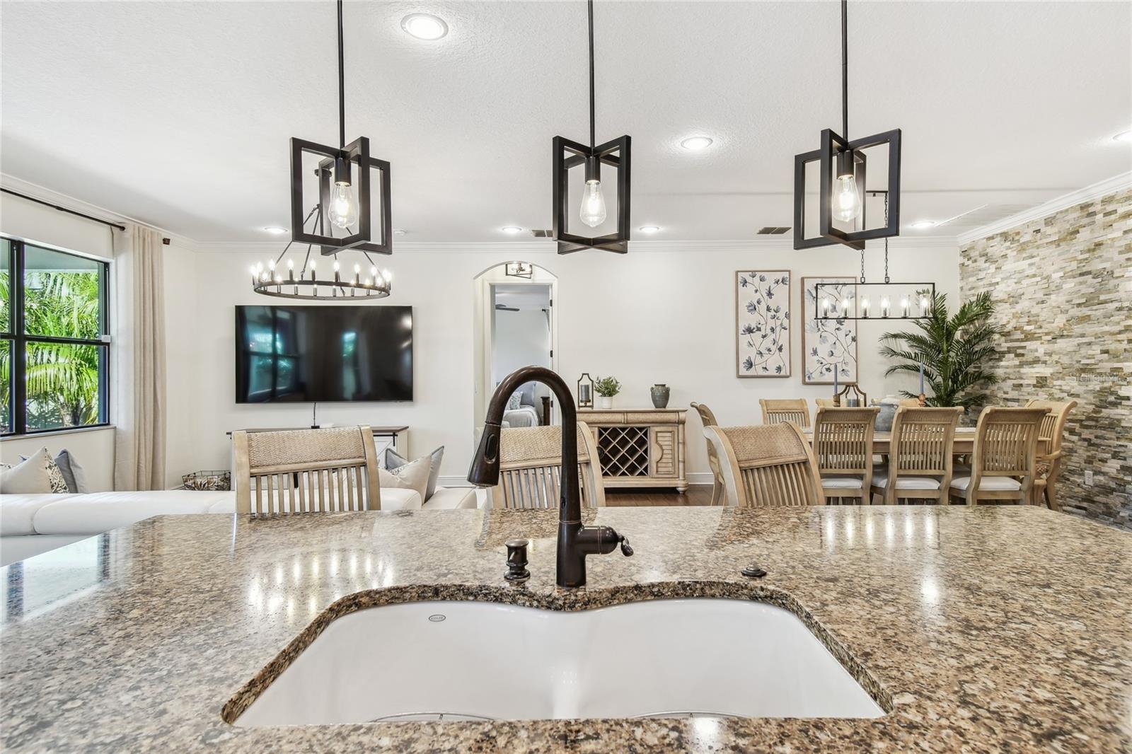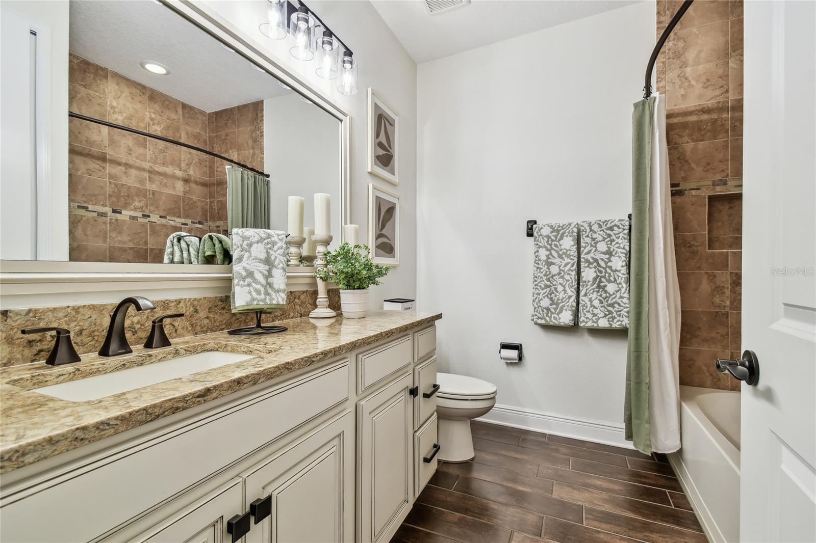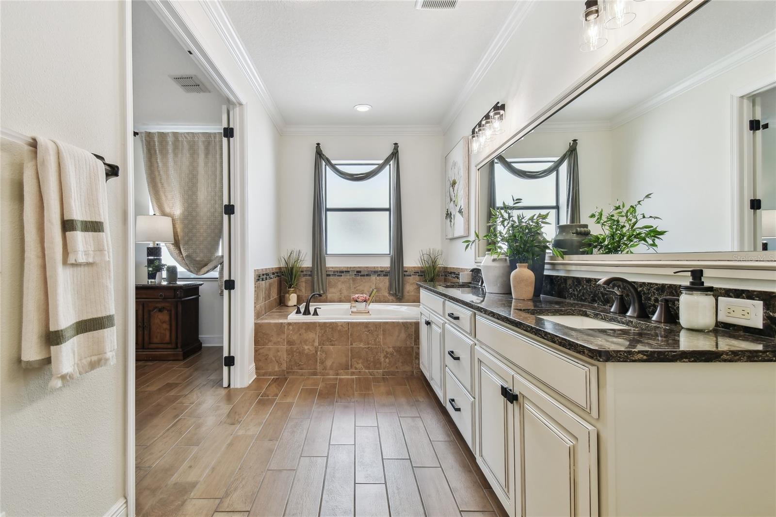 Bem-vindo ao 8307 Bluevine Sky Drive, uma impressionante casa de spa e piscina de água salgada pronta para morar que captura a essência do estilo de vida da Flórida na tão procurada comunidade de Connerton. A partir do momento em que você chega, o exterior recém-pintado da casa, as elegantes luzes do ônibus, as palmeiras atualizadas e a acolhedora varanda frontal preparam o cenário para o que está dentro. Passe pela porta frontal de vidro atualizada, onde tetos altos, pisos de madeira ricos e sancas elegantes chamam imediatamente sua atenção. O grande hall de entrada, acentuado por sancas, leva a um escritório doméstico privado atrás de portas francesas de 2,5 metros, um espaço de trabalho perfeito ou um quarto quarto. À esquerda, dois espaçosos quartos secundários apresentam janelas altas, pisos de madeira e ventiladores de teto atualizados, proporcionando conforto e estilo. Um banheiro completo lindamente atualizado atende a esses quartos, ostentando uma penteadeira atualizada com bancadas Cambria Quartz, uma nova luminária, ferragens de bronze e um chuveiro de azulejos que se estende até o teto. Do outro lado do hall de entrada e no final do corredor fica o terceiro banheiro completo, que também possui uma penteadeira atualizada com bancadas de quartzo, uma nova luminária, ferragens de bronze e um chuveiro de azulejos que se estende até o teto, perfeito para os hóspedes. Mais adiante no corredor, a espaçosa lavanderia oferece armários atualizados de 42 polegadas e amplo armazenamento e fica em frente à enorme garagem tandem para três carros. No coração da casa, o espaço de conceito aberto foi projetado para entretenimento. A cozinha gourmet é o sonho de um chef, ostentando armários de 42 polegadas com sobreposição de esmalte, gavetas em formato de andorinha, uma prateleira para vinhos decorativa e um backsplash de altura total. As bancadas de quartzo, os eletrodomésticos de aço inoxidável, o fogão a gás, o forno de parede, o micro-ondas embutido e o impressionante exaustor criam o equilíbrio perfeito entre função e luxo. Uma grande ilha com iluminação pendente serve como ponto de encontro ideal, enquanto a cozinha compacta oferece uma espaçosa área de refeições com vista para o oásis do quintal. A cozinha se conecta perfeitamente à área de jantar, onde uma atraente parede de tijolos e um lustre atualizado adicionam calor e personalidade. A espaçosa sala familiar é repleta de luz natural proveniente de grandes janelas, proporcionando o espaço perfeito para relaxar e descontrair. A suíte do proprietário é um retiro privado, com piso de cerâmica com aparência de madeira, teto em forma de bandeja, sancas e luz natural abundante que entra por várias janelas. O banheiro privativo oferece uma experiência de spa com pia dupla com bancada de quartzo, uma grande banheira de jardim, box amplo com azulejos do chão ao teto e dois closets que oferecem amplo armazenamento. Saia para o paraíso do seu próprio quintal. Um retiro totalmente cercado, cercado por paisagismo tropical e palmeiras aprimoradas, dá o tom para o relaxamento. O amplo deck pavimentado leva a uma piscina aquecida e spa reluzente, convidando você a aproveitar o sol ou desfrutar de noites tranquilas sob as estrelas. Seja organizando reuniões animadas ou desfrutando de momentos tranquilos, este oásis ao ar livre foi projetado para criar memórias inesquecíveis. Esta casa excepcional combina perfeitamente luxo, conforto e vida moderna. Connerton Community é um empreendimento planejado que combina reservas naturais com vida em estilo resort. Desfrute de trilhas pitorescas, lagos e pântanos, além de comodidades como piscinas, academia, quadras esportivas e um calendário repleto de atividades. A Pinecrest Academy será inaugurada no outono de 2025, e um segundo clube com piscina, academia e seis quadras de pickleball está em construção. Agende seu passeio hoje mesmo!