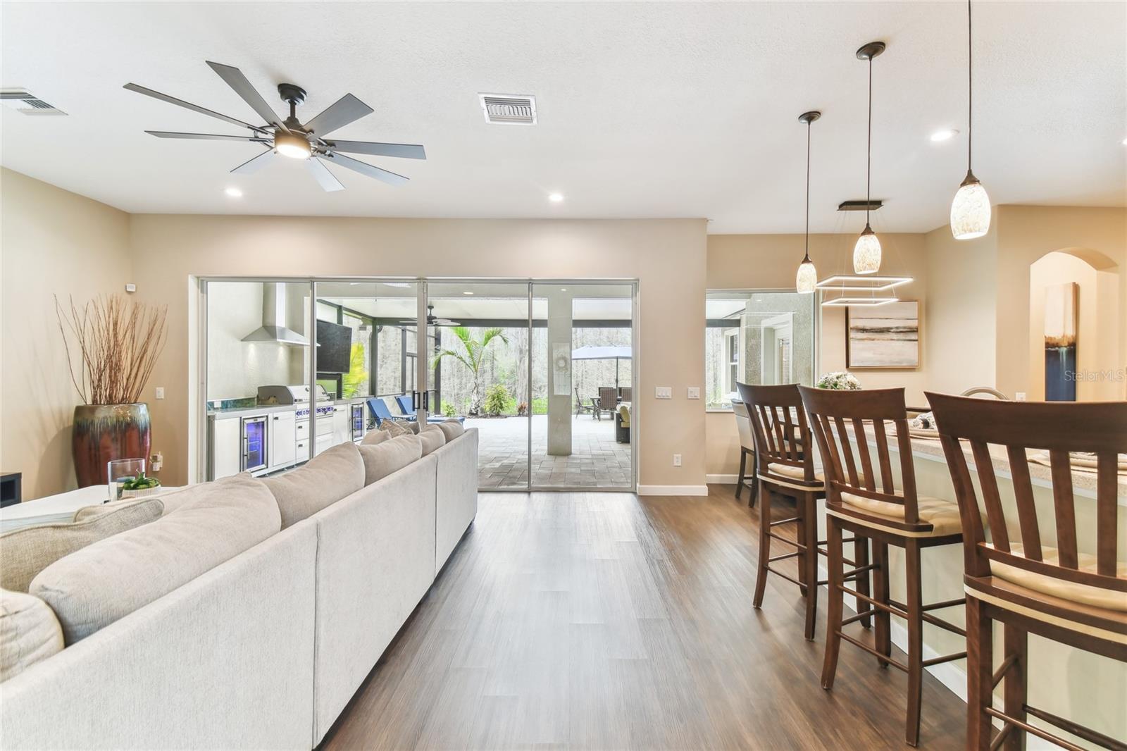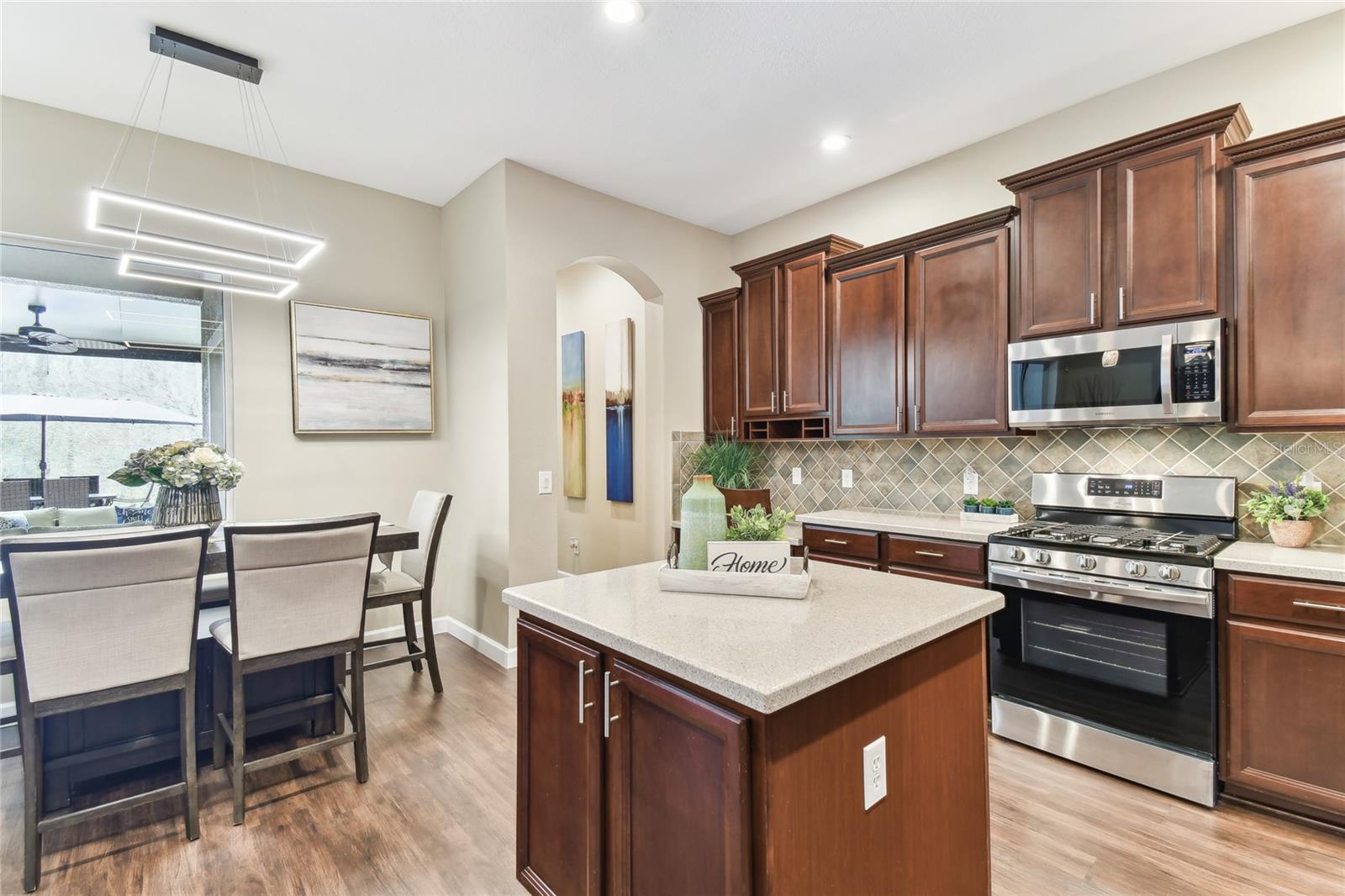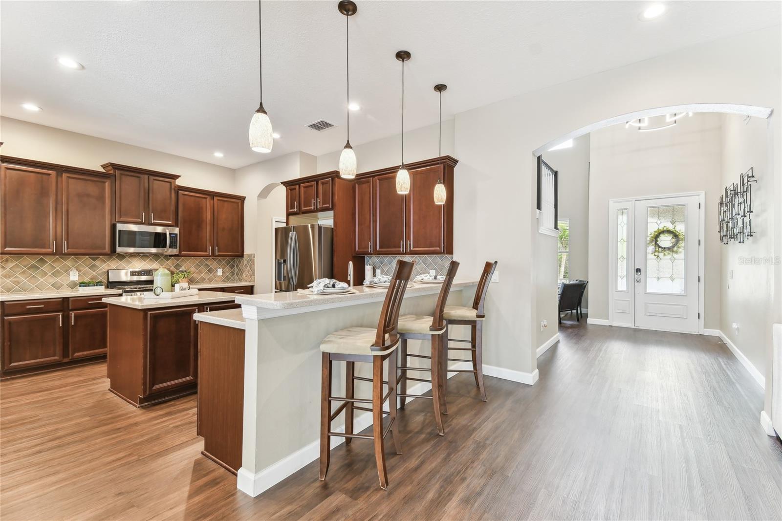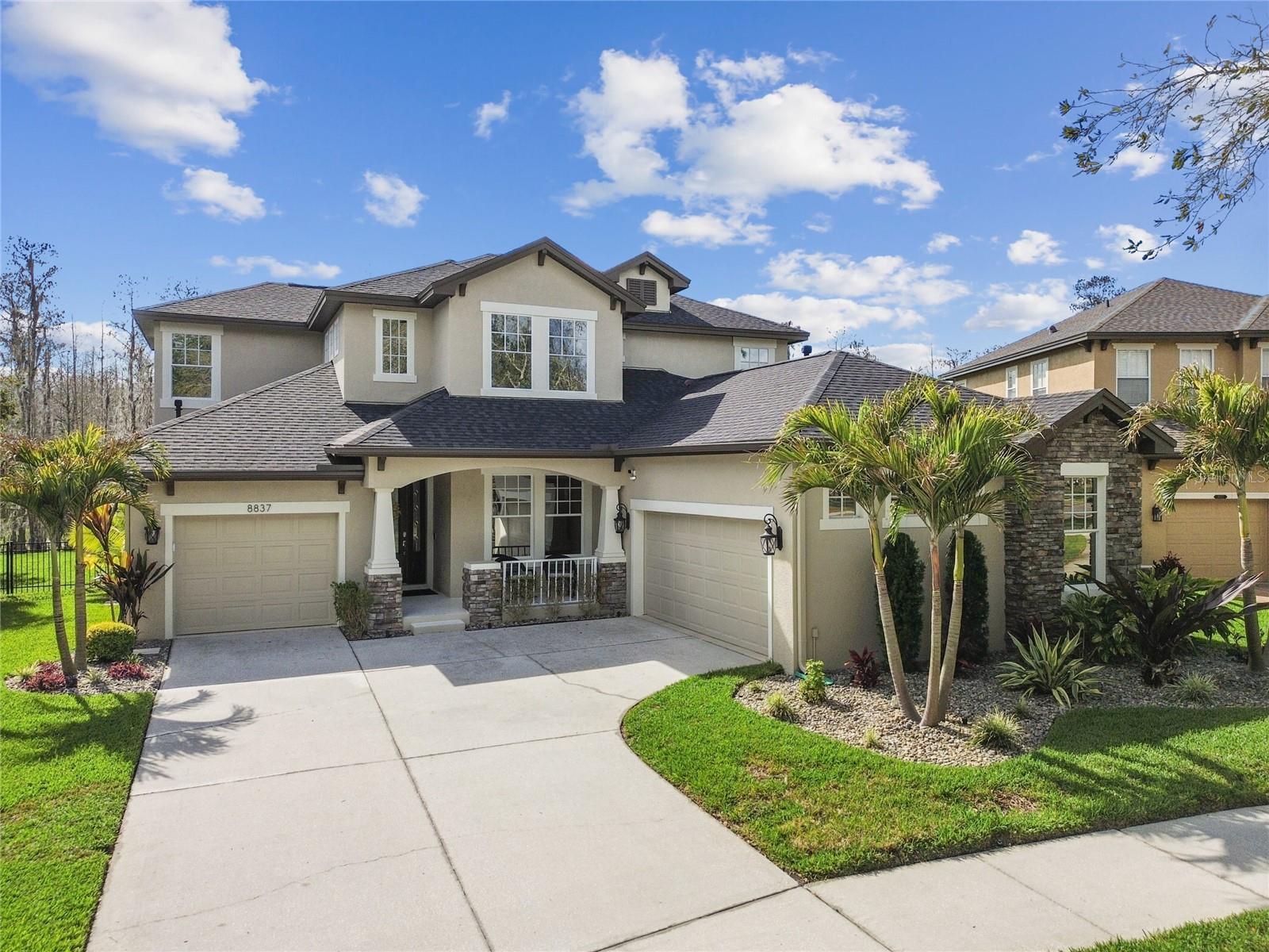 Situada na comunidade de Arbor, em Connerton, esta casa voltada para o leste, pronta para morar, oferece 3.283 pés quadrados de área de estar perfeitamente equipada com 5 quartos, 2 salas bônus, 4,5 banheiros, garagem para 3 carros e fica em um espaçoso lote de 0,30 acres, apoiado em uma área de conservação serena sem vizinhos na frente. Os detalhes em tijolo, a pintura exterior fresca 2021, o novo telhado 2021, as novas calhas 2021 e o novo paisagismo 2023 criam uma primeira impressão convidativa. A acolhedora varanda frontal é um espaço ideal para reunir amigos e vizinhos. Ao passar pela porta da frente, você é recebido por tetos altos e uma vista deslumbrante do oásis no quintal. Piso de pranchas de vinil luxuoso, luminárias personalizadas e janelas altas dão o tom da elegância e do aconchego que definem esta casa. A área de estar formal é banhada por luz natural proveniente de janelas altas, complementando os tetos altos. Passando pela entrada em arco, você entra no coração da casa, um espaço de conceito aberto onde a cozinha se conecta perfeitamente à grande sala. Projetada para estilo e funcionalidade, a cozinha do chef é uma delícia, com eletrodomésticos de aço inoxidável, incluindo fogão a gás e micro-ondas atualizados em 2021, lava-louças e geladeira 2021. Os armários de bordo oferecem amplo armazenamento, enquanto o bar alto e a cozinha compacta proporcionam um espaço aconchegante para desfrutar de refeições. Uma janela pitoresca acrescenta charme, enchendo o espaço de luz natural. A grande sala possui portas de vidro deslizantes de 16 pés que se abrem para um retiro amplo, coberto e protegido no quintal. A cozinha externa com churrasqueira de 44" com 6 bocas e 2 refrigeradores de bebidas (2023) criam o ambiente perfeito para entretenimento, enquanto o amplo pátio pavimentado oferece muito espaço para relaxar. Caixas de plantio embutidas e palmeiras ondulantes emolduram a área, realçando a atmosfera tranquila da Flórida. Esteja você organizando uma reunião ou relaxando após um longo dia, este espaço é realmente um paraíso ao ar livre. Um lavabo convenientemente localizado com acesso à varanda torna o entretenimento ainda mais fácil. Escondido no na parte de trás da casa, a suíte do proprietário oferece um refúgio privativo. O teto da bandeja adiciona um toque de sofisticação, enquanto o banheiro privativo parece um spa pessoal, com pias duplas, uma grande banheira de imersão e um box amplo. A lavanderia atualizada com armários personalizados em 2023 é elegante e funcional, com armários embutidos, uma pia com balcões de granito e uma nova lavadora e secadora 2023 com pedestais. garagem. No final do corredor, um banheiro totalmente atualizado (2021) possui um sistema de chuveiro com jatos traseiros e elegantes portas deslizantes de vidro. Um quarto adicional no andar principal e uma sala bônus versátil, ideal para um escritório doméstico ou área de estar adicional - tornam esta casa perfeita para uma vida multigeracional. A escada elegantemente projetada e atualizada em 2022 leva ao segundo andar, onde um recanto de mesa embutido no topo do patamar cria um espaço de trabalho ou lição de casa ideal. À direita, um quarto espaçoso tem acesso a um banheiro recém-reformado, completo com armários, bancadas em granito e piso frio. À esquerda, outro quarto de tamanho generoso se conecta a um banheiro Jack & Jill lindamente atualizado e a um quarto adicional. No final do corredor há um quarto adicional ou sala bônus, tornando-o um design atencioso para famílias ou convidados. Muitas atualizações para listar e incluir novas unidades CA 2021, 4 toneladas e 2 toneladas com garantia, gerador 2023 de 24 kW instalado com garantia de 5 anos. Agende seu passeio hoje mesmo!