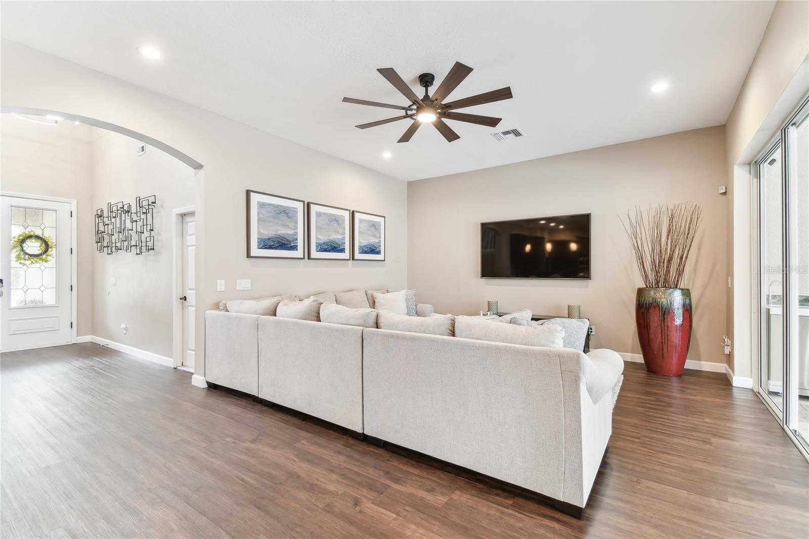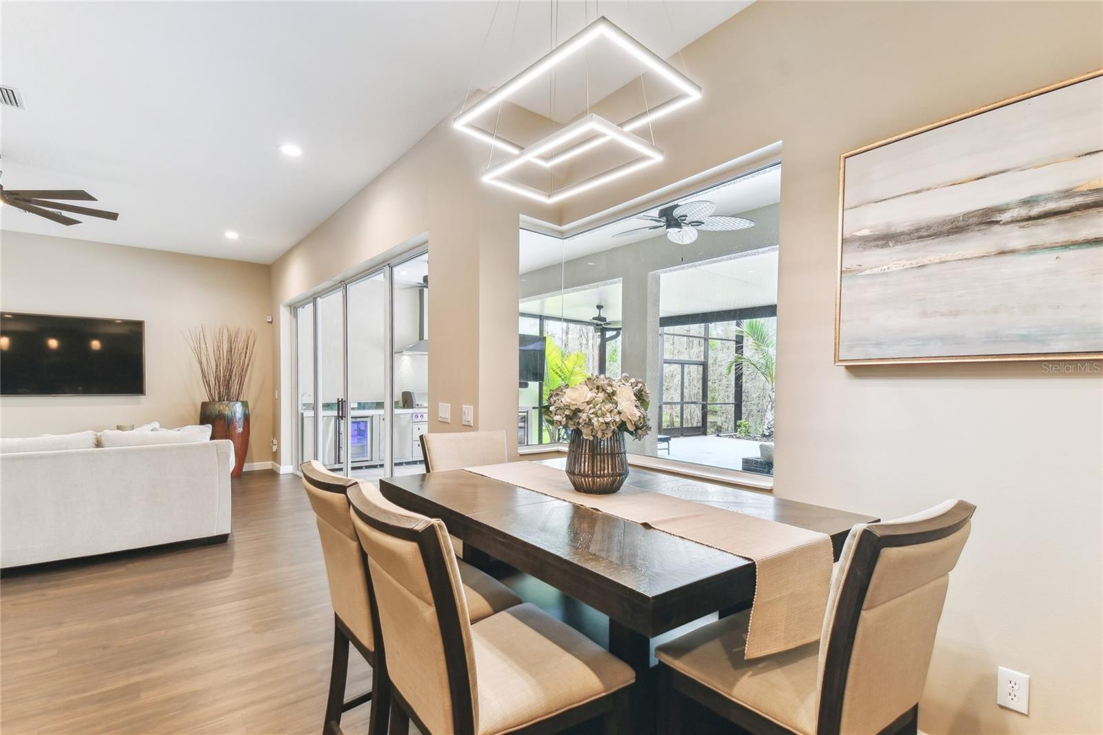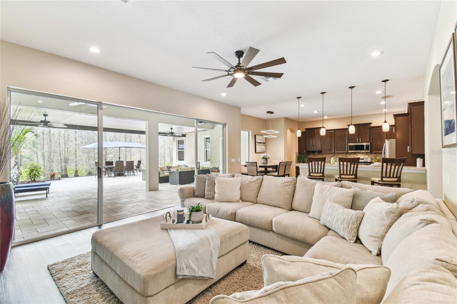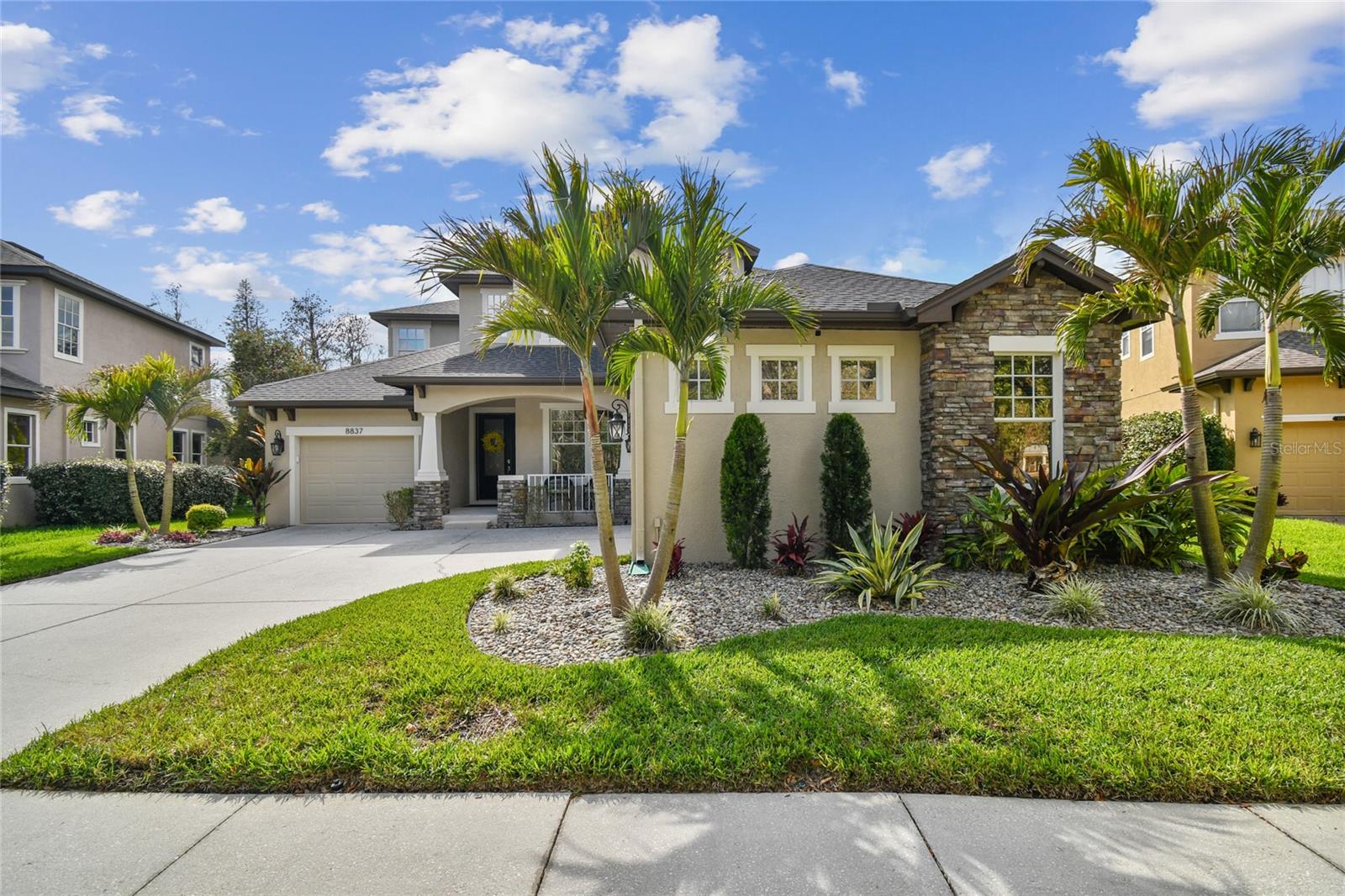 Situada na comunidade de Arbor, em Connerton, esta casa voltada para o leste, pronta para morar, oferece 3.283 pés quadrados de área de estar perfeitamente equipada com 5 quartos, 2 salas bônus, 4,5 banheiros, garagem para 3 carros e fica em um espaçoso lote de 0,30 acres, apoiado em uma área de conservação serena sem vizinhos na frente. Os detalhes em tijolo, a pintura exterior fresca 2021, o novo telhado 2021, as novas calhas 2021 e o novo paisagismo 2023 criam uma primeira impressão convidativa. A acolhedora varanda frontal é um espaço ideal para reunir amigos e vizinhos. Ao passar pela porta da frente, você é recebido por tetos altos e uma vista deslumbrante do oásis no quintal. Piso de pranchas de vinil luxuoso, luminárias personalizadas e janelas altas dão o tom da elegância e do aconchego que definem esta casa. A área de estar formal é banhada por luz natural proveniente de janelas altas, complementando os tetos altos. Passando pela entrada em arco, você entra no coração da casa, um espaço de conceito aberto onde a cozinha se conecta perfeitamente à grande sala. Projetada para estilo e funcionalidade, a cozinha do chef é uma delícia, com eletrodomésticos de aço inoxidável, incluindo fogão a gás e micro-ondas atualizados em 2021, lava-louças e geladeira 2021. Os armários de bordo oferecem amplo armazenamento, enquanto o bar alto e a cozinha compacta proporcionam um espaço aconchegante para desfrutar de refeições. Uma janela pitoresca acrescenta charme, enchendo o espaço de luz natural. A grande sala possui portas de vidro deslizantes de 16 pés que se abrem para um retiro amplo, coberto e protegido no quintal. A cozinha externa com churrasqueira de 44" com 6 bocas e 2 refrigeradores de bebidas (2023) criam o ambiente perfeito para entretenimento, enquanto o amplo pátio pavimentado oferece muito espaço para relaxar. Caixas de plantio embutidas e palmeiras ondulantes emolduram a área, realçando a atmosfera tranquila da Flórida. Esteja você organizando uma reunião ou relaxando após um longo dia, este espaço é realmente um paraíso ao ar livre. Um lavabo convenientemente localizado com acesso à varanda torna o entretenimento ainda mais fácil. Escondido no na parte de trás da casa, a suíte do proprietário oferece um refúgio privativo. O teto da bandeja adiciona um toque de sofisticação, enquanto o banheiro privativo parece um spa pessoal, com pias duplas, uma grande banheira de imersão e um box amplo. A lavanderia atualizada com armários personalizados em 2023 é elegante e funcional, com armários embutidos, uma pia com balcões de granito e uma nova lavadora e secadora 2023 com pedestais. garagem. No final do corredor, um banheiro totalmente atualizado (2021) possui um sistema de chuveiro com jatos traseiros e elegantes portas deslizantes de vidro. Um quarto adicional no andar principal e uma sala bônus versátil, ideal para um escritório doméstico ou área de estar adicional - tornam esta casa perfeita para uma vida multigeracional. A escada elegantemente projetada e atualizada em 2022 leva ao segundo andar, onde um recanto de mesa embutido no topo do patamar cria um espaço de trabalho ou lição de casa ideal. À direita, um quarto espaçoso tem acesso a um banheiro recém-reformado, completo com armários, bancadas em granito e piso frio. À esquerda, outro quarto de tamanho generoso se conecta a um banheiro Jack & Jill lindamente atualizado e a um quarto adicional. No final do corredor há um quarto adicional ou sala bônus, tornando-o um design atencioso para famílias ou convidados. Muitas atualizações para listar e incluir novas unidades CA 2021, 4 toneladas e 2 toneladas com garantia, gerador 2023 de 24 kW instalado com garantia de 5 anos. Agende seu passeio hoje mesmo!