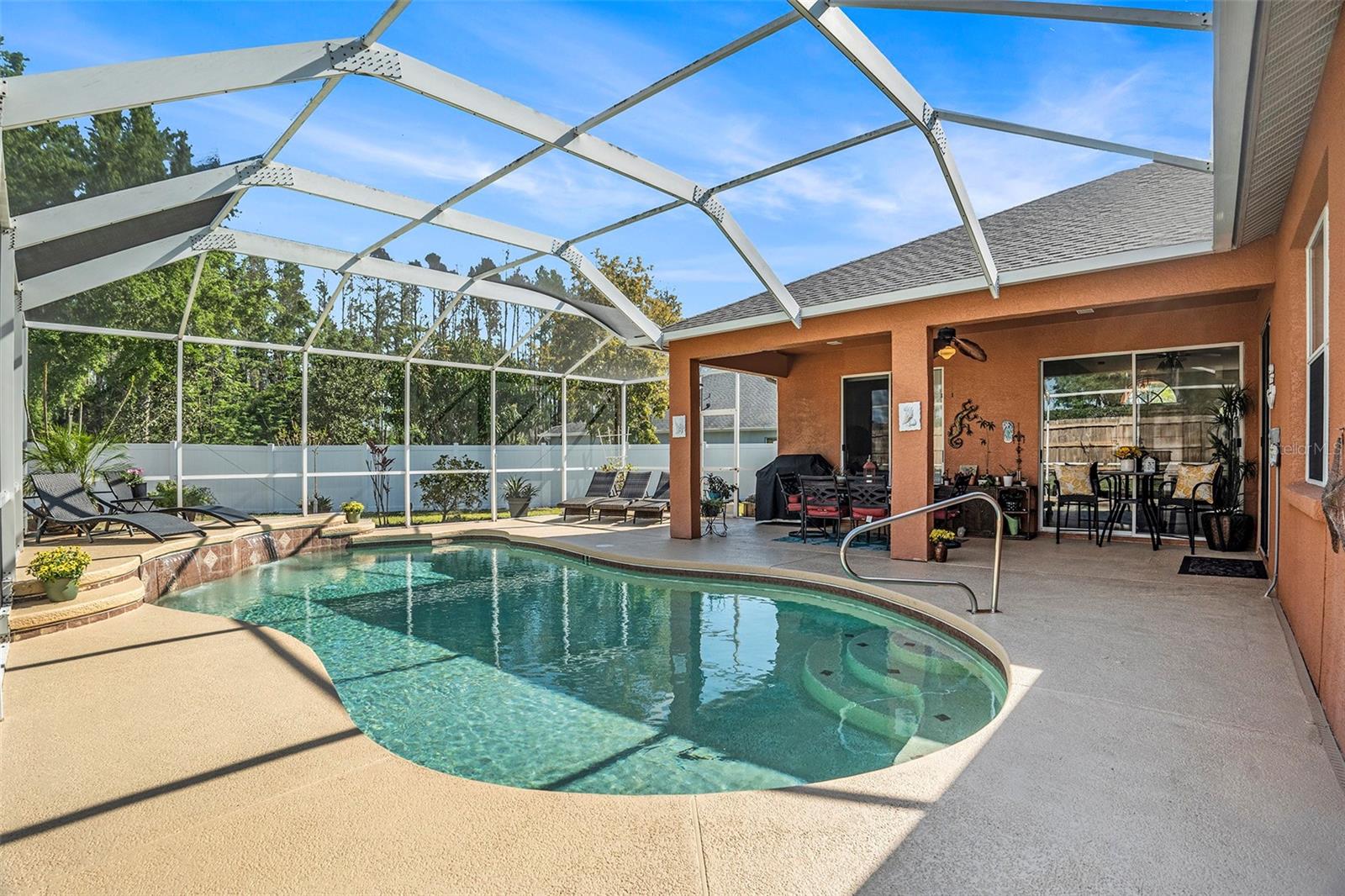 Bem -vindo à sua casa de sonho! Esta impressionante casa de 4 quartos e 3 banheiros oferece 2.299 pés quadrados de vida espaçosa, com uma garagem desejável de 3 carros localizada em um pacífico beco sem saída para a privacidade final. Sem vizinhos traseiros e um generoso lote de 0,23 acres, esta casa oferece um retiro sereno no bairro procurado de Sable Ridge. Aproveite os benefícios de um HOA baixo e nenhuma taxa de CDD, com um teto que foi substituído há apenas 3 anos e uma nova bomba de piscina em 2024. No interior, você será recebido por detalhes arquitetônicos, tetos altos e uma planta baixa e aberta que cria uma sensação de espaço e tranquilidade por toda parte. O layout do quarto dividido garante privacidade e conveniência, enquanto a cozinha é uma delícia de chef com armários de madeira maciça, bancadas expansivas, uma grande despensa, bar de café da manhã e uma área de jantar aconchegante. A sala da família é perfeita para entretenimento, com portas deslizantes que se abrem para a convidativa área da piscina e é destacada por uma encantadora lareira de queima de madeira do chão ao teto. As salas de vida e jantar formais têm acesso à Lanai e oferecem um cenário ideal para hospedar jantares. A espaçosa suíte primária é um verdadeiro retiro, com um banheiro semelhante a um spa com pias duplas, área de vaidade, uma banheira de imersão, chuveiro e dois grandes armários. O espaço ao ar livre é igualmente impressionante, com uma área de piscina selecionada completa com 2 cachoeiras suaves e vistas do quintal privado e cercado-perfeitas para relaxar ou hospedar reuniões ao ar livre. A casa também oferece uma lavanderia bem equipada com armários e encanamentos para uma banheira de utilidade. Para quem gosta de um estilo de vida ativo, o complexo esportivo do condado fica a apenas 800 metros, oferecendo uma variedade de comodidades como beisebol, futebol, pickleball, tênis, piscina e um centro de recreação interna. Convenientemente localizado perto de lojas, restaurantes e grandes estradas, esta casa realmente tem tudo. Não perca a oportunidade de ver essa jóia pessoalmente - faça o seu show particular hoje!