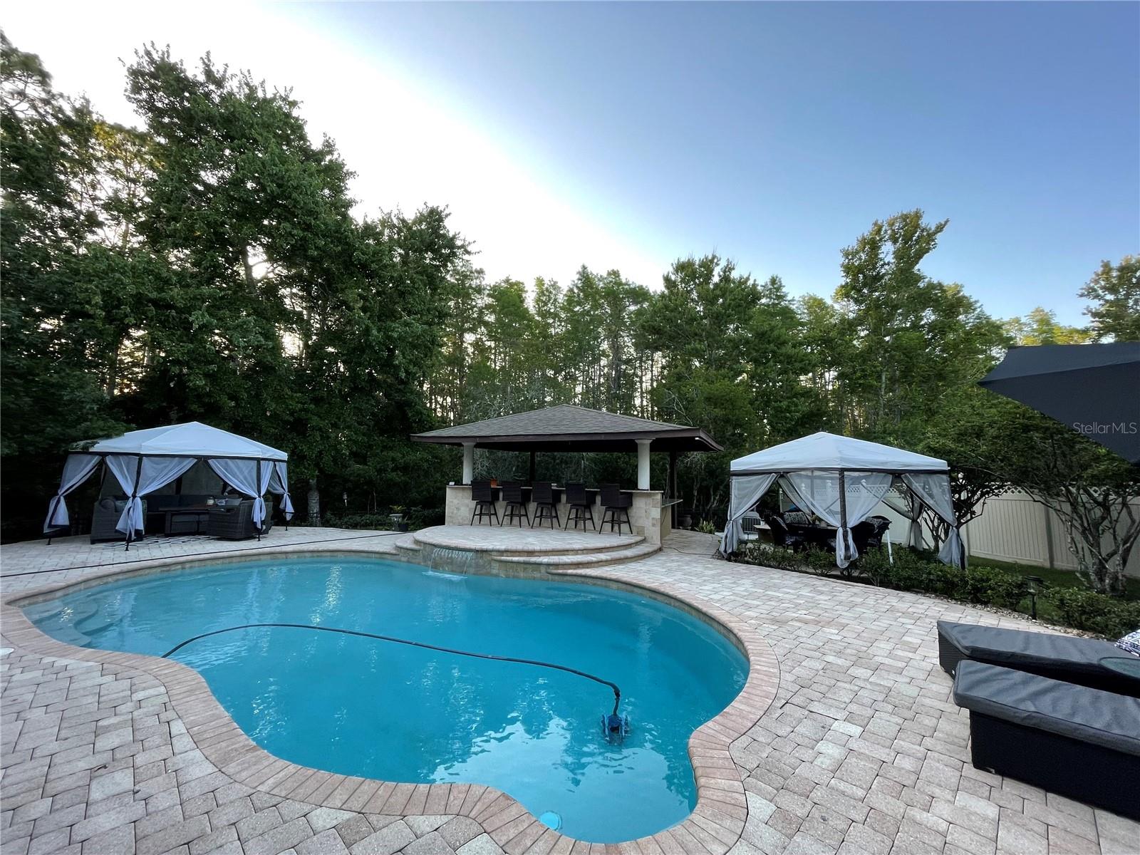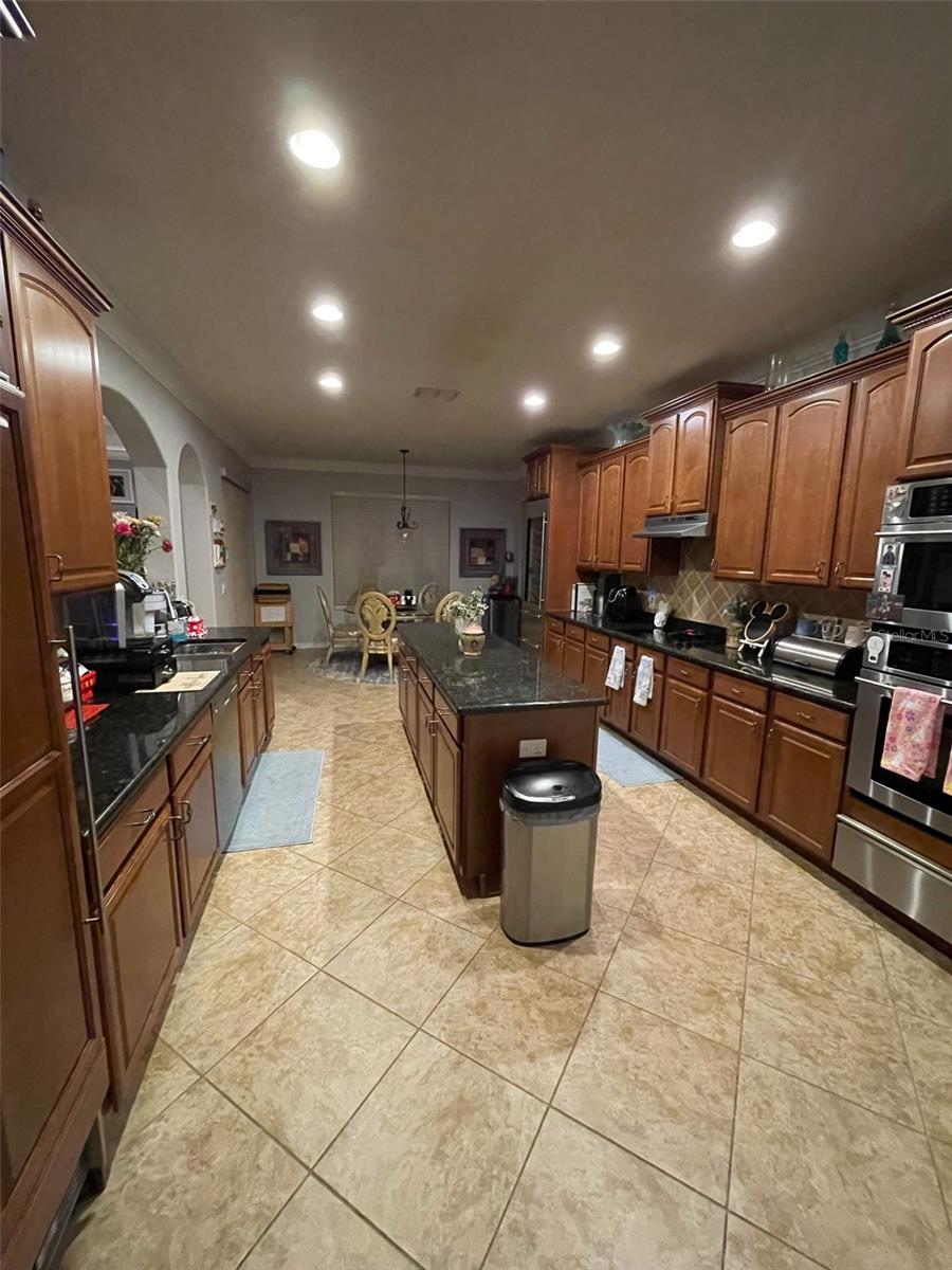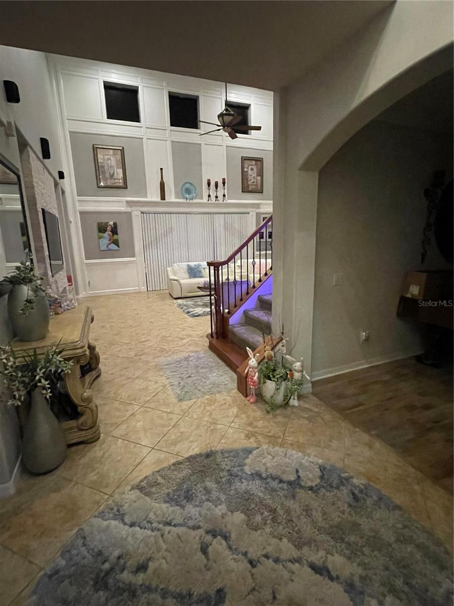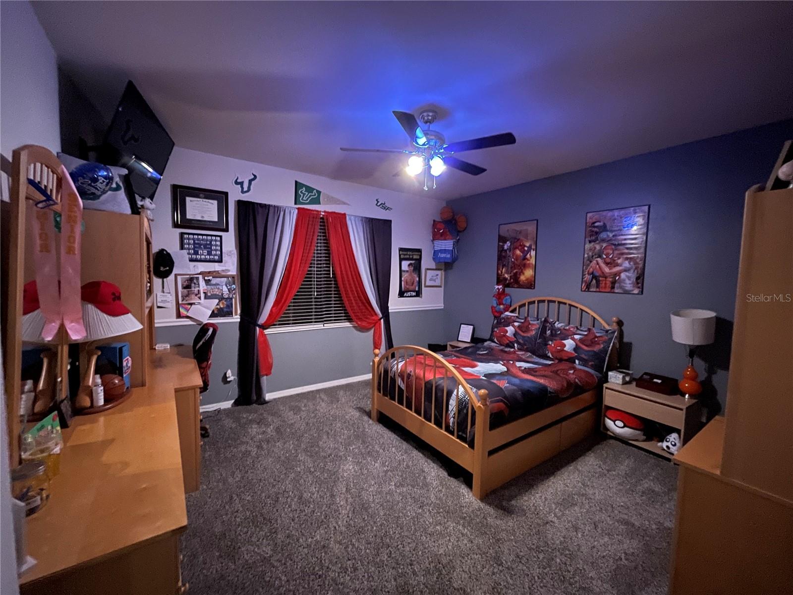 Bem -vindo à sua nova casa de sonho! Este resort privado denominado Home Two Story está situado na seção Mercedes Homes na comunidade isolada de Suncoast Lakes. Quando você entra no beco sem saída, esta residência impressionante o recebe com duas colunas iluminadas enquanto você puxa para a expansiva garagem de pavimentadora mega-bloco do pátio. Começando com o nível do 1º andar, uma entrada de 3 carros no lado esquerdo oferece uma área expandida para ferramentas, armazenamento, espaço extra para congelador e muito mais; A entrada tem uma grande porta de entrada de 8 pés de dois metros que leva a um hall de entrada de dois andares com lustre; A grande sala de estar formal é para a direita e leva à sala de jantar formal, com acesso direto à cozinha e à escada secundária; Um quarto de hóspedes é à esquerda com grandes portas de entrada dupla e tem um banheiro completo adjacente à direita, esta sala também pode funcionar como um escritório e incorporou a fiação especial para esse fim, se necessário; À esquerda está a grande lavanderia com banheira de lavanderia, espaço para lavadora e secadora ao longo de uma parede e armários superiores e inferiores e bancada na parede oposta, levando à garagem. Voltando ao hall de entrada, você caminha sob uma ponte no andar de cima e entra na grande sala da família com teto de 2 andares abobadado, com a escada principal para a direita imediata e encerrando a sala até o 2º andar. The Family Room features a stone entertainment center with two hidden drawers for electronic equipment, a functional electric fireplace' that also provides heat during the cooler months, and a 65" 3-D Television. The Entertainment area is capable of providing full surround sound with audio equipment. There is a multifunction space under the stairs which could be used as a wine cellar or storage. There is a pass-though from the kitchen with bar seating and a kitchen that was made for entertaining with an 8-foot center island Bancada com armários e gavetas para exibir seu buffet de férias. Portas deslizantes de parede a parede que abrem a área de Lanai de tela totalmente automatizada, que sai para a ampla área de entretenimento com pavimentadoras decorativas, grande área sombreada em árvores para sentar e outra grande área sombreada em árvore, com grama artificial que atualmente fornece uma área para relaxamento completa em uma área de rede dupla, diretamente atrás da casa e da piscina de resort, com a grande piscina coberta e a área de barra e a barra para o lado da lateral. De volta para dentro, enquanto subimos a escada aberta com vista para a sala da família, a área do segundo andar é dividida em duas seções, separadas por uma ponte. A primeira seção tem dois quartos grandes com armários e um grande banheiro de duas pia com separado