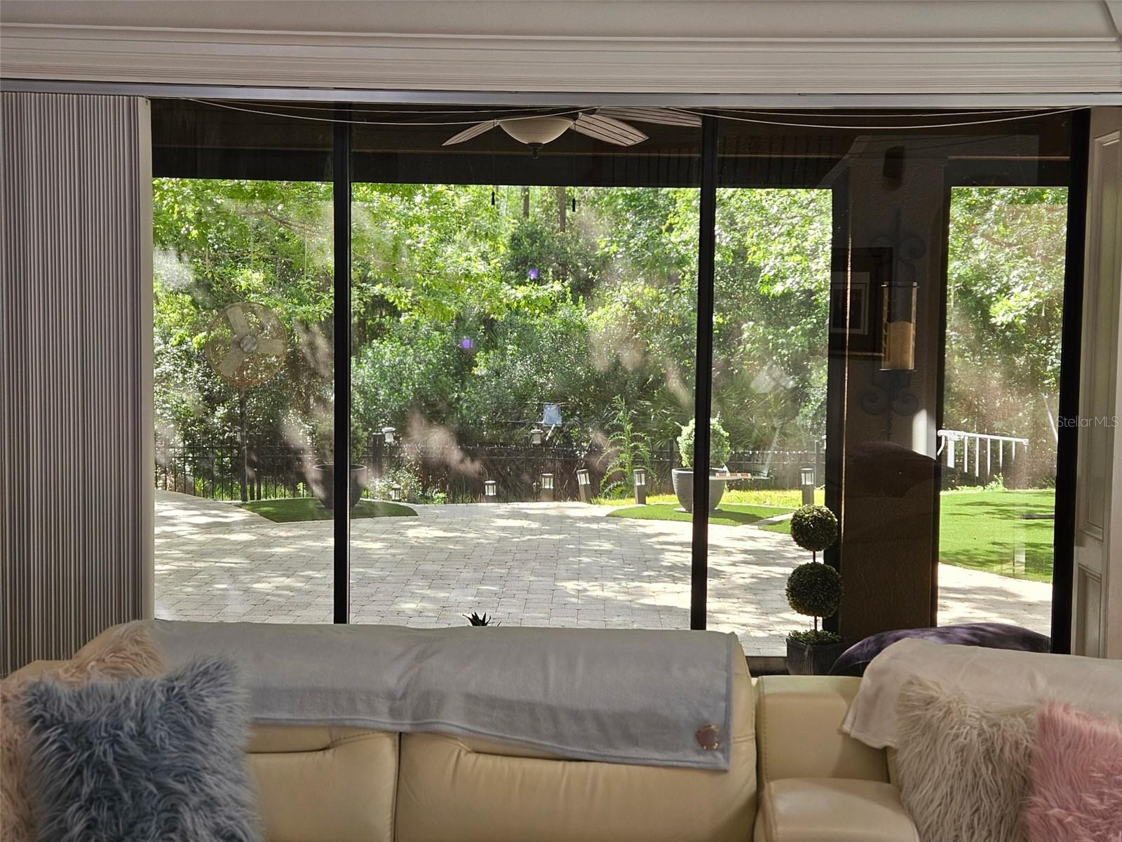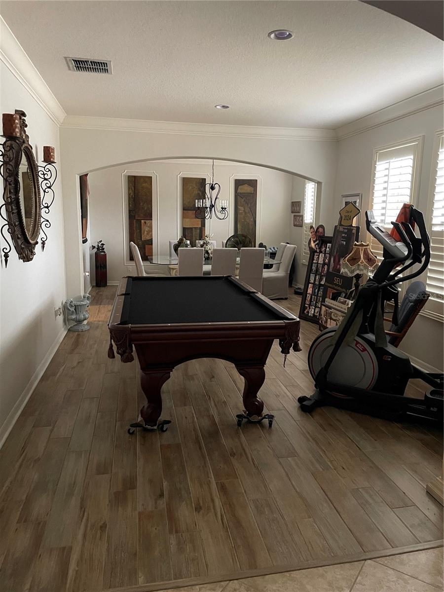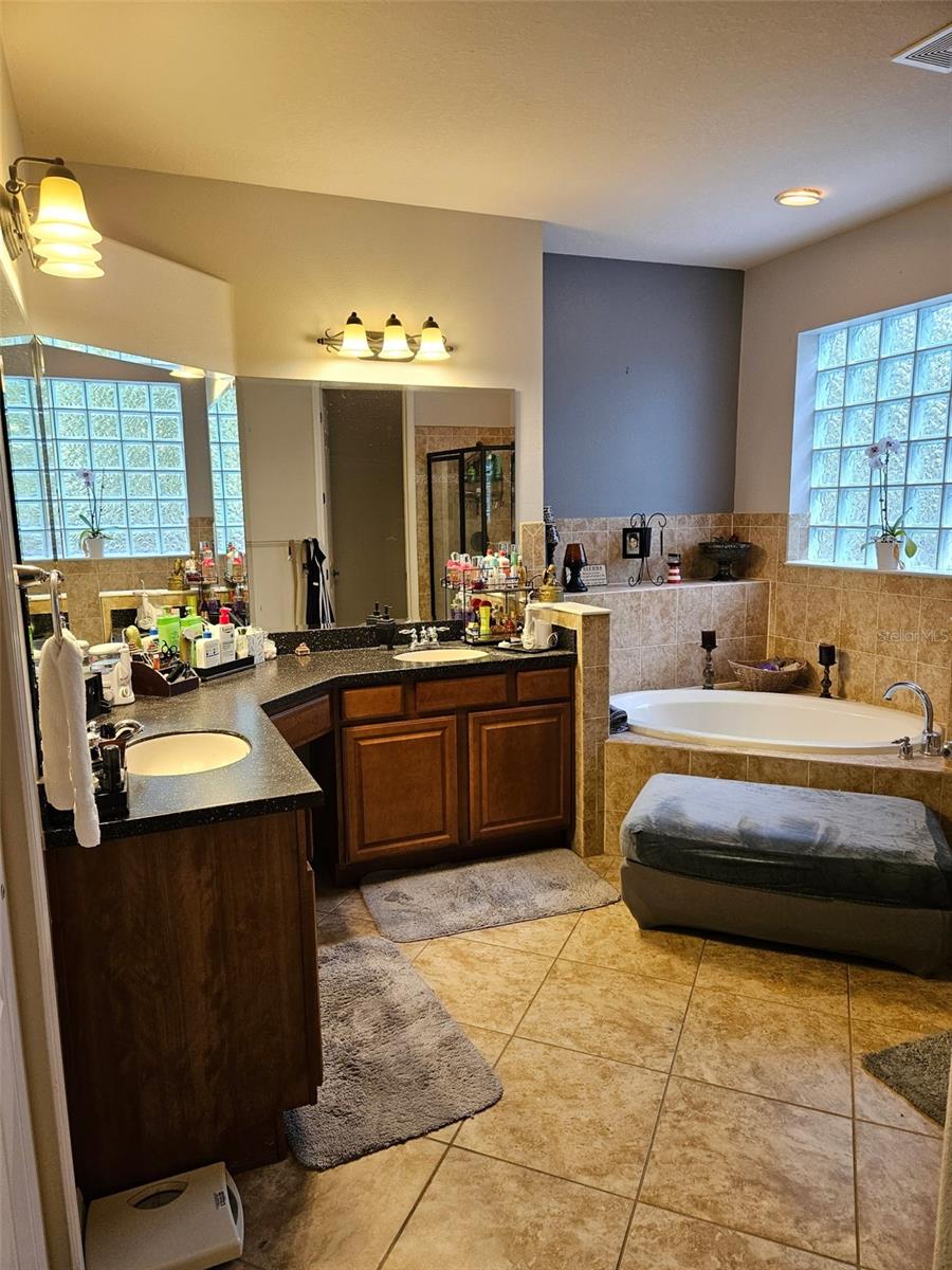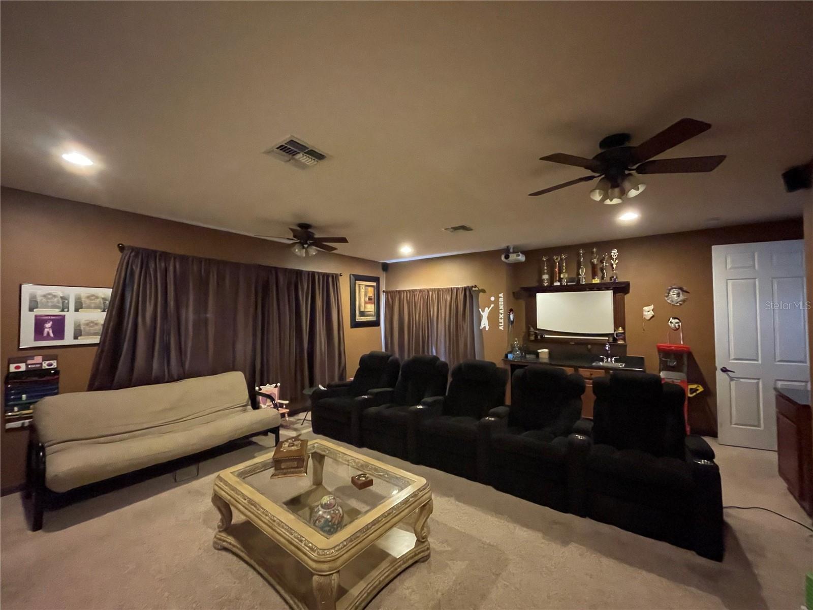 Bem -vindo à sua nova casa de sonho! Este resort privado denominado Home Two Story está situado na seção Mercedes Homes na comunidade isolada de Suncoast Lakes. Quando você entra no beco sem saída, esta residência impressionante o recebe com duas colunas iluminadas enquanto você puxa para a expansiva garagem de pavimentadora mega-bloco do pátio. Começando com o nível do 1º andar, uma entrada de 3 carros no lado esquerdo oferece uma área expandida para ferramentas, armazenamento, espaço extra para congelador e muito mais; A entrada tem uma grande porta de entrada de 8 pés de dois metros que leva a um hall de entrada de dois andares com lustre; A grande sala de estar formal é para a direita e leva à sala de jantar formal, com acesso direto à cozinha e à escada secundária; Um quarto de hóspedes é à esquerda com grandes portas de entrada dupla e tem um banheiro completo adjacente à direita, esta sala também pode funcionar como um escritório e incorporou a fiação especial para esse fim, se necessário; À esquerda está a grande lavanderia com banheira de lavanderia, espaço para lavadora e secadora ao longo de uma parede e armários superiores e inferiores e bancada na parede oposta, levando à garagem. Voltando ao hall de entrada, você caminha sob uma ponte no andar de cima e entra na grande sala da família com teto de 2 andares abobadado, com a escada principal para a direita imediata e encerrando a sala até o 2º andar. The Family Room features a stone entertainment center with two hidden drawers for electronic equipment, a functional electric fireplace' that also provides heat during the cooler months, and a 65" 3-D Television. The Entertainment area is capable of providing full surround sound with audio equipment. There is a multifunction space under the stairs which could be used as a wine cellar or storage. There is a pass-though from the kitchen with bar seating and a kitchen that was made for entertaining with an 8-foot center island Bancada com armários e gavetas para exibir seu buffet de férias. Portas deslizantes de parede a parede que abrem a área de Lanai de tela totalmente automatizada, que sai para a ampla área de entretenimento com pavimentadoras decorativas, grande área sombreada em árvores para sentar e outra grande área sombreada em árvore, com grama artificial que atualmente fornece uma área para relaxamento completa em uma área de rede dupla, diretamente atrás da casa e da piscina de resort, com a grande piscina coberta e a área de barra e a barra para o lado da lateral. De volta para dentro, enquanto subimos a escada aberta com vista para a sala da família, a área do segundo andar é dividida em duas seções, separadas por uma ponte. A primeira seção tem dois quartos grandes com armários e um grande banheiro de duas pia com separado