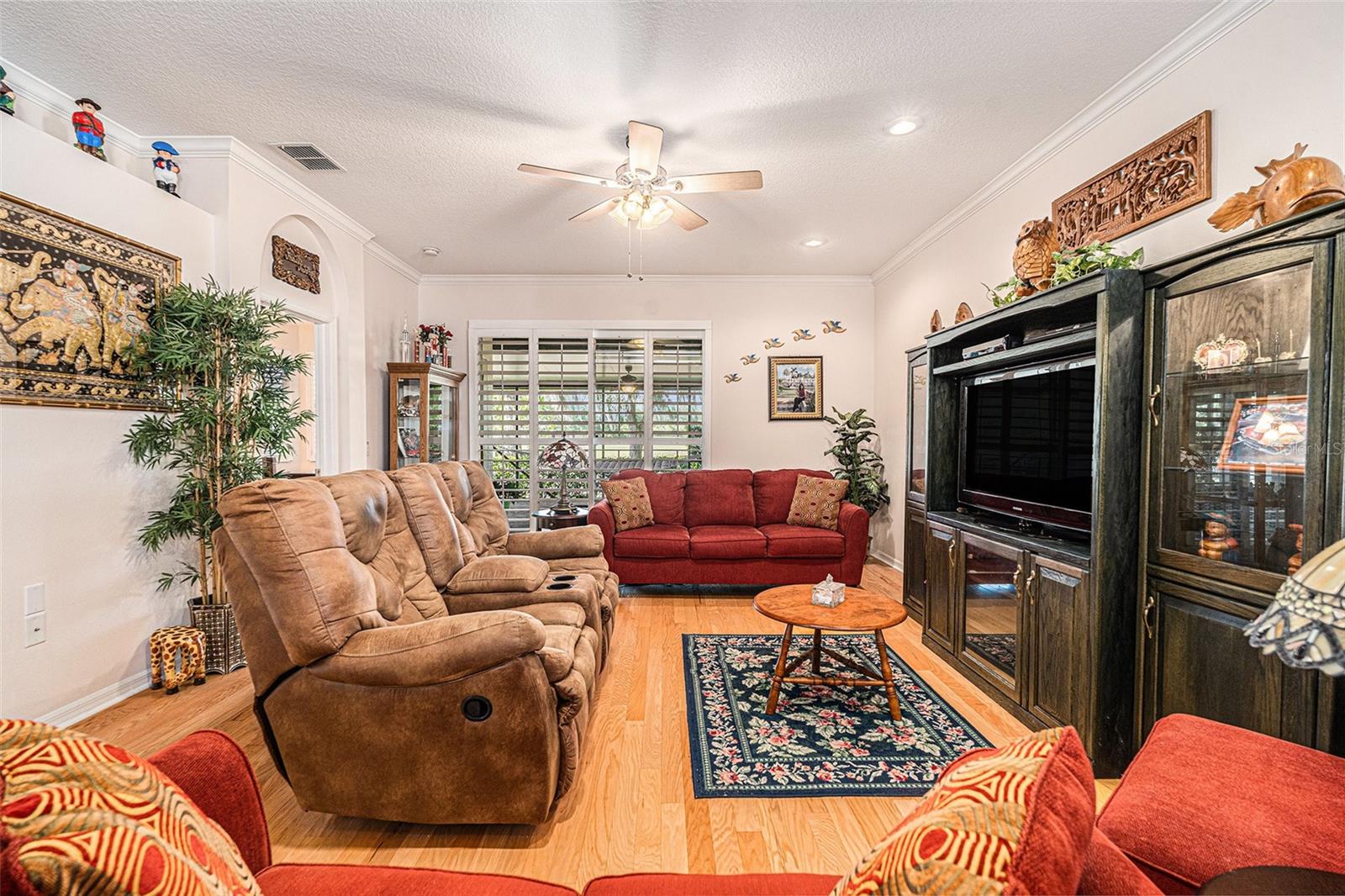 Garantia de um ano incluída, passada para o comprador. Uma jóia rara: linda casa no campo de golfe com garagem para carrinho de golfe! Esta casa de grandes dimensões é realmente um achado raro, oferecendo pisos de madeira deslumbrantes por toda parte e um layout que maximiza o espaço e a funcionalidade. Pintado recentemente e um novo telhado foi instalado em 2020. A cozinha espaçosa possui uma ilha central, um fogão a jenn-ar, microondas de parede e forno, armários amplos e muito espaço de contra-balcão, perfeito para preparar refeições e entretenimento. Também há muito espaço para uma área cozinha aconchegante. A expansiva sala grande é banhada em luz natural, graças a grandes janelas, enquanto a moldagem da coroa adiciona um toque elegante. Persianas de plantações em todas as janelas, incluindo a porta de vidro deslizante, aprimoram o charme da casa. O quarto principal oferece uma porta privada para o Lanai e uma janela de sacada encantadora que oferece amplo espaço para seus móveis. Os quartos de hóspedes oferecem espaço generoso no armário, ideal para visitantes ou como um escritório. O banho de hóspedes inclui uma luz solar, adicionando um toque natural de brilho. Saia para o Lanai 30x17, com pavimentadoras, onde você pode relaxar e assistir aos golfistas tocar no 11º buraco. Há também um condicionador de água de topo da linha acompanha a casa. O pátio lateral oferece muito espaço para desfrutar, como você achar melhor. O HOA cobre a pintura externa, a substituição do telhado, a manutenção do gramado e o cabo básico. O melhor de tudo é que esta casa está localizada na altamente desejável comunidade Groves Golf and Country Club, onde o estilo de vida é tão bom quanto o lar! Desfrute de golfe, tênis, bocha e uma piscina aquecida durante todo o ano. O clube possui um restaurante, salão de baile, biblioteca/centro de mídia, salas de artesanato e cartas e muito mais. Dois parques de cães, um buraco de pesca e até um parque de borboletas são apenas algumas das comodidades adicionais disponíveis. Precisa fazer recados? Pule no seu carrinho de golfe e siga para o shopping local de compras, bancos, restaurantes e muito mais. Com sua proximidade com Tampa, esta comunidade oferece o equilíbrio perfeito de vida pacífica e fácil acesso às conveniências da cidade. O Groves não é apenas um lugar para morar - é um modo de vida. Venha ver por si mesmo hoje!