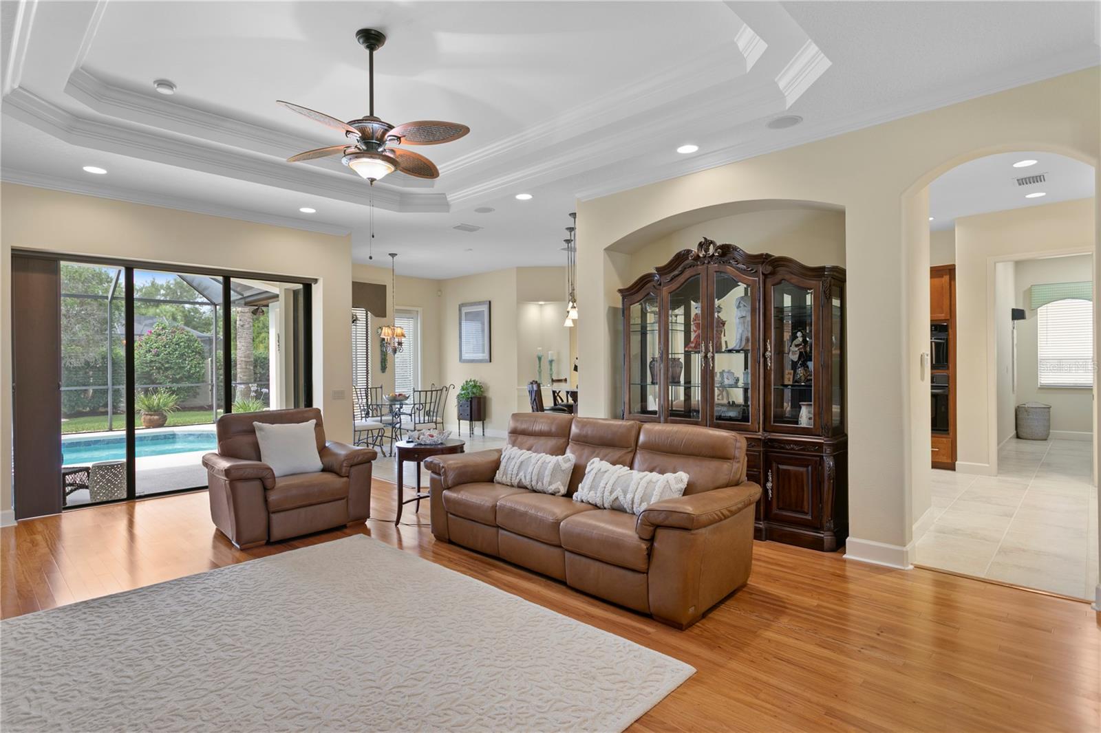 Bem -vindo à sua casa de sonho na vila de Strathmore. Esta linda casa de Arthur Rutenberg Coquiina Pool/Spa possui apelo inegável de meio -fio e está situado no desenvolvimento de Oakstead. Esta casa possui 3 quartos espaçosos, 3 banheiros e Den/Office com embutidos personalizados (que podem ser facilmente convertidos em um quarto quarto) e garagem de 3 carros. Entre e descubra os detalhes do projeto arquitetônico que incluem tetos de bandeja de 12 'na área de jantar formal e grande sala separada por uma parte superior de granito de passagem com armários de madeira e colunas cônicas. Pisos de madeira projetada, áreas molhadas e tetos crescentes de 10 'por toda parte, além de portas de 8'. Persianas de plantações personalizadas, tons, tratamentos de janelas de cornija e persianas adicionam um toque de classe. Os controles deslizantes triplos são completamente retráteis e oferecem acesso ao grande lanai de grandes dimensões com piscina/spa que inclui som surround e chuveiro ao ar livre. Todos os vidro fixo têm janelas coloridas de bronze. A cozinha do chef possui armários de madeira de 42 ”com coroa, bar de café da manhã, sala da manhã, backsplash de azulejos, bancadas de granito, pia dupla, cozinheira a gás desejável, forno embutido e convecção /microondas, ilha de plantio-ingestão, uma área de panos de gado, a área de panos de panos de salto mais amplo, o panorito de panos de panos e o panorito. Tuba de imersão, chuveiro com chuveiro duplo, armário de linho e 2 áreas de vaidade separadas. Bancos e armazenamento adicional adicionados (todos transmitem), amaciante de água, puxe as escadas para facilitar o acesso às polias do sótão e da bicicleta. Arruela de armário e LG Ambos substituídos recentemente. TRILHA DE TRABALHAÇÃO DE 3 MILHAS.