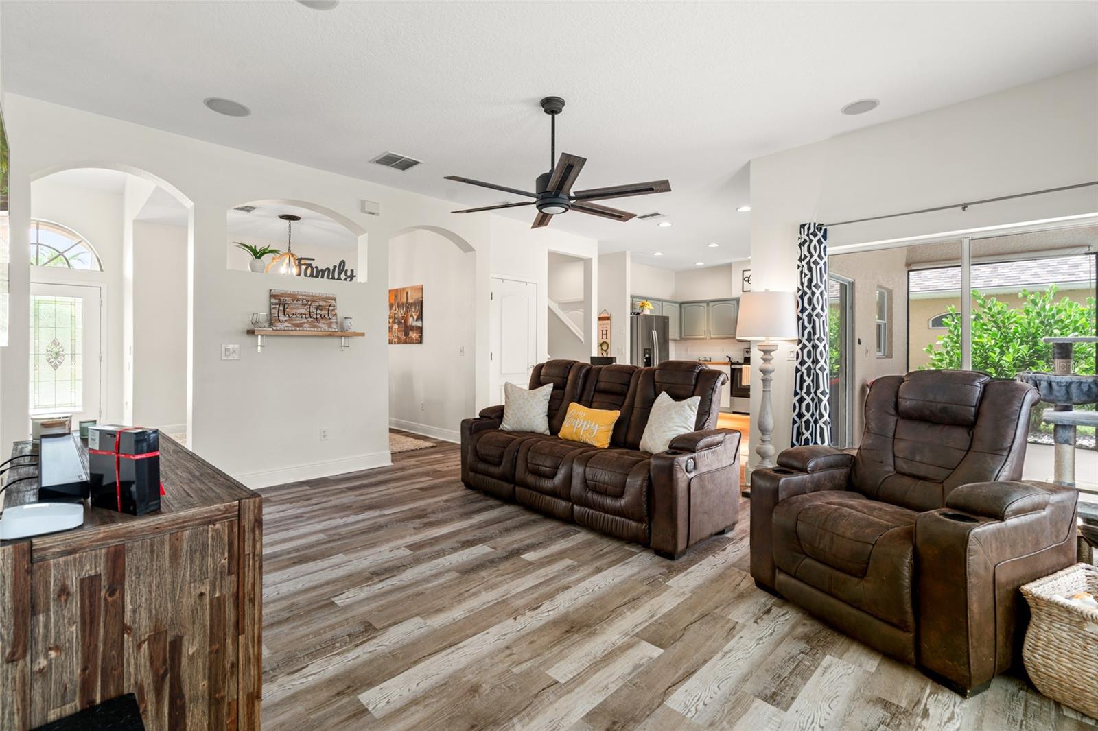 Experimente o auge do luxo que vive nesta impressionante casa de 5 quartos e 3 banheiros em terrenos O 'Lakes' Plantation Palms. Esta residência de 2.646 pés quadrados oferece uma mistura incomparável de conforto e sofisticação. Entre em seu amplo pátio, encerrado na tela, para o campo de golfe de tirar o fôlego e as vistas de lagoas, completas com uma piscina de água salgada, spa e área de entretenimento coberto, todas recentemente atualizadas para o prazer final. No interior, a cozinha do chef brilha com madeira de madeira, balcões de açougueiro e aparelhos de aço inoxidável (2023). Duas áreas de estar distintas, com o piso de tábua de vinil de luxo, oferecem amplo espaço para relaxar. A suíte primária no andar de cima é um paraíso privado com uma área de estar e armários duplos. Um enorme quinto quarto ou pode ser usado como uma sala de bônus e uma conveniente suíte no térreo oferece opções de vida flexíveis. As atualizações recentes incluem um novo telhado (2023) com uma garantia transferível e um novo abridor de garagem (2024), além de uma nova bomba de piscina (2024) e nova célula de sal em (2023). O Lanai foi re-preso e pintado em (2023) Plantation Palms Caracters: 18 buracos de golfe do campeonato, golfe em miniatura-Ótimo para as crianças brincarem, o restaurante de serviço completo da Mullans abre 7 dias por semana com eventos familiares ao longo do ano e uma instalação de banquetes de luxo. É um bairro muito familiar. Caminhe ou bicicleta até o centro de recreação Land O 'Lakes ao lado que oferece uma piscina comunitária, academia, beisebol, futebol e campos de futebol, quadras de tênis, vôlei interno, píer de pesca, doca e uma pista de BMX! Baixas taxas de HOA e sem taxas de CDD! Localizada a poucos minutos da I-75, Tampa Premium Outlets e uma variedade vibrante de restaurantes e entretenimento, esta casa realmente tem tudo. Agende sua exibição particular hoje!