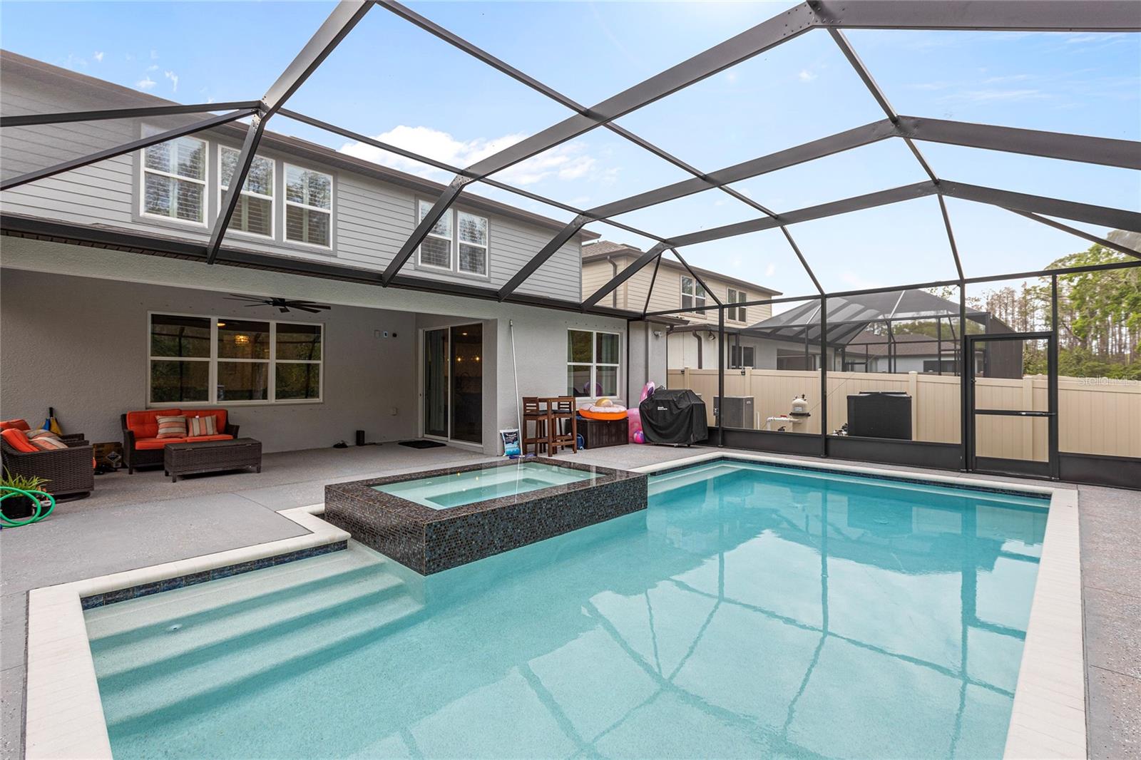 This home blends energy efficiency, smart tech, and everyday comfort in all the right ways. It’s powered by a full Tesla Solar setup—27 panels (11.48 kW) and a Powerwall that gives you up to 3 days of backup power. Você tem aquecimento elétrico central, janelas com classificação de estrelas energéticas, persianas de plantações e recursos de casa inteligentes que tornam a vida um pouco mais fácil e muito mais eficiente. Inside, this stunning 5-bedroom, 4.5-bath estate sits on a peaceful conservation lot in a private, gated community. With nearly 3,500 square feet of beautifully upgraded space, it checks all the boxes—style, function, and flexibility. The kitchen is a total showstopper, with sleek quartz counters, high-end stainless steel appliances, and elegant finishes throughout. Saia para o seu próprio retiro privado com uma piscina de água salgada e spa, paisagismo tropical e sem vizinhos traseiros - apenas privacidade total e vistas relaxantes. O layout funciona para todos: a suíte primária está no andar de cima e há uma segunda suíte no andar de baixo-perfeita para hóspedes, sogros ou vida multigeracional. You’ve also got a spacious loft wired for surround sound, a tandem 3-car garage, a pre-wired alarm system, and thoughtful updates throughout. Localizado perto de tudo-Major Roads, escolas de melhor classificação, compras, parques de cães-este entrega uma vida de ponta com paz de espírito de baixa manutenção