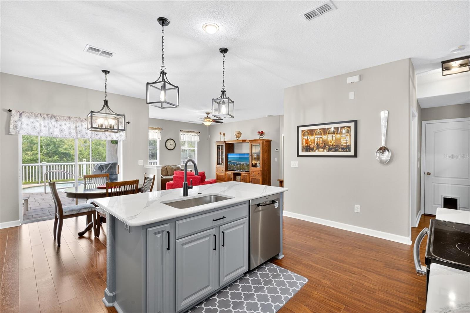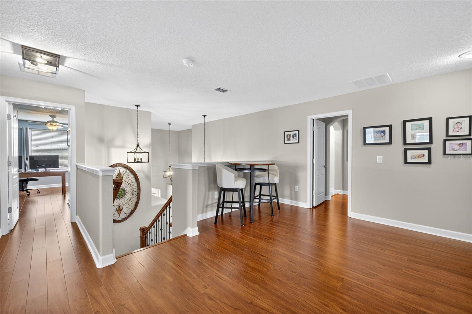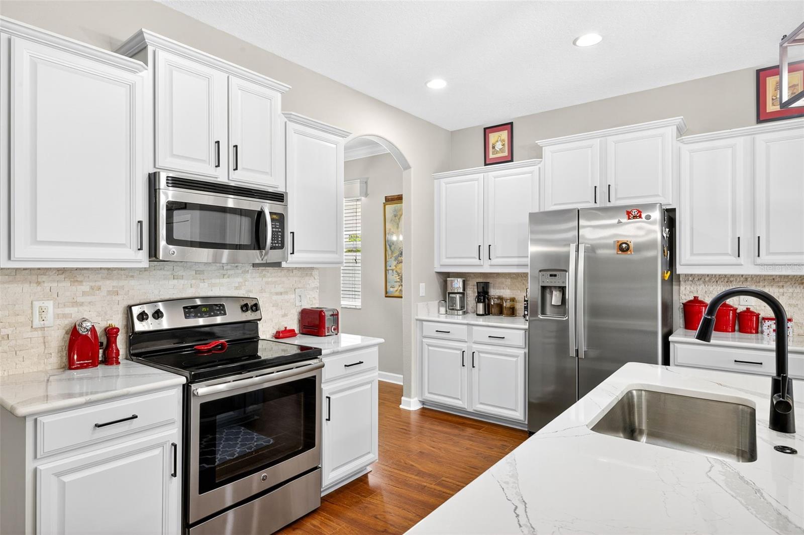 No mercado de hoje, as palavras "espaço facilmente acessível e abundante com atualizações premium" raramente somam a acessibilidade. Venha e encontre a exceção de destaque a essa regra nesta impressionante 5/3, a piscina Cul-de-Sac em casa com garagem para Tandem 3. Com mais de 3200 pés quadrados, todos gostarão de acomodar espaço que flui com laminado luxuoso por toda parte (exceto os 3 banheiros e lavanderia completos.) Melhorias da qualidade para este excepcionalmente mantido, uma casa do proprietário está por toda parte. Uma cozinha remodelada inclui bancadas de quartzo de Cambria, armários de madeira cinza pintados profissionalmente, backsplash de pedra, iluminação do gabinete e uma nova pia e acessórios. Ambos os banhos no andar de cima têm novas vaidades e pias de quartzo e também armários recém -pintados. O banho completo no andar de baixo foi completamente remodelado e será a inveja dos convidados com sua nova caminhada no chuveiro. Novas luminárias de qualidade, 7 ventiladores de teto e grade de escada e bannisters adicionam ao toque. Para maior segurança dos elementos, um obturador para baixo foi instalado sobre o controle deslizante traseiro, um obturador de Bahama sobre a popa frontal e as persianas da tempestade de acordeão em todas as janelas no andar de cima para facilitar o uso. É igualmente fácil apreciar o espaço ao ar livre desta casa. Além da pavimentadora recentemente adicionada e subir que o cumprimenta, você vai adorar a privacidade fornecida por um lote totalmente cercado e em forma de torta que você normalmente só fica no final de um beco sem saída. Ele também possui uma piscina de água salgada enjaulada e aquecida, cercada por pavimentadoras luxuosas. A Concord Station oferece uma atmosfera familiar e divertida, com piscina comunitária, bloco de respingos, tênis, basquete, bola Gaga e no site Rushe Middle School e Sunlake High. Duas escolas primárias também estão do lado de fora deste ótimo lugar para se viver.