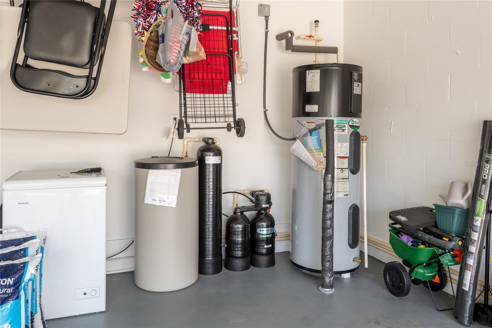 Máquina de lavar louça, descarte, esquentador elétrico, exaustor, micro-ondas, fogão, geladeira, amaciante de água
