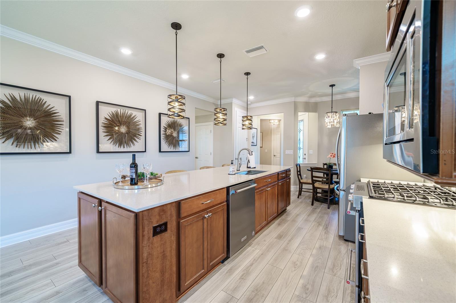 Bem-vindo a este deslumbrante modelo Steel Creek Grand, (onde cabo, internet e cuidados com o gramado estão todos incluídos) perfeitamente situado no cobiçado condomínio fechado com mais de 55 anos de Del Webb Bexley em Land O 'Lakes - a poucos minutos das principais estradas, das principais lojas e restaurantes, excelentes instalações médicas e a menos de 30 minutos do centro de Tampa e do Aeroporto Internacional de Tampa. A partir do momento em que você chega, o grande apelo do meio-fio é inegável, com uma calçada de tijolos, entrada com detalhes em pedra, varanda frontal coberta, porta de tela retrátil e porta frontal decorativa com incrustações de vidro criando uma recepção calorosa e convidativa. No interior, você será saudado por tons suaves de terra, paredes com detalhes em madeira e luminárias de design exclusivo, com sancas em todos os quartos adicionando elegância. O luxuoso piso de vinil flui pelas principais áreas de estar, complementado por uma escada com eixos decorativos de ferro forjado que é escondida para preservar o fluxo aberto da casa. O coração da casa é a cozinha espaçosa e bem equipada, com uma enorme ilha de quartzo, eletrodomésticos de aço inoxidável, prateleiras removíveis e uma despensa personalizada. Desfrute de refeições na sala de café da manhã iluminada pelo sol e, em seguida, faça a transição para a sala Florida (não incluída na metragem quadrada), que leva a duas varandas com tela - uma delas aprimorada com iluminação externa perimetral - perfeita para reuniões noturnas. Este layout de dois andares bem projetado possui 3 quartos, 3 banheiros completos e um loft. O andar de cima oferece um retiro privado com quarto, banheiro completo e loft - ideal para uma suíte de hóspedes, sala de jogos para netos ou escritório doméstico - completo com alto-falantes de som surround integrados. A suíte principal possui um banheiro privativo tipo spa com pias duplas, balcões de quartzo, chuveiro com portas de vidro e um armário personalizado excepcional. Todos os armários da casa possuem embutidos personalizados, e a lavanderia oferece armários, além de lavadora e secadora incluídas. A garagem para 2 carros vem com armários extras que ficarão para os novos proprietários. O quintal enorme em forma de torta oferece total privacidade e uma vista tranquila do lago à esquerda - um local ideal para o café da manhã ou para relaxar tranquilamente. E com o cuidado do gramado incluído, você terá mais tempo para aproveitar as coisas que ama. Se você gosta de se manter ativo, AS COMODIDADES INCRÍVEIS incluem uma piscina estilo resort com raias, piscina de resistência, banheira de hidromassagem e cabanas, amplo clube de 19.000 pés quadrados, sala multiuso e sala de artes e ofícios, bar de cerveja e vinho, café / bistrô /, lareira ao ar livre, lounge, 2 quadras de tênis, 6 quadras de pickle ball, 4 quadras de bocha, academia, estúdio de movimento, jardim comunitário, parque para cães, e muitos clubes de residentes e grupos de interesse! Quer procure uma residência a tempo inteiro ou uma segunda habitação para fugir dos dias frios e de neve do Norte, impecavelmente cuidada, esta casa tem de tudo! Não deixe este escapar!