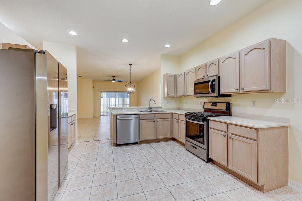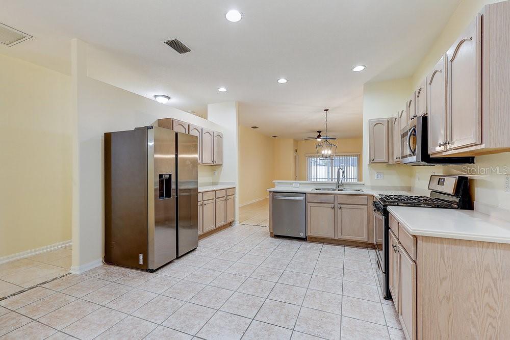 Uma ou mais fotos foram virtualmente encenadas. Brilhante, bonito e pronto para você em Oakstead! Bem-vindo ao 19332 Everton Place – uma casa charmosa e super limpa de 3 quartos e 2 banheiros no coração da popular comunidade de Oakstead em Land O’ Lakes. A comunidade de Oakstead oferece comodidades como clube, piscinas em estilo resort, academia, quadras de basquete, tênis e vôlei de areia e playground. A partir do momento em que você entrar, você notará o quão amada e meticulosamente mantida esta casa realmente é. A pintura interna fresca dá a tudo uma sensação nítida e limpa, e os eletrodomésticos mais novos - incluindo lavadora, secadora, geladeira, micro-ondas e lava-louças - significam que não há mais nada a fazer a não ser desfazer as malas e aproveitar. Cada quarto possui ventiladores de teto modernos com controle remoto e, com piso de cerâmica por toda parte, você não encontrará um pedaço de carpete (suas alergias e seu aspirador vão agradecer). A cozinha é espaçosa e iluminada, com espaço para uma mesa de café da manhã e um grande fluxo para a área de estar aberta - perfeita para noites divertidas ou aconchegantes. Saia para uma varanda com tela ideal para tomar café da manhã ou relaxar à noite. The two-car garage gives you plenty of room for your vehicles and anything else you need to stash away. Situada em um beco sem saída tranquilo, esta casa oferece mais paz e privacidade - e como o HOA cuida do cuidado do gramado, seu quintal sempre terá uma aparência perfeita sem suor. O HOA também cobre manutenção externa, incluindo telhado, pintura externa, gás natural e segurança fechada – ajudando a manter os custos de seguro de propriedade mais acessíveis. Telhado substituído em 2017, HVAC-2017, Aquecedor de água a gás-2023