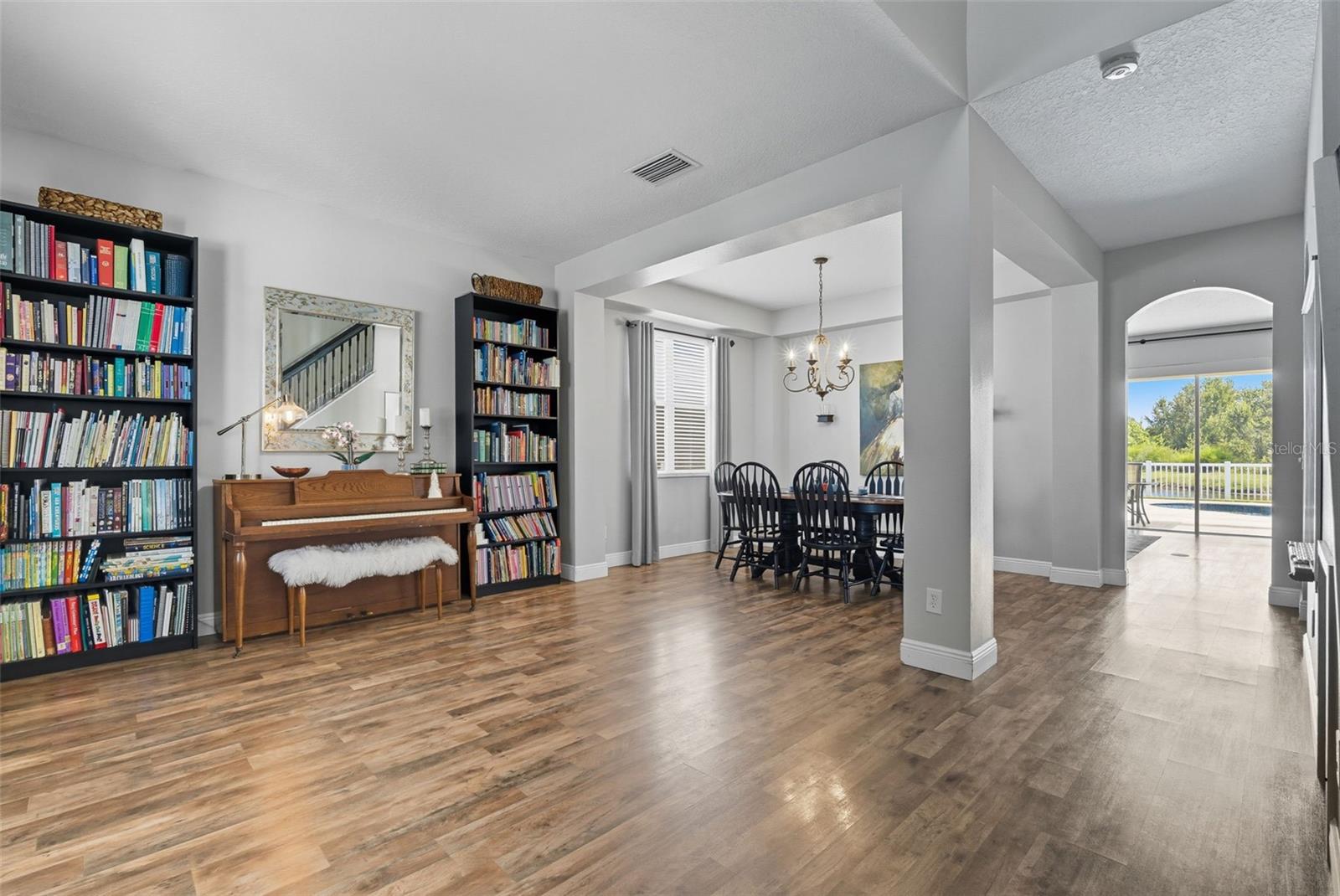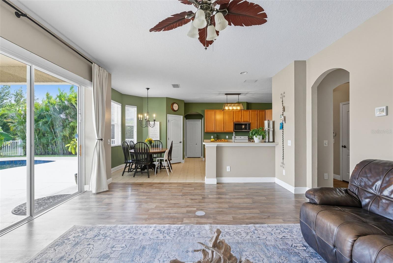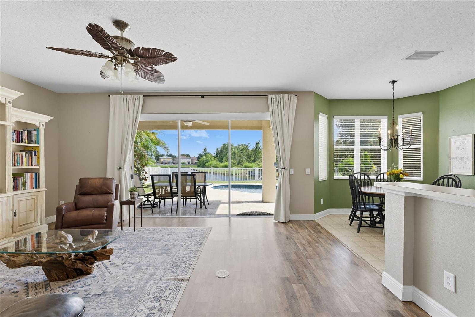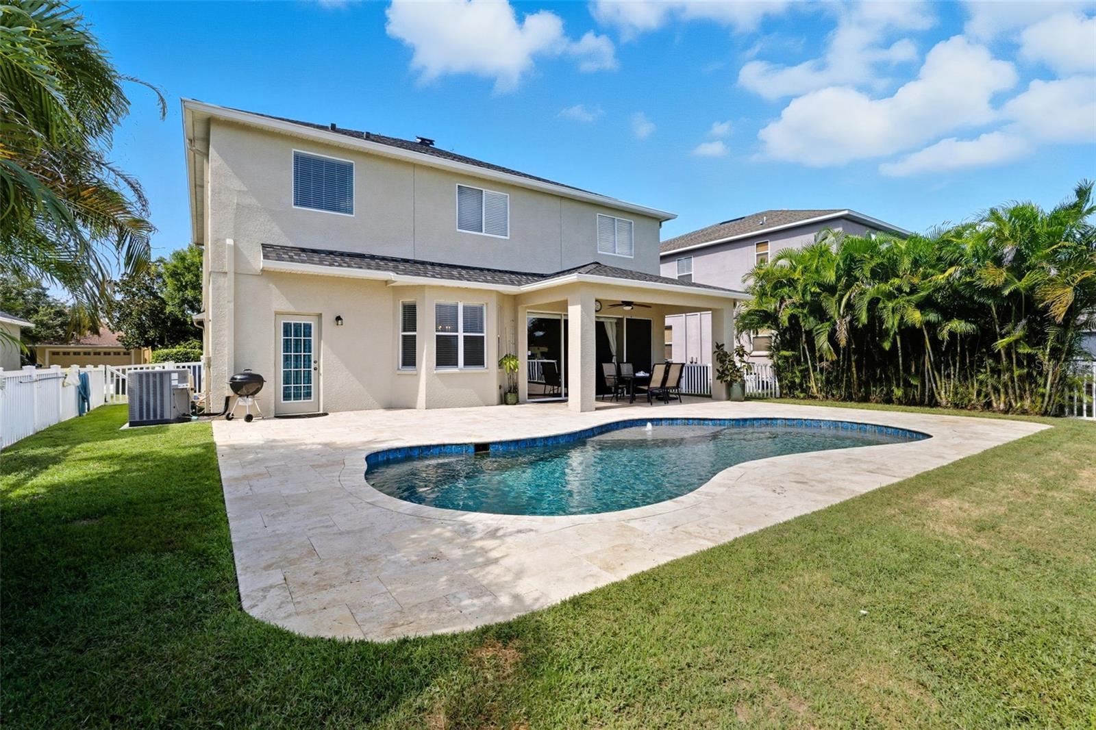 Casa com PISCINA na LAGOA e CONSERVAÇÃO em Tierra Del Sol!! Piscina de água salgada (2019) com solário, banco de conversa, fonte e amplo deck de travertino com privacidade e amplo quintal cercado. Controles deslizantes triplos na sala familiar oferecem vistas amplas do exterior e levam ao pátio sob o telhado com ventilador de teto. Muita arrumação na cozinha com ilha e despensa. Uma copa com janela saliente oferece muita luz e mais excelentes vistas. Muito espaço nesta casa de 4 quartos, 2,5 banheiros, garagem para 2 carros, planta aberta e tetos altos. Enorme quarto principal no andar de cima com 2 closets e banheiro privativo com pia dupla, banheira de jardim, chuveiro e vaso sanitário. Os quartos de hóspedes são grandes e também no andar de cima. Um lavabo no térreo também funciona como um conveniente banho de piscina. A extensão da Ridge Road (quase completa) permitirá acesso rápido aos Veteranos/Suncoast, bem como ao novo complexo de pesquisa, inovação e tratamento de Moffitt Speros. Telhado 2022. Sistema de pragas na parede, ventilador de sótão e calhas de chuva. SEM CDD, baixo HOA, SEM zona de inundação!! Subsídio de piso para carpete de $ 5.000.