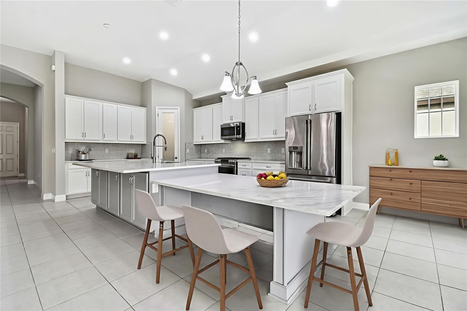 Uma ou mais fotos foram virtualmente encenadas. Esta deslumbrante casa térrea construída em 2021 com 4 quartos e 3 banheiros e garagem para 3 carros fica em um lote premium de grandes dimensões de 65 x 132, sem vizinhos no jardim da frente e vistas tranquilas para o lago. Localizada em uma seção única de Connerton com Homes by WestBay com lotes mais amplos/profundos e casas maiores, esta propriedade oferece privacidade e distinção. Uma grande entrada de porta dupla abre para tetos altos e detalhes arquitetônicos elegantes que imediatamente definem um tom acolhedor e sofisticado. No coração da casa, a ampla cozinha tem vista para a grande sala e para o quintal, criando um espaço perfeito para a vida cotidiana e o entretenimento. A cozinha é lindamente decorada com eletrodomésticos GE Café Series, forno duplo, fogão a gás, backsplash de azulejos, bancadas de quartzo, armários de 42 polegadas, despensa e uma ilha ampla com armários frontais e balcão de café da manhã dupla face. A planta tripla dividida oferece privacidade excepcional, com a luxuosa suíte principal escondida e com closets duplos e um banheiro privativo inspirado em spa com bancadas de quartzo, pias duplas e um espaçoso chuveiro de azulejos e vidro. Dois quartos secundários e um banheiro completo estão localizados fora do hall de entrada, enquanto um quarto quarto com banheiro completo adicional está situado além da lavanderia, tornando-o ideal para hóspedes ou residências multigeracionais. Os destaques adicionais incluem um grande pátio traseiro coberto perfeito para relaxamento ao ar livre, portas de 2,5 metros em toda a casa, um aquecedor de água sem tanque a gás natural, conexão para secador de gás, fogão a gás e um pátio com churrasqueira a gás natural. A casa está equipada com sistema de alarme, termostato Ecobee e piso de garagem com acabamento em epóxi. O exterior da casa apresenta o novo gramado de Santo Agostinho com paisagismo fresco, realçando seu apelo ao meio-fio. Connerton é uma das comunidades planejadas mais desejáveis de Tampa Bay e oferece escolas de primeira linha, piscinas estilo resort com toboáguas, quadras esportivas, clube, cafeteria, academia, playgrounds, parques, trilhas multiuso e quilômetros de trilhas naturais pitorescas. Tudo isso é desfrutado com uma baixa taxa HOA de apenas US$ 261 por trimestre, tornando esta casa excepcional uma excelente oportunidade para uma vida luxuosa e um estilo de vida ativo. Reserve sua exibição privada hoje antes que esta seja VENDIDA!