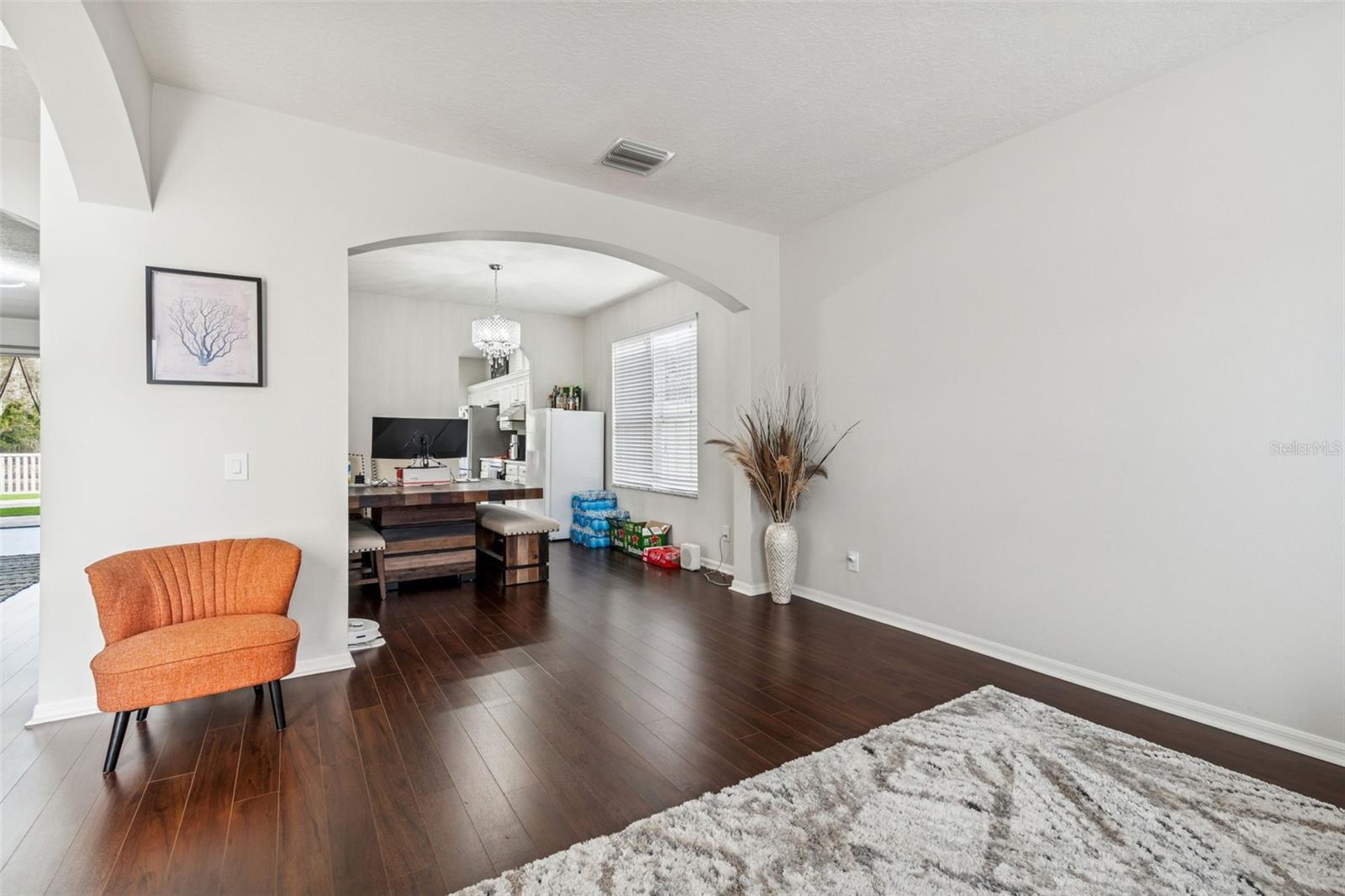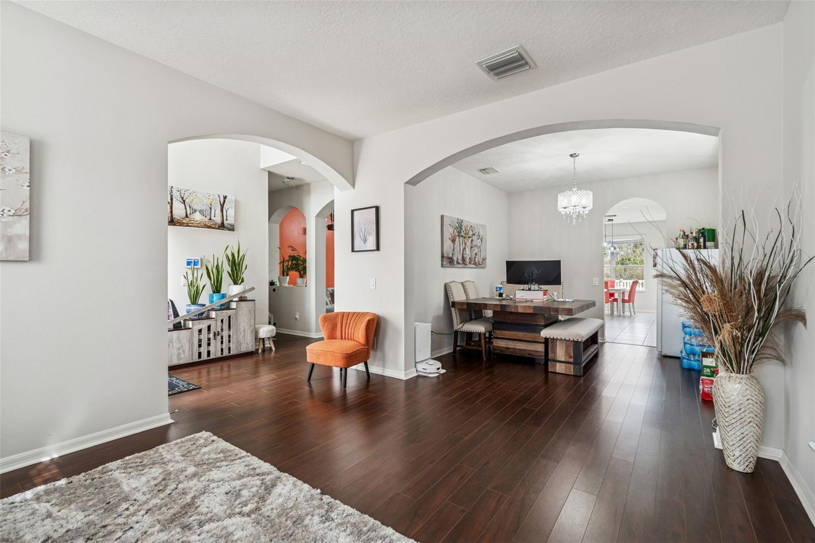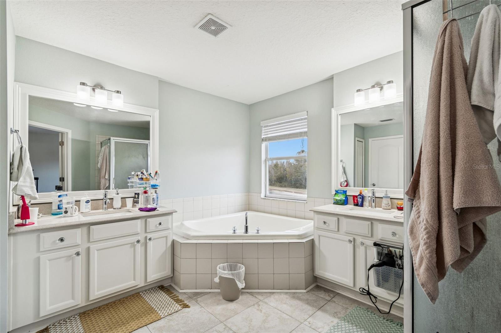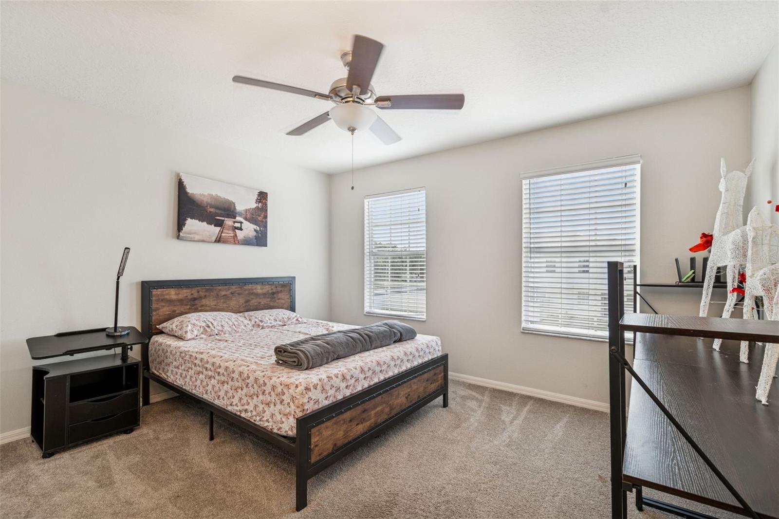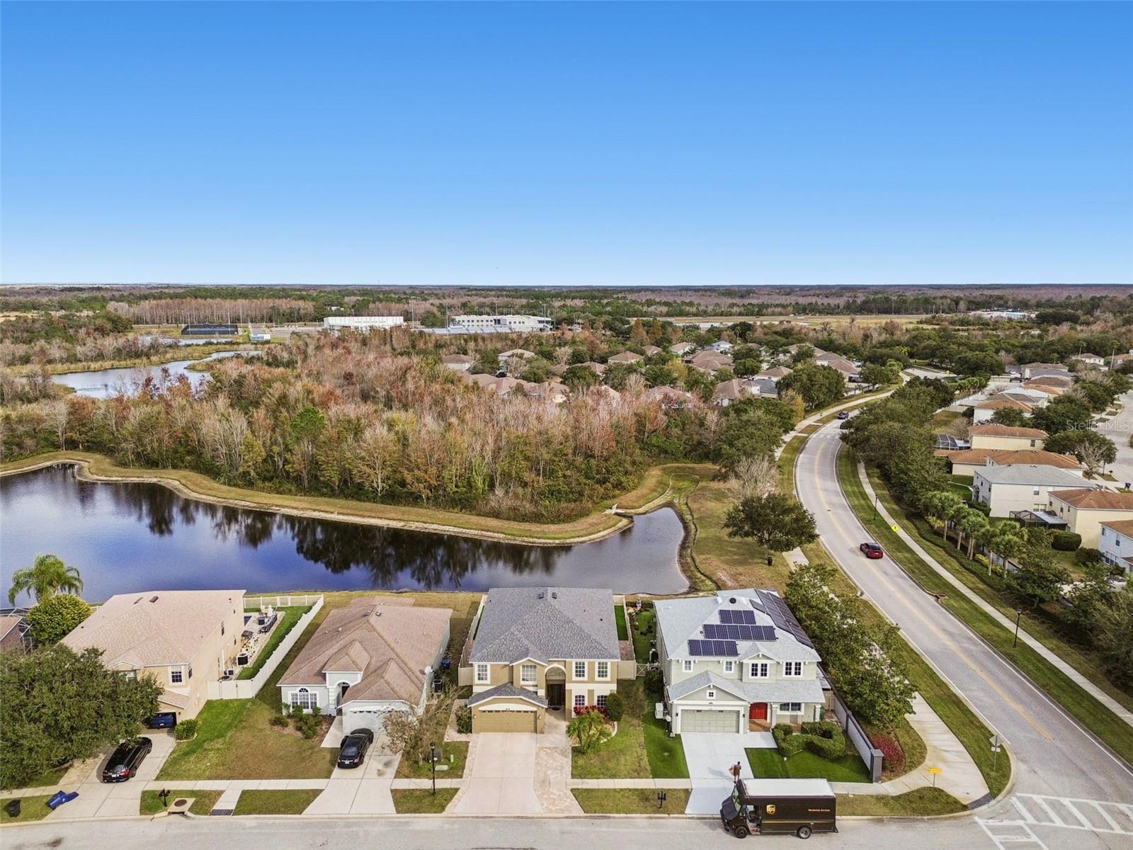Casa elegante no desejável condomínio Tierra Del Sol. Esta espaçosa residência possui 5 quartos, um loft generoso, 3 banheiros completos e garagem para 2 carros. As atualizações recentes incluem nova pintura externa, uma calçada estendida para estacionamento adicional, um novo telhado (2024) e um sistema de ar condicionado mais recente. Passe pela porta frontal de vidro para um interior luminoso e acolhedor, com piso laminado com aparência de madeira brilhante e tetos altos. A cozinha oferece eletrodomésticos de aço inoxidável, bancadas de quartzo e backsplash, além de uma área de alimentação com vista para o quintal e para o lago tranquilo. A sala familiar se abre para o quintal através de portas de vidro deslizantes. Do lado de fora, desfrute de um quintal espaçoso com pavimentos mais novos, grama artificial de baixa manutenção e uma cerca de estacas - ideal para reuniões com a família e amigos. Você pode até avistar cervos de manhã cedo ou tarde da noite. Um quarto conveniente no primeiro andar é perfeito para convidados ou sogros. No andar de cima, a suíte principal ampla inclui uma área de estar aconchegante e um amplo closet. O banheiro principal possui pias duplas com bancadas de quartzo, box amplo e banheira de imersão. Três quartos adicionais de bom tamanho têm piso em carpete e armários embutidos. O amplo loft/sala bônus é perfeito para uma sala de jogos, sala de mídia ou escritório doméstico. Esta casa está idealmente localizada perto de uma nova escola de ensino fundamental e médio na entrada da comunidade e a poucos minutos do futuro Moffitt Cancer Center em Speros. Conveniente para fazer compras, vários restaurantes, belas praias e o Aeroporto Internacional de Tampa. Todos os móveis estão incluídos. Esta casa pronta para morar está esperando por sua próxima família.