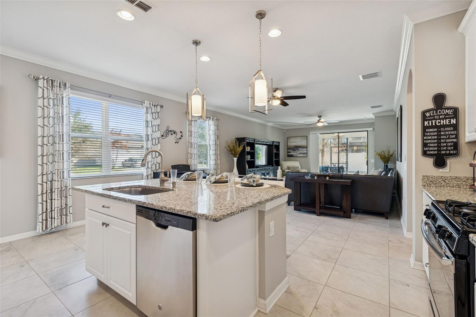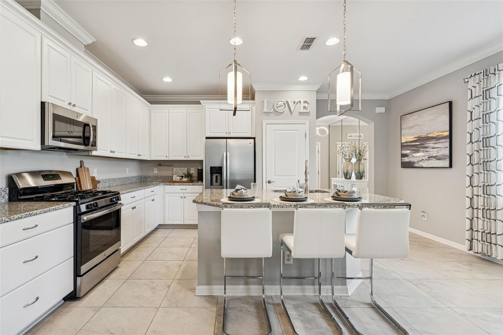 Bem-vindo a este excepcional MI Homes Newport II, lindamente posicionado em uma área cercada de 60 pés, abrangendo 0,24 acres, sem vizinhos frontais e cativante apelo ao meio-fio a partir do momento em que você chega. Perfeitamente mantida e cuidadosamente atualizada, esta casa oferece uma experiência de vida elevada em cada detalhe. Passe pela porta da frente atualizada para um hall de entrada acolhedor, onde tetos altos, sancas, iluminação aprimorada e uma parede personalizada com espelho criam uma sensação imediata de sofisticação. O impressionante piso de cerâmica flui perfeitamente pelas principais áreas de estar, sem carpete, proporcionando elegância e fácil manutenção, ao mesmo tempo que aprimora o design coeso da casa. À direita, uma espaçosa sala flexível oferece uma versatilidade incrível. Atualmente estilizada como uma sala de jantar formal, ela pode facilmente se transformar em um escritório doméstico privado, sala de jogos, lounge ou espaço criativo adaptado ao seu estilo de vida. Projetado para conforto diário e entretenimento sem esforço, o layout de conceito aberto realmente brilha. O coração da casa é a ampla combinação de cozinha e sala grande - iluminada, convidativa e lindamente conectada. A cozinha possui bancadas de granito, uma ilha grande perfeita para reuniões, fogão a gás em aço inoxidável, micro-ondas, lava-louças, geladeira e iluminação pendente atualizada que adiciona calor e estilo. Seja recebendo amigos ou desfrutando de uma noite tranquila em casa, este espaço central é ao mesmo tempo requintado e acolhedor. Portas de vidro deslizantes estendem a área de estar ao ar livre para uma varanda coberta e blindada de 15' x 12' completa com piso de epóxi e ventilador de teto, criando o retiro interno-externo perfeito para café da manhã, churrascos de fim de semana ou relaxamento tranquilo à noite. O retiro personalizado e ampliado do proprietário é verdadeiramente impressionante, medindo aproximadamente 24' x 12'8". Este santuário privado apresenta belo piso de madeira, acesso direto à varanda através de portas de vidro deslizantes, um generoso closet e amplo espaço para uma área de estar ou recanto de leitura. O banheiro privativo inspirado em spa oferece pias duplas de granito, uma relaxante banheira de jardim e um box amplo projetado para conforto e luxo diário. No lado oposto da casa, dois quartos adicionais e um banheiro completo proporcionam privacidade e flexibilidade para familiares ou convidados. Uma lavanderia espaçosa acrescenta conveniência e leva diretamente para a garagem recém-revestida com epóxi para três carros - oferecendo espaço abundante para veículos, armazenamento, hobbies ou até mesmo uma configuração de academia doméstica. Localizada na muito procurada comunidade de Verona, na premiada comunidade de Connerton, esta casa pronta para morar oferece a combinação perfeita de estilo, funcionalidade e atualizações cuidadosas - sem esperar para construir. Com baixas taxas de HOA e CDD, é tão prático quanto bonito. Além da sua porta, a vida em estilo resort o aguarda. Os residentes desfrutam de trilhas panorâmicas para caminhada, parques, playgrounds, academia comunitária, piscina olímpica, parque aquático, quadras de tênis e parques para cães. Um segundo clube está em construção e deverá ser inaugurado no verão de 2026, com uma academia de ginástica adicional, seis quadras de pickleball, uma pista de bombeamento e outra piscina estilo resort – melhorando o estilo de vida excepcional que esta comunidade já oferece. Isto é mais do que uma casa – é um estilo de vida projetado para oferecer conforto, conexão e luxo diário.