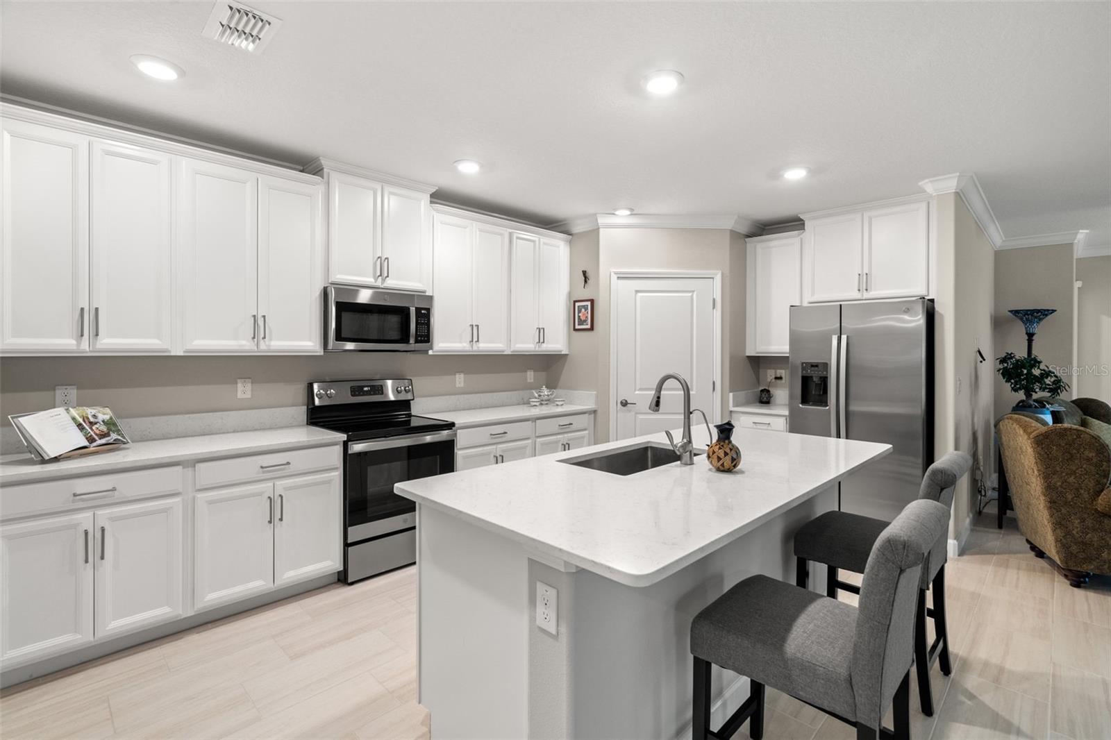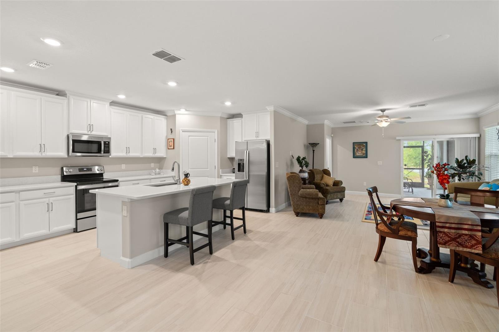 Comprador oferecendo fundos para fechar os custos. Bem -vindo à sua vila dos sonhos, aninhada em uma comunidade serena de mais de 55 anos, onde todos os dias parecem férias. Esta morada encantadora possui dois quartos espaçosos, uma sala flexível versátil e dois banheiros completos para o seu conforto e conveniência. As atualizações incluem moldagem por coroa, armários na lavanderia com lavadora e secadora atualizada e lanai exibido. Ao pisar no pátio, você é recebido por uma visão de tirar o fôlego de uma lagoa tranquila repleta de animais selvagens vibrantes, criando um cenário pitoresco para relaxar e rejuvenescer. Delicie-se com o estilo de resort com acesso a uma infinidade de comodidades, incluindo uma piscina espumante para quedas refrescantes, quadras de pickleball para competição amigável, shuffleboard e bocha para diversão ao ar livre e uma sala de bilhar e sala de cartas para reuniões sociais. Depois de um dia de lazer, relaxe no café da comunidade, saboreando deliciosos deliciosos enquanto mergulhou na beleza do seu ambiente. Esta vila oferece não apenas um lar, mas um estilo de vida de luxo e serenidade.