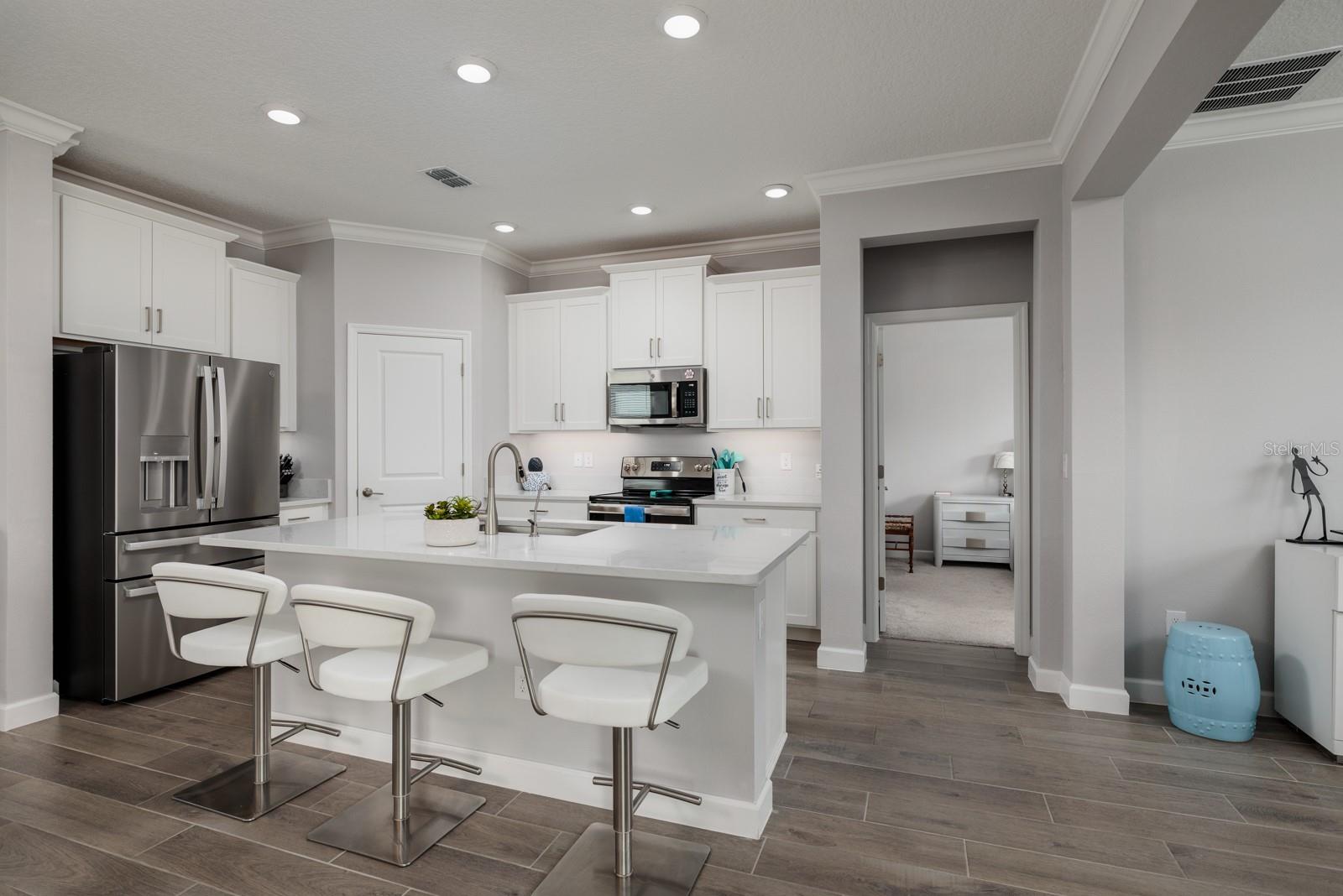Esta é sua oportunidade de comprar quase novo sem taxas adicionais de construção, economizando milhares de dólares. Construída em 2023, esta casa está localizada na comunidade exclusiva de mais de 55 pessoas de Medley em Angeline. Localizada no final do beco sem saída, a varanda de tela coberta com vista para a tranquila área de conservação e lago ostenta pouco menos de 0,25 acre. Conceito aberto, área de estar iluminada aberta para a bela cozinha iluminada com armários shaker brancos, iluminação sob os armários, despensa personalizada com iluminação, eletrodomésticos em aço inoxidável (a geladeira da cozinha não transmite, será substituída pela da garagem) e lindo quartzo bancadas. Todos os armários são projetados sob medida com organizadores, incluindo o armário principal, o segundo quarto e os dois armários de linho. As características adicionais incluem garagem para 2 carros, ar condicionado central e lavanderia separada. Esta nova comunidade de resorts oferece um valor incrível e uma experiência de vida elevada através de suas diversas atividades. O clube recém-concluído tem piscina comunitária e sala de ginástica, picles, shuffleboard, bocha, bilhar, sala de cartas/pôquer e até lavatório para cães. O clube também conta com bar e churrasqueira interna e externa. Na frente da comunidade está a Fazenda. Eles contrataram um agricultor para cultivar produtos frescos e ervas, além de ter seu próprio café. Taxa do clube $ 126 por mês.