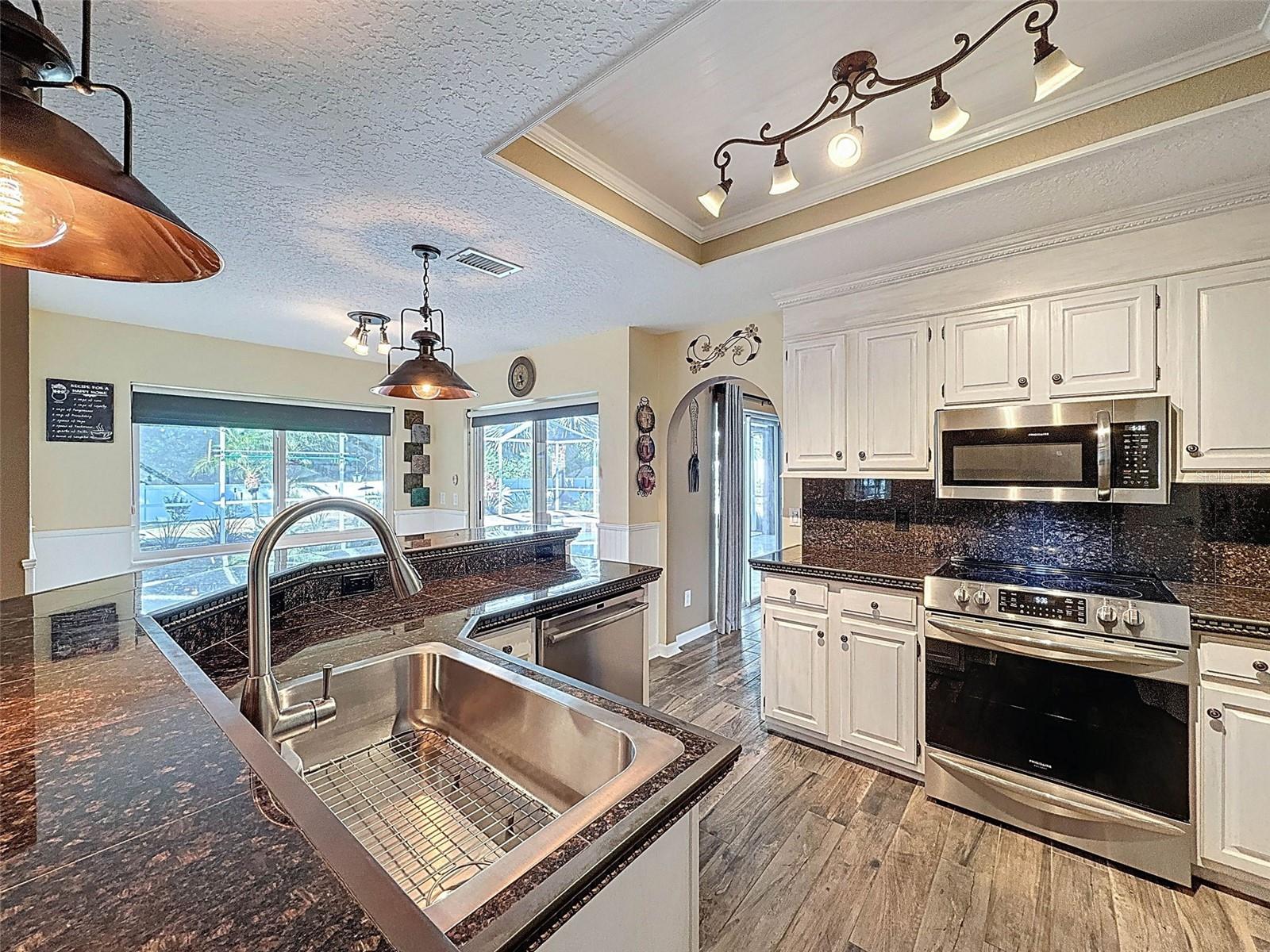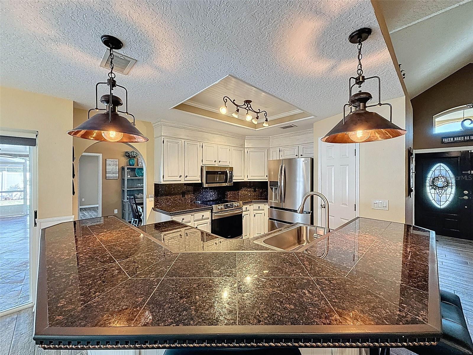 Bem -vindo ao 3920 Meadowlark Court no coração de Land O 'Lakes! Esta impressionante casa de 4 quartos e 2 banheiros possui 2210 pés quadrados de espaço de estar lindamente mantido e é embalado com atualizações e recursos personalizados por toda parte. Idealmente localizado perto de tomadas premium de Tampa e as lojas da WireGrass, esta propriedade totalmente cercada oferece conveniência e tranquilidade. Entre para encontrar tetos abobadados, persianas e tintas frescas que criam uma atmosfera leve e arejada. A lareira a lenha e prateleiras personalizadas na sala da família adicionam calor e caráter. A cozinha é uma rolha de show com balcões de azulejos de mármore elegantes e backsplash, belas iluminação, despensa e aparelhos mais novos. A espaçosa suíte primária inclui armários duplos com prateleiras, vaidades e pias duplas e uma banheira de jato, oferecendo um retiro semelhante a um spa. O banho de hóspedes tem pias duplas, então não há mais discussão sobre o espelho. Desfrute da Flórida que vive com uma piscina aquecida e spa jacuzzi, chuveiro ao ar livre, nova exibição e uma fogueira e balanço - perfeitos para entretenimento. A garagem de 26x12 acomoda facilmente seu trailer ou barco. As atualizações incluem: concreto extra para mais estacionamento, novas janelas, novo amaciador de água, nova lavadora e secadora de carregamento frontal, vácuo central, novas calhas com intradorso e fáscia, novas luzes de movimento e um novo abridor de porta de garagem. Um galpão de 12x16 com sistema elétrico e A/C e de som externo adiciona espaço de armazenamento ou oficina versátil. O sistema de aspersores mantém essa paisagem deslumbrante com a melhor aparência o ano todo. HVAC (2014), Water Heater (2019) e Roof (2008)-todos bem conservados pela paz de espírito. TVs em todos os quartos ficam e móveis selecionados estão disponíveis para venda. Esta casa realmente tem tudo-não perca a chance de possuir uma jóia pronta para mover-se em uma das áreas mais desejáveis do condado de Pasco!