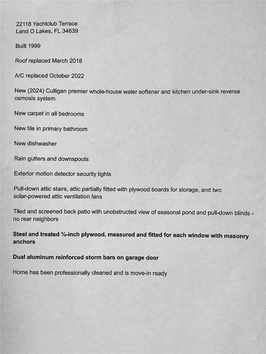 Uma ou mais fotos foram virtualmente encenadas. MAIS UMA GRANDE REDUÇÃO DE PREÇO! NÃO PERCA ESTA OPORTUNIDADE! Localização, estilo de vida, layout! Esta joia de Land O Lakes foi muito apreciada pelo proprietário original e agora está disponível para seu próximo capítulo. Você será o autor sortudo? Localização desejável em pequeno condomínio fechado. Bairro tranquilo, longe da agitação, ao mesmo tempo que oferece fácil acesso à US41, às estradas estaduais 54, 56 e 52 e à I75. Muitas comodidades a poucos minutos de distância em qualquer direção: excelentes escolas públicas e privadas, shoppings, lojas, entretenimento, restaurantes, médicos e muito mais. E quando você fica em casa, a vista relaxante e desobstruída do lago sazonal e nenhum vizinho traseiro proporciona o estilo de vida que você deseja. Quando você se senta em sua varanda de azulejos e tela para apreciar aquela vista, você pode respirar aliviado sabendo que seu novo *2018 TELHADO * lhe dá paz de espírito e alívio das altas taxas de seguro. *2022 A/C* de 4 toneladas com baixo consumo de energia e termostato Wi-Fi manterá as contas de luz razoáveis. O NOVO AMACIADOR DE ÁGUA PARA CASA INTEIRA CULLIGAN MAIS O SISTEMA DE OSMOSE REVERSA SOB A PIA DA COZINHA mantém você saudável e facilita a limpeza. Por fim, o Layout desta espaçosa casa permite que todos tenham o seu espaço quando precisam, mas também oferece muito espaço para se reunir e se divertir. Detalhes como luzes de segurança externas com detector de movimento, calhas de chuva, ventiladores de sótão movidos a energia solar e reforços contra furacões agregam valor incrível. Consulte a ficha de fatos e características incluída com as fotos para obter uma lista completa.