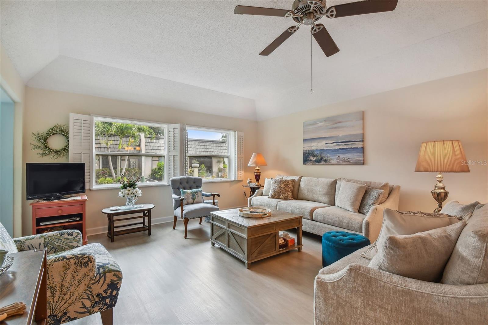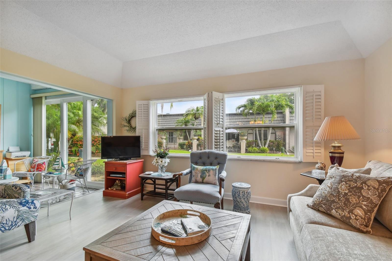 Bem-vindo a este espaçoso condomínio tipo casa de campo de 1.472 pés quadrados, 2 quartos/2 banheiros no primeiro andar em Bardmoor, que está pronto para morar! Centralmente localizado perto de restaurantes, lojas e parques, com praias imaculadas a menos de 20 minutos de distância. Desfrute de vistas de terrenos meticulosamente mantidos de todas as janelas. Entre em um hall de entrada acolhedor e uma grande sala ampla, complementada por uma sala Florida fechada. A cozinha totalmente renovada e as casas de banho completamente renovadas realçam o seu apelo. As características incluem um grande armário de armazenamento, closet forrado de cedro e um armário utilitário com espaço para uma lavadora e secadora grande. Tetos altos adornam todas as áreas de estar e quartos. As atualizações recentes incluem novo piso, pintura interna e janelas e portas deslizantes atualizadas. Está incluída uma vaga de estacionamento atribuída, com estacionamento adicional para hóspedes disponível. Os moradores podem desfrutar de uma grande piscina aquecida e spa, além de um conveniente banho de piscina, compartilhado entre apenas 4 unidades do edifício. A localização oferece fácil acesso a Clearwater, St. Pete e Tampa e a vários campos de golfe próximos. As políticas que aceitam animais de estimação permitem um cão (20 libras ou menos), juntamente com gatos, peixes e pássaros que permanecem dentro do condomínio. Esta unidade no térreo oferece comodidade e conforto em um condomínio muito procurado. Agende uma exibição hoje!
