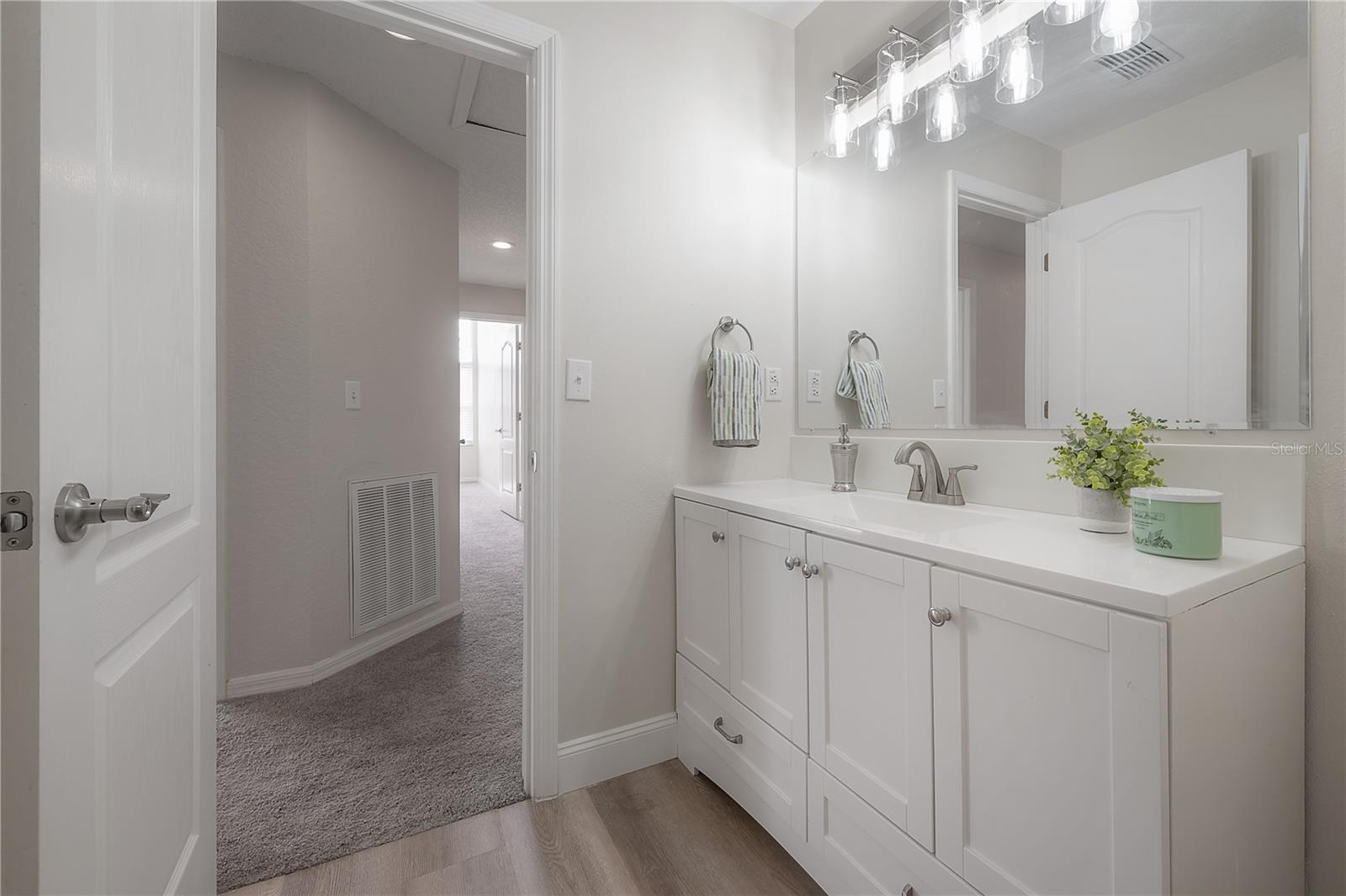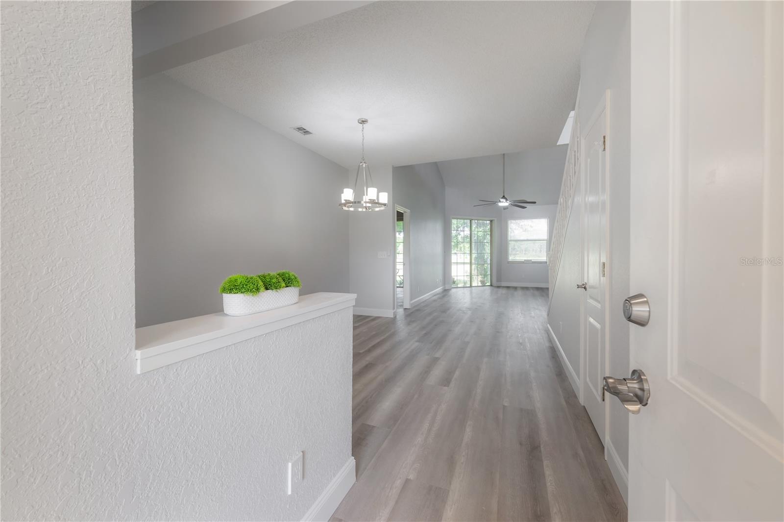 Um olhar e você estará pronto para se mudar! Esta grande casa de 3 quartos e 2 1/2 de banho é totalmente atualizada e possui uma varanda de tela privada com vista para o campo de golfe de East Bay. Quando você entra na casa, você encontrará um grande piso plano aberto, incluindo armários atualizados, granito novo e todos os novos aparelhos da cozinha. Há um espaço para comer ou um café e um espaço de jantar separado. Os tetos de 20 'na sala de estar e no quarto principal são complementados pelo novo piso de tábua de vinil de luxo em todo o nível principal. Você pode caminhar pela sala de estar ou portas deslizantes do quarto principal para um privado, exibido na varanda com vista para o campo de golfe. O grande quarto principal como banheiro da suíte com chuveiro, pias duplas, armário de linho e um grande armário. O segundo andar tem uma varanda para desfrutar do nascer do sol da manhã e de um grande Den/Office/Office/Entretenment Area para expandir seu espaço de vida. O segundo e o terceiro quartos estão no 2º andar e têm fácil acesso a um banheiro grande e completo. Novos pisos e atualizações em toda a propriedade. A moradia possui uma garagem de 2 carros e uma garagem particular. A comunidade Green Willow tem um pool comunitário. A taxa mensal do HOA inclui água e esgoto. A propriedade está na zona X e não sofreu danos ou água perto dela durante os furacões.
