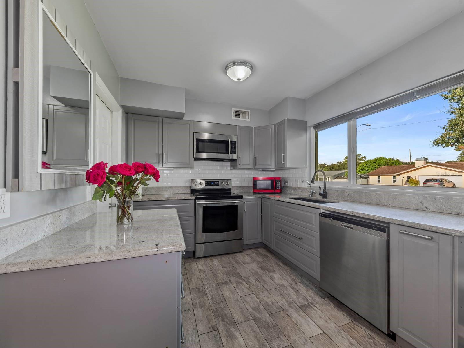 Fabulosa e remodelada Block Home a poucos minutos de Indian Rocks Beach, no maravilhoso bairro de Grove Lake Manor. Apresentando uma elevação maravilhosa situada em quase 1/4 acre de propriedade, esta casa de 2 quartos e 2 banheiros completos tem uma planta bem equipada com muita luz natural e cores neutras. Pisos de madeira projetada adornam as principais áreas de estar e tábuas de azulejos atualizadas estão na cozinha. Atualizações adicionais incluem janelas de painel duplo e persianas anti-furacão (isso pode reduzir o seguro do proprietário da sua casa). Uma vez lá dentro, você será recebido pela sala de estar aconchegante e convidativa que se conecta à sala de jantar e se abre para a cozinha. A cozinha foi remodelada com bom gosto com eletrodomésticos de aço inoxidável, bancadas em granito e armários soft close. Um filtro de água de osmose reversa foi adicionado na cozinha para trazer a você a água mais saborosa e saudável. Adjacente à sala de jantar fica a sala da família que traz o ar livre com todas as janelas e portas de vidro deslizantes. Aproveite a brisa fresca da Flórida em sua tela fechada em Lanai. O Mirante do quintal e quintal totalmente vedado agregam ambiente, privacidade e tranquilidade, enquanto o galpão de arrumação pode ajudar a mantê-lo organizado. Há muito espaço no quintal para adicionar uma piscina. Ambos os quartos são espaçosos, com amplo espaço no armário. O ar condicionado foi substituído em 2019. Aquecedor de água quente substituído em 2023. Indian Rocks Beach fica a poucos minutos de distância! Uma variedade de lojas, restaurantes, entretenimento e hospitais estão nas proximidades. O orgulho pela propriedade aparece nesta casa extremamente bem conservada. Remodelado e atualizado com perfeição. Tudo o que você precisa fazer é desempacotar e aproveitar! Bem-vindo ao lar!