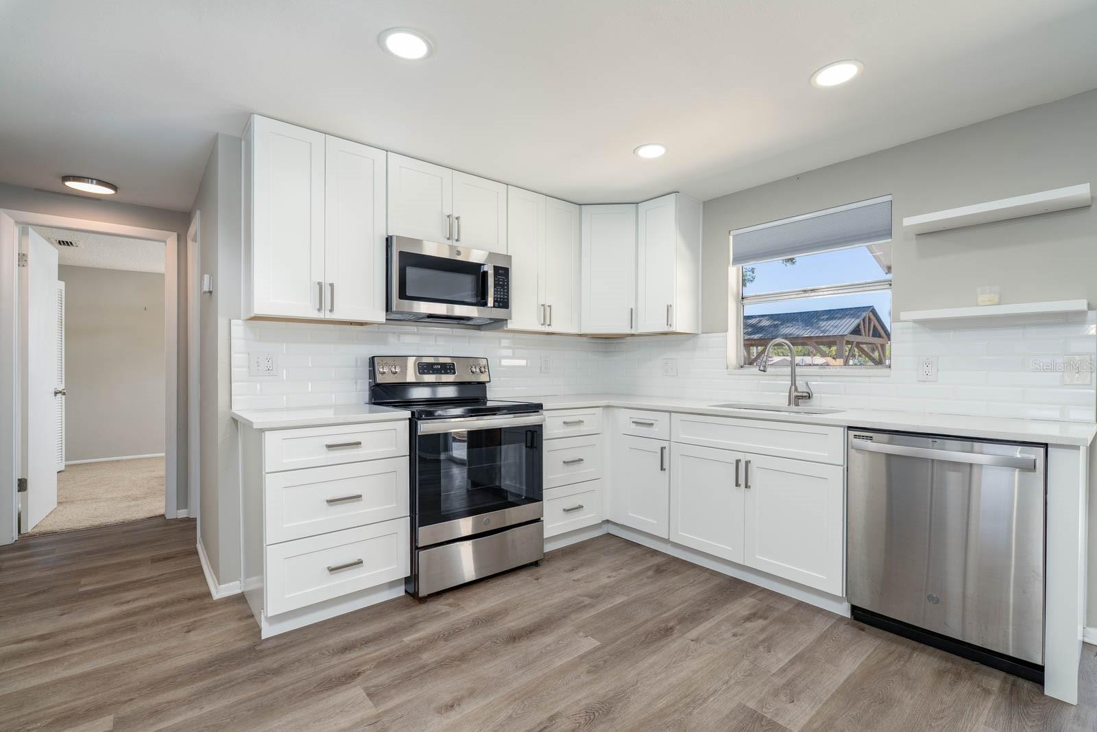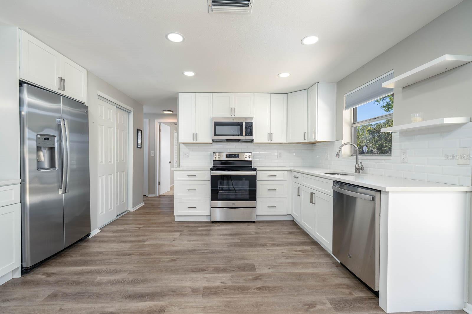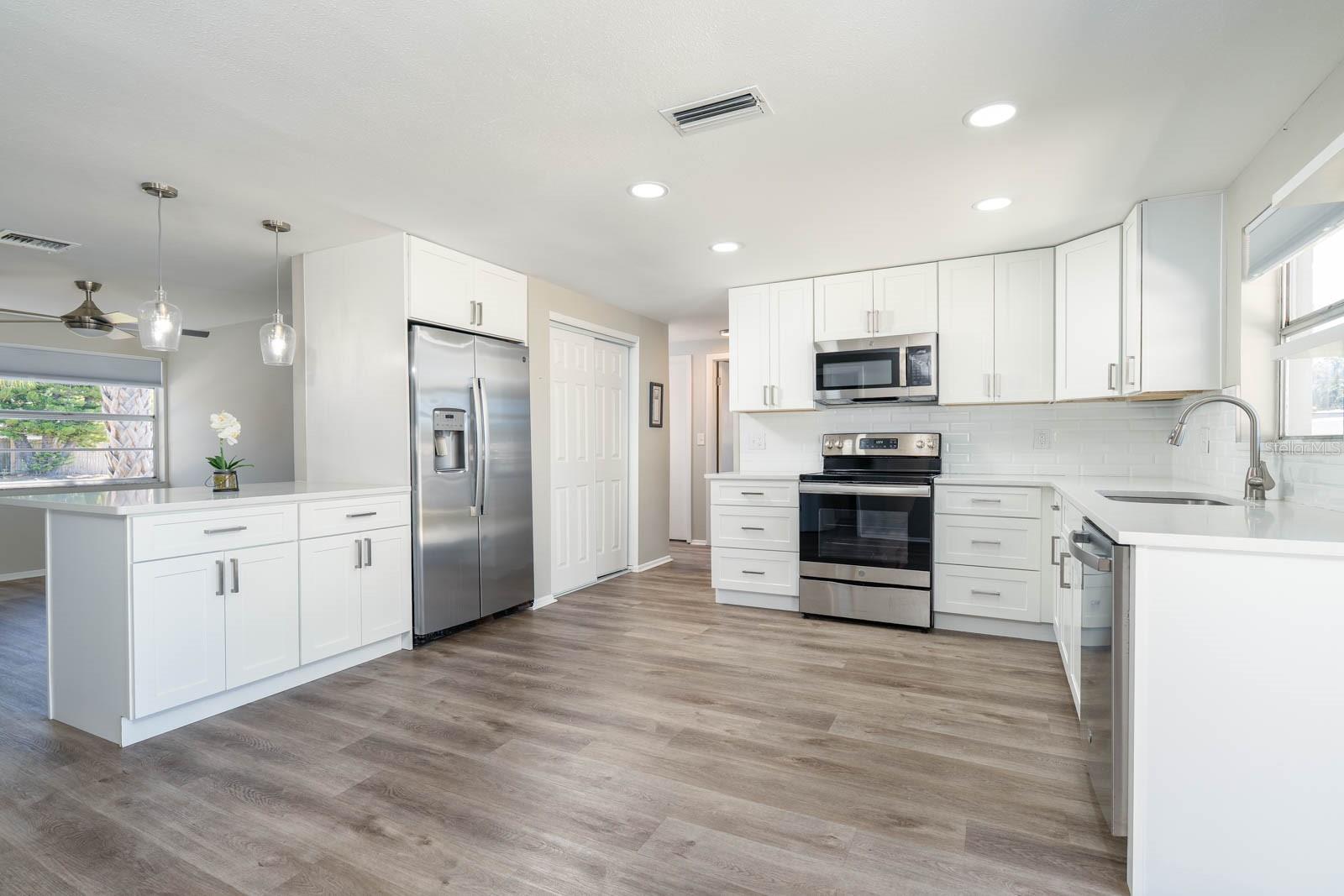Bem -vindo a este lote de canto de garagem de 4 quartos, de 4 quartos, de 1 carro, localizado na área de Ridgecrest. Esta casa não está em uma zona de inundação e também não tem HOA. *** Pintura externa fresca! *** está linda! Estacione seu barco/RV/brinquedos na entrada de automóveis de grandes dimensões !! Um novo telhado foi instalado em 2021 e um novo HVAC em 2021. Observe o belo apelo ao meio -fio enquanto você dirige até a casa com tinta e paisagismo externos mais recentes. A cozinha foi atualizada com armários personalizados, bancadas de quartzo, utensílios de aço inoxidável, backsplash de ladrilhos de metrô personalizados e bar de café da manhã. As áreas de estar também foram atualizadas com pisos de vinil de luxo à prova d'água, tinta e utensílios. A suíte primária é espaçosa com piso atualizado e tem um banheiro privativo. Os quartos dos hóspedes são amplo. O quarto quarto oferece a opção de um escritório em casa/espaço flexível. O banheiro do Hall tem um combo de chuveiro/banheira atualizado. As portas deslizantes levam à área do pátio e ao grande quintal - perfeito para entretenimento! Bônus churrasco/pátio de incêndio e pátio grande o suficiente para uma piscina! Apenas 6 milhas para a praia e fácil acesso à Pinellas Trail, perto de John S. Taylor Park, Escolas, restaurantes/compras do centro da cidade, jardins botânicos da Flórida, Largo Medical Center e muito mais!