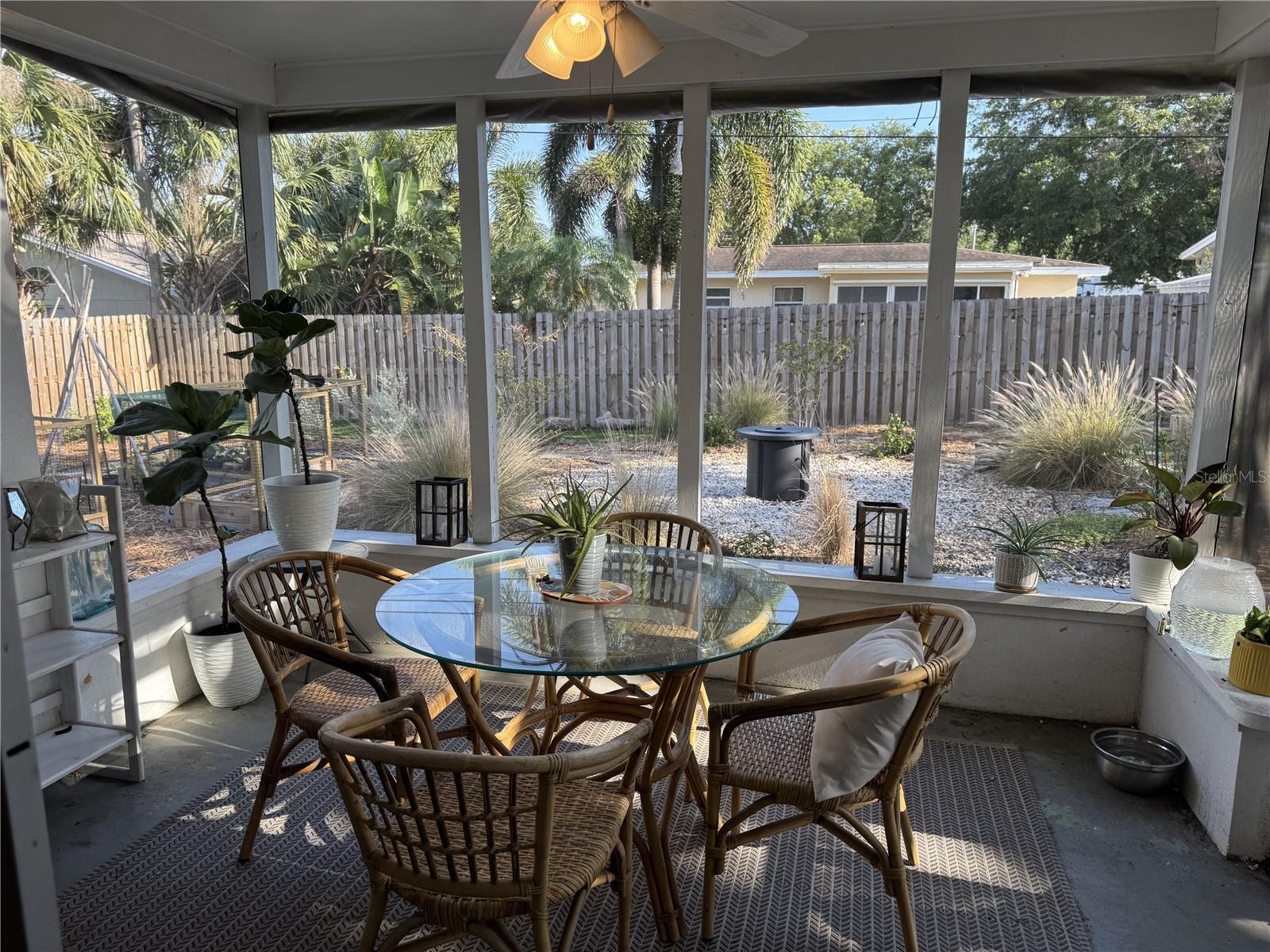 Você está procurando uma casa atualizada e de baixa manutenção? É isso !! A jóia moderna de meados do século, solidamente construída, teve muitas atualizações nos últimos 4 anos. No interior, a cozinha possui armários personalizados e aparelhos inoxidáveis mais novos que complementam o estilo da casa. Os pisos do Terrazzo acrescentam esse toque especial ao ambiente da casa. Os dois quartos são espaçosos e têm sistemas de armários profissionais instalados. O banheiro original funciona perfeitamente e aumenta o charme contemporâneo da época. A varanda da tela possui novas triagens e tons para ajudar a manter o sol (ou chuva). O quintal foi paisagístico com flora amigável da Flórida e convida festas na área de estar, assando marshmallows ao redor da fogueira ou cultivando vegetais nos leitos de jardim elevados. Esta casa fica em um local conveniente perto de compras, escolas e menos de 3 km da praia. A faculdade fica a menos de 3 km de distância. Você pode andar de bicicleta ou caminhar até a trilha de bicicletas a meia milha de distância ou ir a um parque de Walsingham nas proximidades, que oferece uma rampa de lançamento de barco a um lago de água doce (motores elétricos, pesca, caiaque) e uma área de caminhada a cavalo, bicicleta e trilhas para caminhada. O Walsingham Park também tem um ótimo parque para cães. O teto e o painel elétrico foram substituídos em 2021. As janelas de furacões foram instaladas nas quatro janelas voltadas para o quintal em 2024 e o restante das aberturas possui persianas de furacões. A porta da garagem foi substituída por uma porta com classificação de furacões e o abridor de porta mais silencioso que você pode imaginar. A casa não está em uma área da zona de inundação e nunca teve problemas de tempestade.