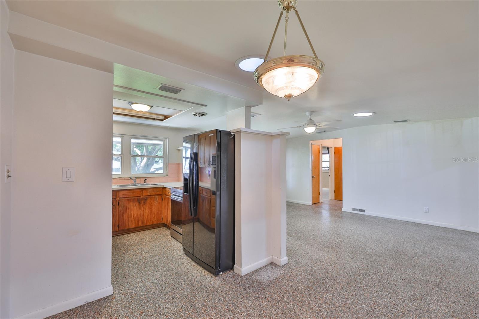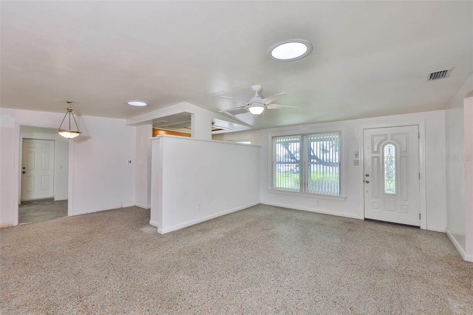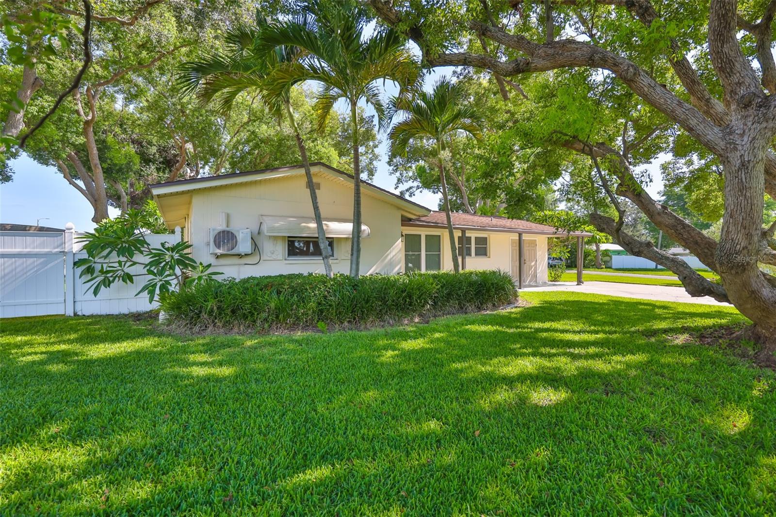 Esta casa de dois quartos e dois banheiros oferece uma planta aberta com possibilidades de transformar a garagem acabada com ar condicionado em um terceiro quarto e banheiro. Há um chuveiro e uma cômoda junto com uma pia; canalizado e pronto para uso nesta sala. A lavadora/secadora de US$ 1.800 também está nesta área. Situado no final de duas ruas, existe um espaço aberto (servidão em calçada) propriedade do concelho e da cidade contíguo à zona sul do imóvel em questão. Este é um lote tranquilo e privado. (Veja a foto aérea). Houve muitas melhorias na casa. Existe um sistema de irrigação ativo com três poços e quatro zonas. Há um galpão Lark no quintal com eletricidade. Um plug-in de 50 Amp para um trailer em frente ao galpão. Janelas duplas resistentes a impactos em toda a casa. A casa fica a uma altitude de 70 pés (aproximadamente) e é uma zona de não evacuação. Há duas belas árvores de sombra na parte traseira da propriedade e uma árvore de cânfora sombreando uma parte do jardim da frente. Por estar no condado não incorporado de Pinellas, isso oferece ao comprador muitas oportunidades.