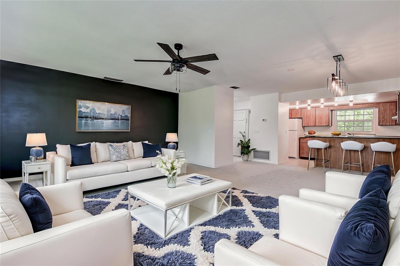 Uma ou mais fotos foram praticamente encenadas. Descubra seu retiro perfeito neste impressionante condomínio de 2 quartos e 2 banheiros, localizado no pitoresco clube e campo de golfe East Bay Country. Com mais de 1.200 pés quadrados de espaço bem projetado, esta casa é perfeita para relaxamento e entretenimento. A sala flui perfeitamente para a cozinha e o espaço de jantar, criando uma atmosfera convidativa. O carpete novo instalado em 2025, interior recém-pintado e todas as novas janelas de impacto do furacão e portas de vidro com vários deslizamentos, economizando milhares de dólares. As portas de vidro com vários deslizamentos abrem quase todo o caminho, melhorando a conexão entre o espaço de estar interno e externo. Ambos os quartos são generosamente de tamanho e completo com seu próprio banheiro. Também não faltam espaço no armário neste condomínio! Com um armário em quase todos os cômodos da casa. Desfrute de vistas deslumbrantes do campo de golfe da sua própria varanda privada, com uma lavadora privada e armário de secadores. Uma vaga de estacionamento privada encontrada do lado de fora da sua unidade com uma garagem coberta e muito estacionamento para visitantes. Aproveite a tranquilidade de uma comunidade isolada com um baixo HOA de US $ 575 por mês. Perto de belas praias, excelentes compras e uma variedade de opções de refeições. Ligue hoje antes de se for!