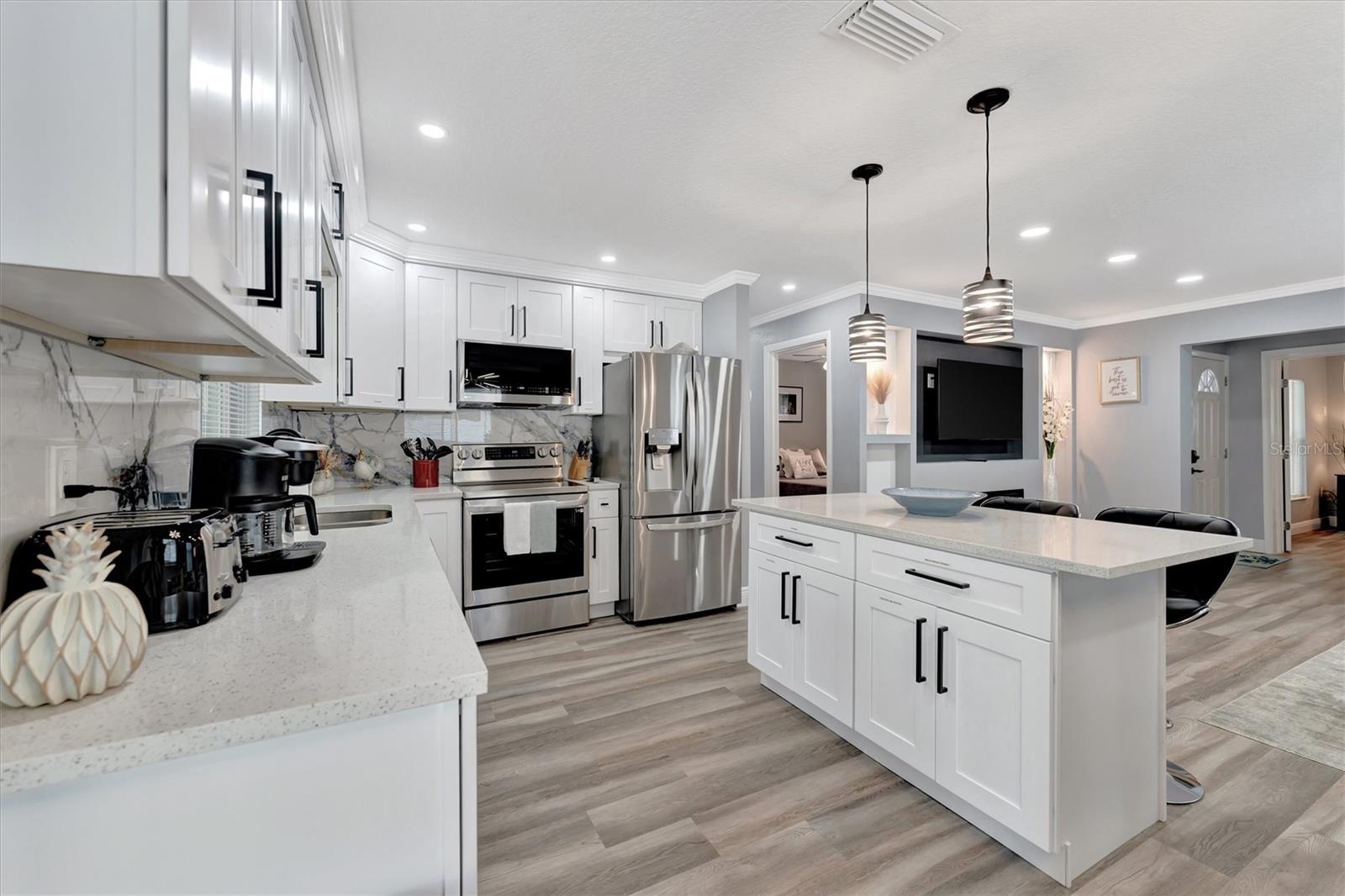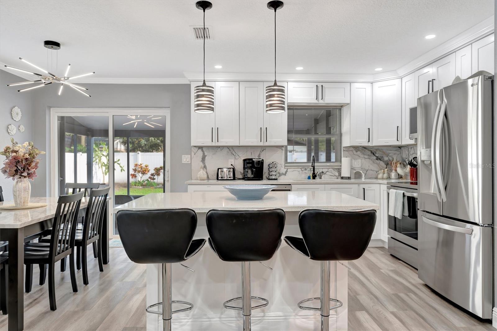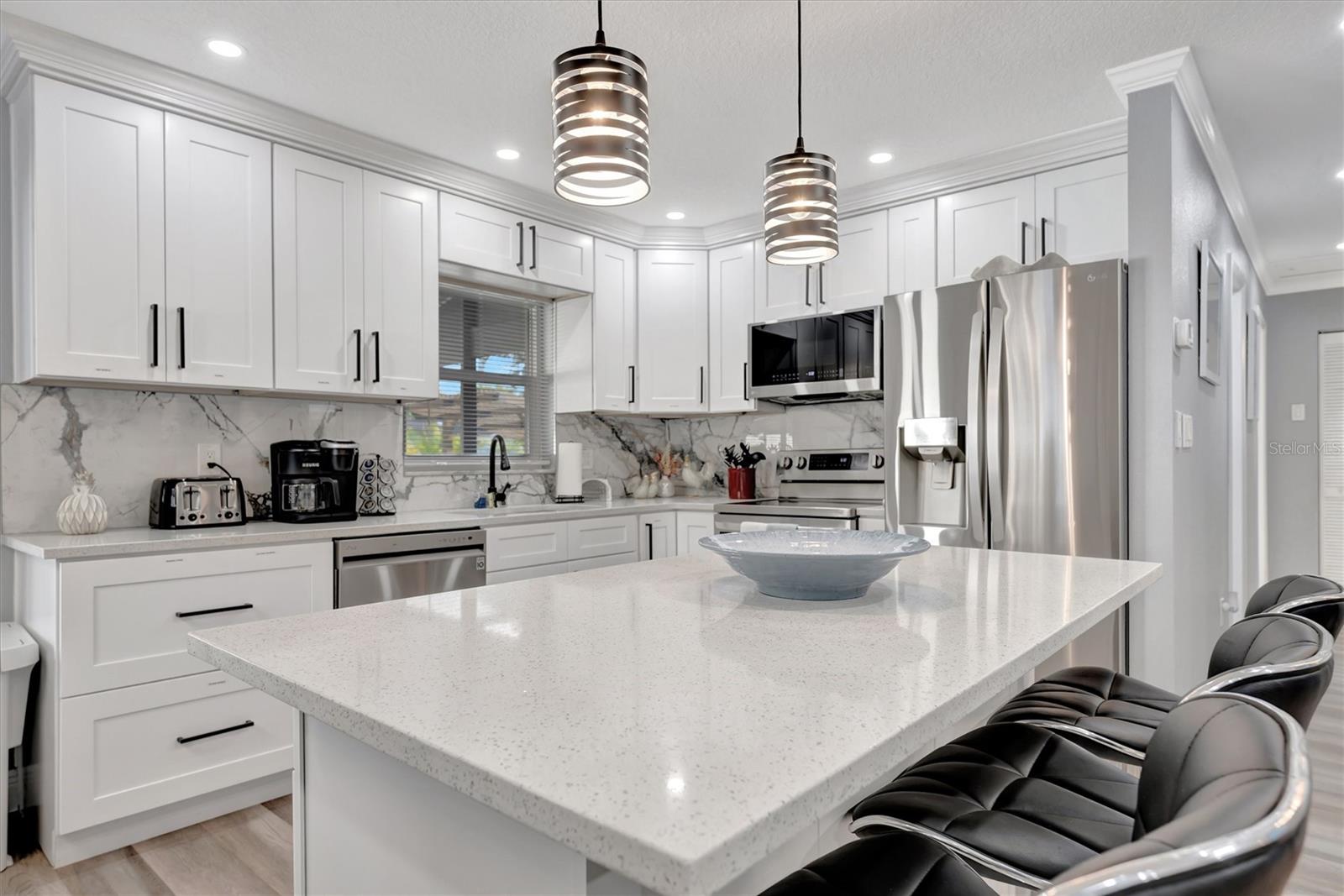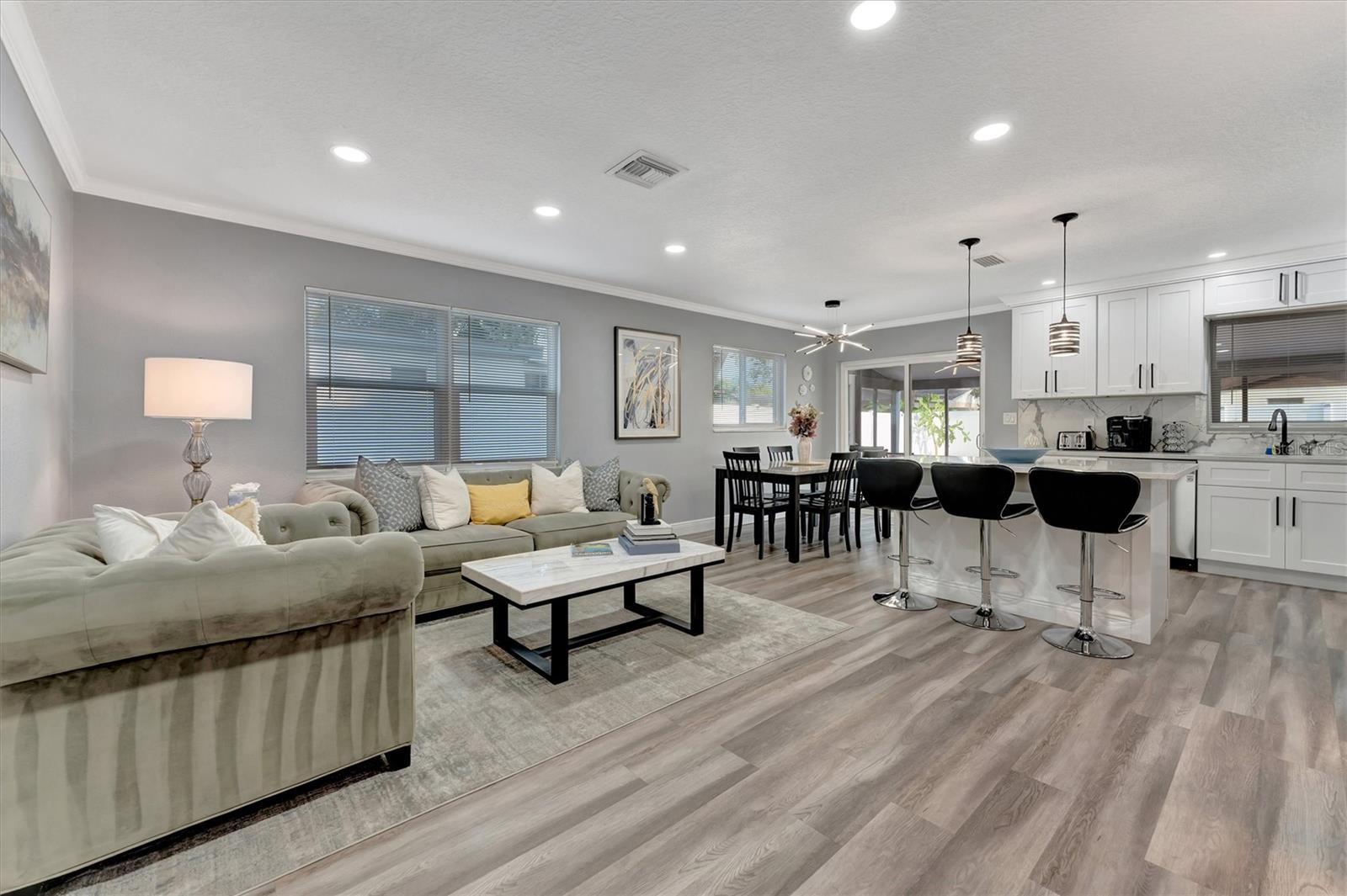 Bem-vindo ao 2918 19th Pl SW no Largo - uma deslumbrante casa de 4 quartos e 2 banheiros que foi completamente remodelada com acabamentos modernos e detalhes atenciosos. Da planta baixa de conceito aberto aos tetos limpos com iluminação embutida de LED, janelas com impacto de furacão e piso luxuoso de pranchas de vinil, cada canto desta casa foi projetado com conforto e estilo em mente. O coração da casa é a cozinha lindamente atualizada com bancadas de quartzo, armários shaker, um backsplash elegante, uma grande ilha com assentos de bar e eletrodomésticos LG premium, todos realçados por sancas e fluindo perfeitamente para as áreas de estar e jantar, onde uma lareira elétrica moderna cria o ponto focal perfeito. A espaçosa suíte principal é um retiro privado com banheiro privativo tipo spa, pia dupla, chuveiro com box de vidro e banheira de imersão separada, enquanto os quartos adicionais são de tamanho generoso, com armários grandes e um banheiro bem equipado no corredor com uma combinação banheira/chuveiro. Uma lavanderia dedicada com lavadora e secadora acrescenta comodidade ao dia a dia. Portas de vidro deslizantes se abrem para uma varanda protegida que leva a um quintal totalmente cercado completo com um pátio pavimentado, banheira de hidromassagem totalmente nova com pérgula e muito espaço verde para crianças ou animais de estimação brincarem, tornando-o um oásis ao ar livre ideal. Com excelente atratividade e tranquilidade proporcionada por um AC 2016, telhado 2023 e aquecedor de água 2023, esta casa está pronta para morar e excepcionalmente bem conservada. Também pode ser vendido totalmente mobiliado – incluindo uma nova churrasqueira Weber e banheira de hidromassagem – e atualmente opera como um Airbnb lucrativo, com documentos financeiros disponíveis mediante solicitação para compradores interessados em continuar seu sucesso de aluguel de curto prazo. Localizada a apenas 7 minutos de carro das belas praias do Golfo e perto de alguns dos melhores restaurantes, lojas e entretenimento da região, esta propriedade oferece a combinação perfeita de luxo moderno, funcionalidade diária e um estilo de vida imbatível no coração do Largo.
