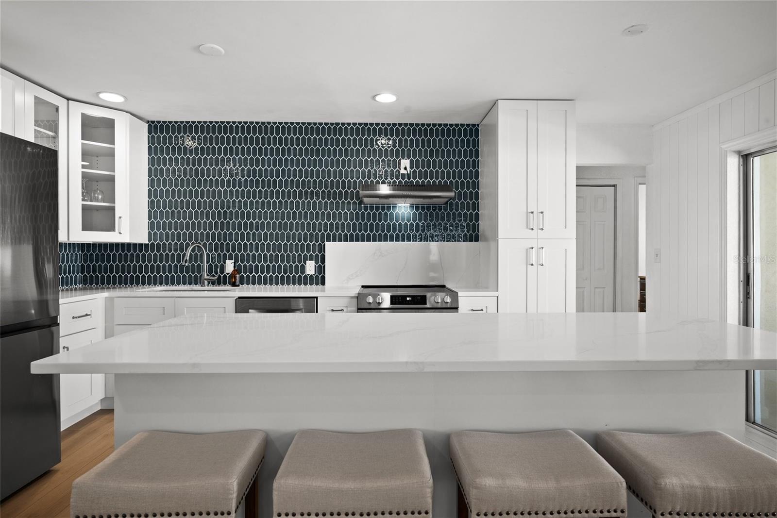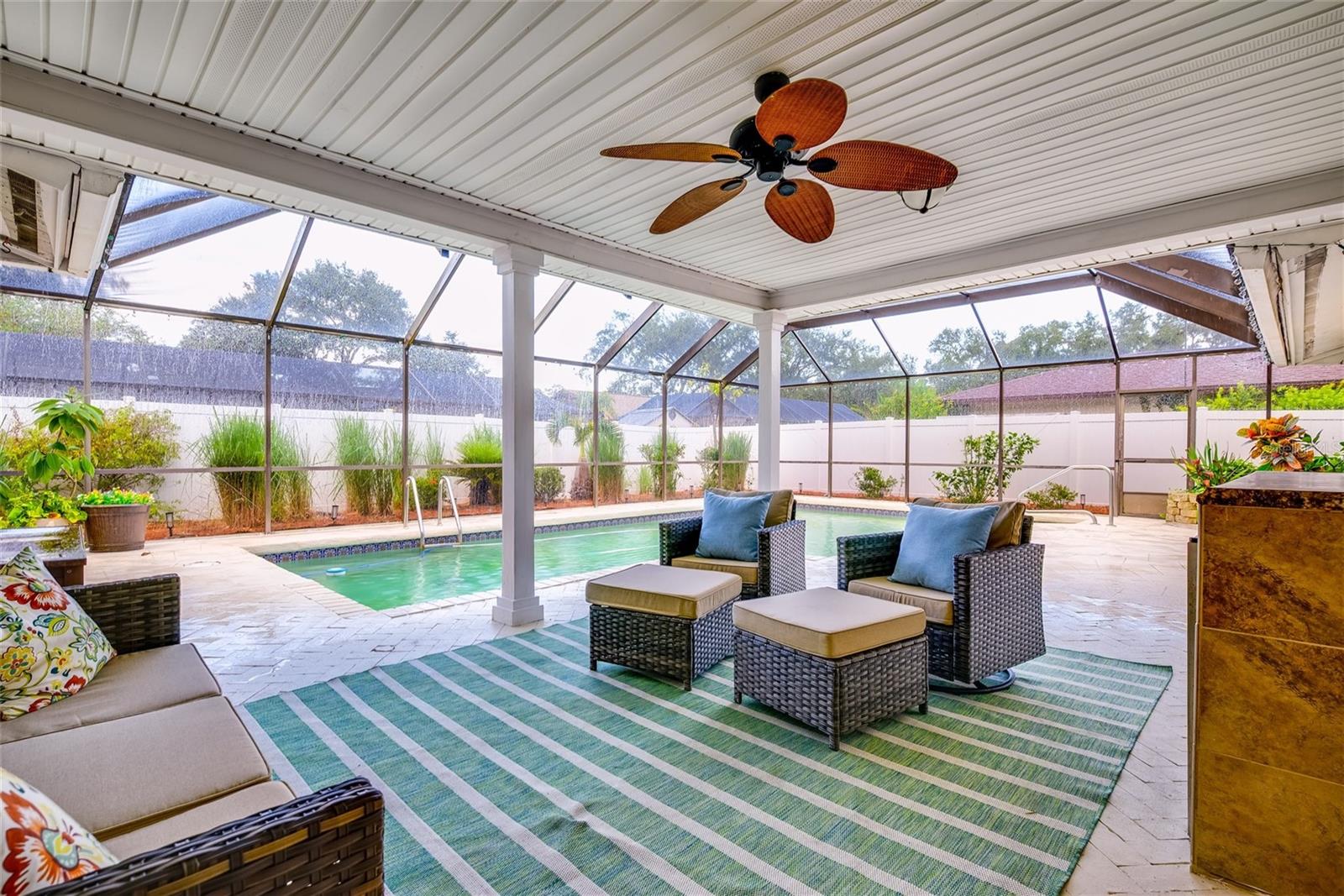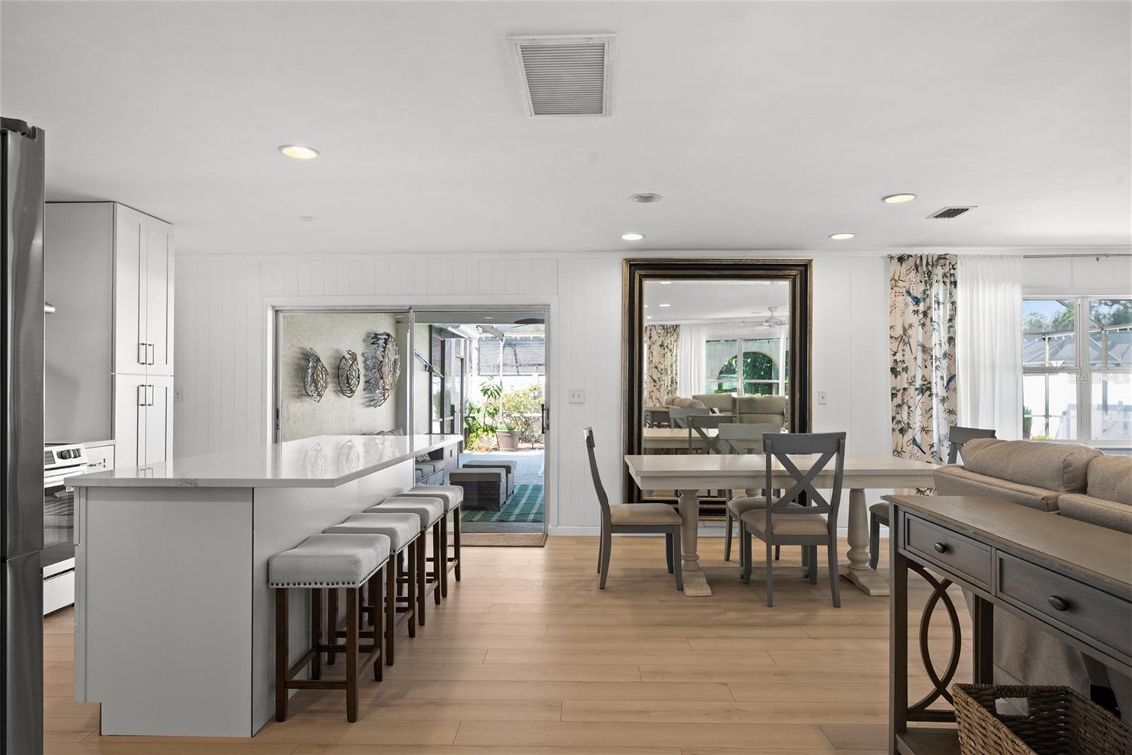 Recém-renovado, plano dividido 3 br/ 2 ba/ 2 carros gar. casa com piscina - 3 km da praia! Esta propriedade acaba de passar por uma reforma atraente e apresenta um design moderno, fluido e ABERTO que os proprietários MOTIVADOS estão prontos para você aproveitar! Entre em uma planta aberta banhada por luz natural, com lindo e luxuoso piso de pranchas de vinil por toda parte. O coração da casa é a cozinha totalmente nova, o sonho de um chef com elegantes bancadas de quartzo, eletrodomésticos de aço inoxidável novos e nunca usados, armários personalizados com fechamento suave, backsplash de azulejos personalizados e uma ilha espaçosa perfeita para trabalhos de preparação e jantares casuais. A suíte principal com NOVO WALK-IN CLOSET e BANHEIRO EN-SUITE é um retiro sereno com um banheiro master recém-remodelado com um LUXUOSO box amplo de grandes dimensões, chuveiro de efeito chuva com azulejos personalizados e VANIDADES DUPLAS. *Observação Os planos de móveis e armários personalizados By Design para armários podem ser adicionados como uma opção à sua compra! Do lado de fora, a área de varanda protegida continua sendo um paraíso para artistas, completa com uma área de serviço ao ar livre e lounge coberto, pronta para sua próxima reunião familiar! Aproveite a vida na Flórida o ano todo com sua piscina cintilante tendo o AQUECEDOR como peça central. Benefícios bônus e tranquilidade: Esta casa oferece mais do que apenas uma aparência nova - ela vem com atualizações significativas do sistema, incluindo os dutos de ar condicionado sendo todos refeitos. O telhado, a unidade de ar condicionado e o aquecedor de água têm aproximadamente 8 a 10 anos de idade. Também está incluído um refrigerador adicional de aço inoxidável, além de lavadora/secadora e armários de armazenamento extra grandes na ampla garagem para 2 carros! Desfrute de uma localização conveniente em um ótimo bairro familiar. Esta propriedade oferece tranquilidade, pois é alta e seca em uma zona sem evacuação, X, sem inundação. Não perca a oportunidade de possuir uma casa de designer refeita em uma rua excelente com todas as escolas Seminole!