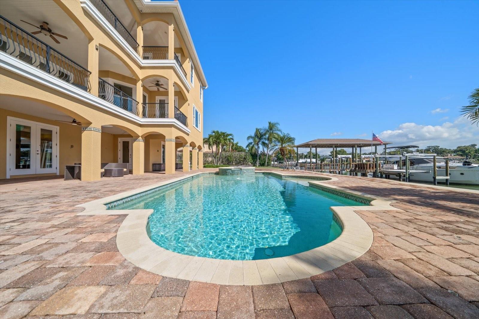 Situada na altamente cobiçada comunidade de Harbour Bluffs, esta propriedade de inspiração mediterrânea exala um apelo grandioso e fica em um terreno raro, quase duplo, com paisagismo tropical e uma entrada circular pavimentada. Construída em 2007, esta casa atende a todos os padrões contra furacões e não sofreu nenhuma intrusão de água durante as enchentes sem precedentes do ano passado, proporcionando tranquilidade juntamente com seu design luxuoso. Passe pela entrada de porta dupla até tetos altos e paredes de janelas e portas que emolduram perfeitamente a vista serena do mar. A sala de estar formal impressiona com detalhes em ferro forjado e lustre, enquanto a sala de jantar formal, localizada ao lado da cozinha, garante entretenimento sem esforço. No coração da casa, a espaçosa cozinha possui balcões de granito, eletrodomésticos de aço inoxidável e uma grande ilha com assentos, todos abrindo para uma sala familiar com uma lareira aconchegante e portas francesas que levam à piscina e áreas de entretenimento ao ar livre. Aproveite as manhãs observando golfinhos brincando na cozinha com vista para o mar ou saia para relaxar em sua piscina estilo resort e amplos espaços ao ar livre, incluindo um belo quintal lateral e espaço verde. A suíte principal é um retiro luxuoso com vistas deslumbrantes para o mar, box amplo personalizado, banheira de imersão, dois sanitários privativos, amplo balcão e porta francesa de acesso a um pátio coberto. Os quartos adicionais estão bem equipados com muitos armários e vista para o mar, enquanto um conveniente quarto de hóspedes no andar de baixo oferece privacidade com sua própria varanda e acesso a um banheiro completo. Projetada para os entusiastas de passeios de barco e pesca, a propriedade dispõe de um escorregador coberto para águas profundas com elevador de 30.000 libras e um elevador adicional de 10.000 libras. As comodidades adicionais incluem uma garagem ampla, lavanderia grande e elevador conveniente, criando a melhor combinação de conforto, luxo e funcionalidade. Não perca esta rara oportunidade de possuir uma deslumbrante propriedade à beira-mar em Harbour Bluffs.