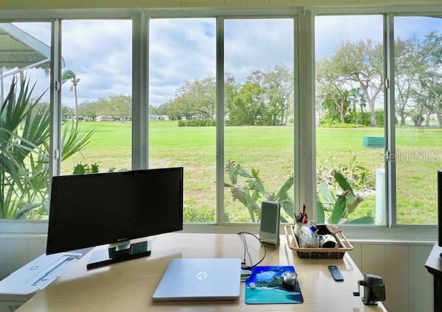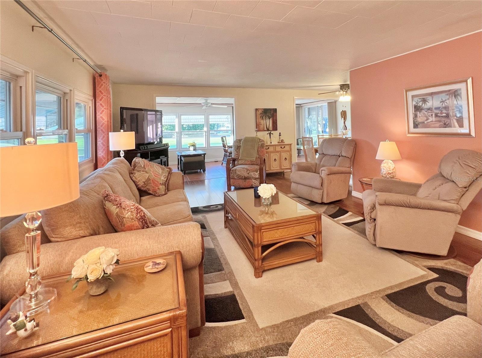 NO CAMPO DE GOLFE! Não perca esta rara oportunidade de possuir uma casa de 2 quartos e 2 banheiros lindamente conservada em Fairway Village, com 1.372 pés quadrados de área útil, além de um escritório fechado bônus/quarto na Flórida, oferecendo vistas deslumbrantes do campo de golfe. Esta casa excepcional possui um telhado de metal bem conservado, revestimento de vinil, janelas mais recentes, válvulas duplas de corte de água externas, um amaciante de água e uma barreira de vapor em ótimo estado com rodapé de bloco decorativo. O sistema de ar condicionado é bem conservado (2018), o aquecedor de água (2024) e a secadora (2024) proporcionam tranquilidade, enquanto o compensado de 1/2 polegada sob os pisos laminados e as bancadas de granito na cozinha e nos banheiros refletem a qualidade da casa e atualizações cuidadosas. Todos os eletrodomésticos foram atualizados em 2018, e o espaçoso quarto Florida com sofá-cama oferece versatilidade adicional. Ambos os quartos possuem grandes closets, e a casa está sendo oferecida totalmente mobiliada para uma experiência verdadeiramente pronta para morar. Localizado na principal comunidade com mais de 55 anos de Fairway Village - onde uma parte está incluída no preço de tabela - os residentes têm acesso a um novo clube deslumbrante de 19.000 pés quadrados, duas piscinas, jacuzzis, oito quadras de shuffleboard cobertas e um campo de golfe par 3 de 9 buracos por uma pequena taxa. Idealmente situada perto das principais atrações, aeroportos e belas praias da Flórida, esta casa oferece a combinação perfeita de conforto, conveniência e vida em estilo resort. Agende sua exibição privada hoje e experimente você mesmo as vistas deslumbrantes do pôr do sol.