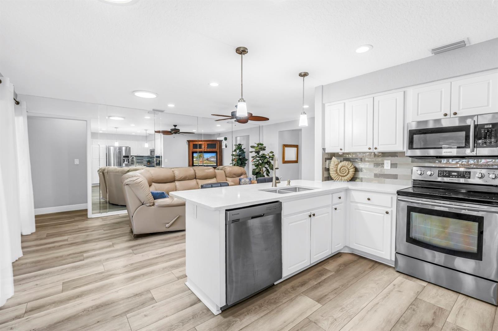 Enorme redução de preço, o vendedor diz vender! Completamente atualizada e pronta para morar, esta casa de 5 quartos e 2 banheiros lindamente conservada e uma garagem enorme combina extensas melhorias modernas com o estilo de vida tranquilo da Flórida. Cuidadosamente reformada, a casa possui janelas de impacto com garantia transferível, reforma de toda a casa, piso atualizado, nova pintura interna, sancas, iluminação embutida e inúmeras atualizações mecânicas e cosméticas, proporcionando verdadeira tranquilidade para o próximo proprietário. A cozinha atualizada apresenta armários brancos, bancadas de quartzo, eletrodomésticos de aço inoxidável, acessórios modernos e uma barra de café da manhã conveniente que se abre para espaços de estar e de jantar bem iluminados - ideal tanto para a vida cotidiana quanto para entretenimento. Os tetos de pipoca foram removidos e substituídos por uma textura atualizada, criando uma sensação limpa e contemporânea em toda a casa. Uma convidativa varanda fechada oferece valioso espaço adicional durante todo o ano, perfeito para relaxar, entreter os hóspedes ou desfrutar das manhãs tranquilas da Flórida. As melhorias externas incluem paisagismo renovado com palmeiras, pavimentação selada, iluminação externa, drenagem atualizada com drenos franceses e sistema de bomba de depósito, e novas calhas com filtros de folhas. Os destaques adicionais incluem um sistema de ar condicionado mais recente, telhado com aproximadamente 4 anos, tomadas e interruptores elétricos atualizados, iluminação LED, ventiladores de teto atualizados, uma garagem de grandes dimensões com piso revestido de poliaspártico, um novo teto de garagem e uma tela retrátil nas portas francesas. Com as novas leis atuais da Flórida sobre ADUs (Unidades de Habitação Auxiliares), os novos proprietários podem facilmente adicionar um banheiro à ADU externa para torná-la totalmente habitável para hóspedes ou renda adicional. Idealmente localizada perto das praias do Golfo, lojas, restaurantes e conveniências do dia a dia, esta casa meticulosamente mantida oferece a combinação perfeita de conforto, atualizações de qualidade e vida pronta para morar na Flórida. Casas que oferecem este nível de atualização e atendimento raramente ficam disponíveis, tornando esta uma oportunidade imperdível.