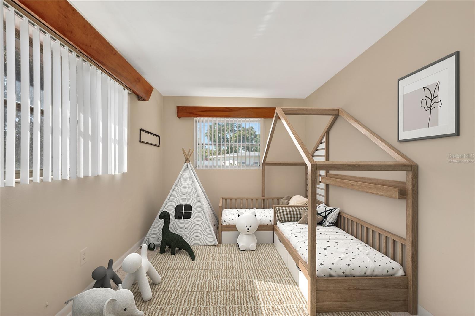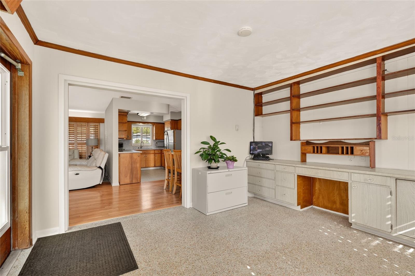 Uma ou mais fotos foram virtualmente encenadas. Algumas casas de fazenda da década de 1950 na Flórida têm um tipo particular de facilidade - baixas, cheias de sol, construídas para o tipo de vida em que a porta do quintal está sempre aberta. Este fica em uma esquina no Valencia Park, no Largo, e proporciona essa sensação desde o momento em que você chega. No interior, o layout é aberto e prático: uma generosa sala de estar com piso laminado e venezianas flui para a área de jantar e cozinha. A cozinha mantém os armários originais em madeira maciça, juntamente com eletrodomésticos em inox e forno embutido. Uma sala bônus fora da área de estar principal é atualmente um escritório doméstico, mas as estantes embutidas, a luz natural e o acesso separado o tornam igualmente adequado como um espaço flexível, sala de jogos ou espaço para hóspedes. Três quartos compartilham um banheiro completo bem proporcionado com piso de cerâmica original por toda parte. Um lavabo na garagem anexa atende às necessidades de serviços públicos sem sair dos espaços principais. Um sistema de segurança de circuito fechado de propriedade privada se comunica com a casa. Nos fundos, um quintal totalmente cercado foi equipado com grama artificial de baixa manutenção que permanece verde durante o verão da Flórida sem irrigação. Um galpão de armazenamento mantém o pátio limpo, e o lote de esquina cria uma profundidade genuína no pátio lateral para estacionamento de trailers ou barcos - um achado cada vez mais raro no condado de Pinellas, sem nenhum HOA para pesar sobre isso. A zona de inundação é X, o que significa que não é necessário seguro contra inundações. O Taylor Park fica a poucos minutos de distância, e a casa fica perto do Largo Mall, do Seminole City Center, dos restaurantes e entretenimento do centro de Largo e das praias do Golfo que definem a vida no condado de Pinellas.