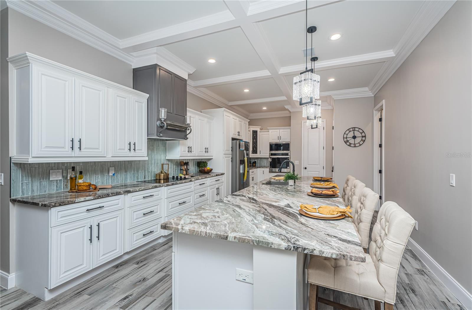 Bem -vindo à sua casa dos sonhos - uma obra -prima de luxo e resiliência modernos. Esta nova construção é uma prova de estilo e segurança, com uma construção de todos os blocos que atende aos mais recentes códigos de furacões, garantindo a paz de espírito nos próximos anos. Ao se aproximar da casa, a varanda coberta acena com uma entrada dramática, adornada com pedra que cria uma sensação instantânea de elegância e calor. Esse espaço convidativo define o tom para toda a residência, prometendo uma mistura de grandeza e conforto. Passe pela grande entrada no átrio com tetos altos de 18 pés, uma maravilha arquitetônica de tirar o fôlego que estabelece uma sensação de espaço e abertura. Esse recurso, juntamente com a varanda coberta de pedra, cria uma recepção verdadeiramente única e inspiradora. A casa abrange mais de 3.200 pés quadrados de espaço de vida meticulosamente projetado, com 4 quartos, 3 com banheiro em anexo e um escritório em casa dedicado. Um dos quartos foi cuidadosamente transformado em uma sala de mídia, completa com armários embutidos, oferecendo um retiro perfeito para o entretenimento. Ao entrar, você é recebido por uma planta aberta adornada com ladrilhos de tábuas de madeira por toda parte, criando um fluxo contínuo e uma sensação de calor. A casa fica alta com tetos de 10 pés, aprimorada por vigas em caixas em vivos, jantares, salas de família, cozinha e o escritório em casa dedicado, complementado pela moldura da coroa em todos os quartos, mostrando uma atenção incomparável aos detalhes. O coração desta casa é, sem dúvida, a cozinha, o deleite de um chef com uma enorme ilha, armários personalizados, utensílios de aço inoxidável e uma despensa espaçosa - tudo sob a grandeza de vigas de alojamento. Adjacente é uma grande lavanderia, acrescentando praticidade ao design elegante. A grandeza continua na suíte do proprietário, com um bar molhado com portas de bolso abrindo para a sala da família para maior conveniência. Este retiro expansivo inclui portas francesas que levam ao oásis do quintal. O banheiro da suíte do proprietário é um refúgio de spa com uma vaidade dupla, um armário de água separado com um bidê, um chuveiro adornado com ladrilhos de vidro e um chuveiro de chuva e uma luxuosa banheira de imersão. O armário do proprietário é um showstopper, com incorporação personalizada e até uma segunda lavadora e secadora para obter a melhor conveniência. Os quartos restantes são igualmente impressionantes, cada um com seu próprio banheiro anexado, garantindo que todos os membros da família desfrutem do epítome de conforto e estilo. Saia para o meticulosamente o jardim da frente, com iluminação paisagística que ilumina a beleza dos arredores. A entrada de automóveis circular, criada com pavimentadoras de tijolos, acrescenta um toque de elegância e praticidade à entrada dessa propriedade excepcional. Esta casa não apenas oferece luxo incomparável, mas também possui um local invejável-a apenas 11 quilômetros de Clearwater Beach, a 20 minutos do Aeroporto Internacional de Tampa e a 25 minutos de carro do centro de São Petersburgo. Experimente o melhor dos dois mundos com esta nova casa de construção excepcional - um santuário onde a elegância encontra resiliência no coração de um local vibrante e conveniente. Programe sua turnê hoje e imagine o extraordinário estilo de vida que o espera. Não é necessário seguro contra inundações. Tour Matterport disponível