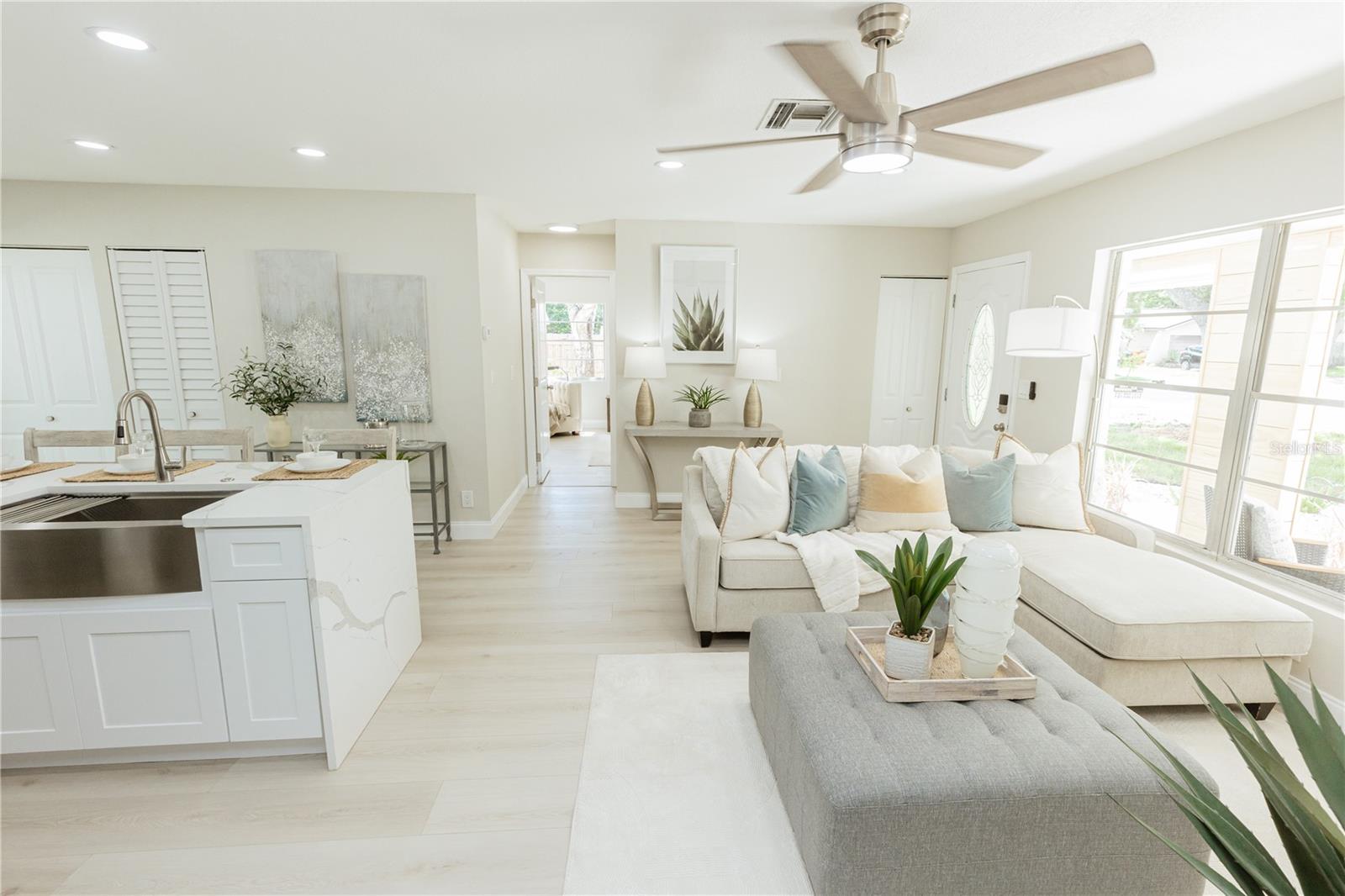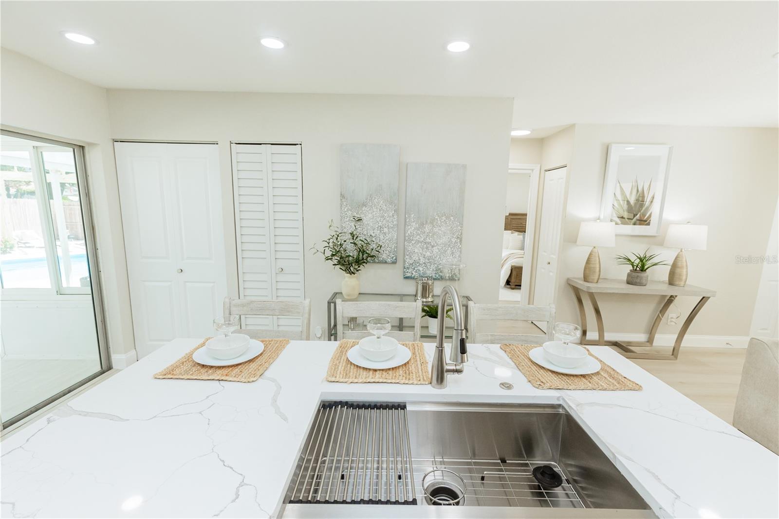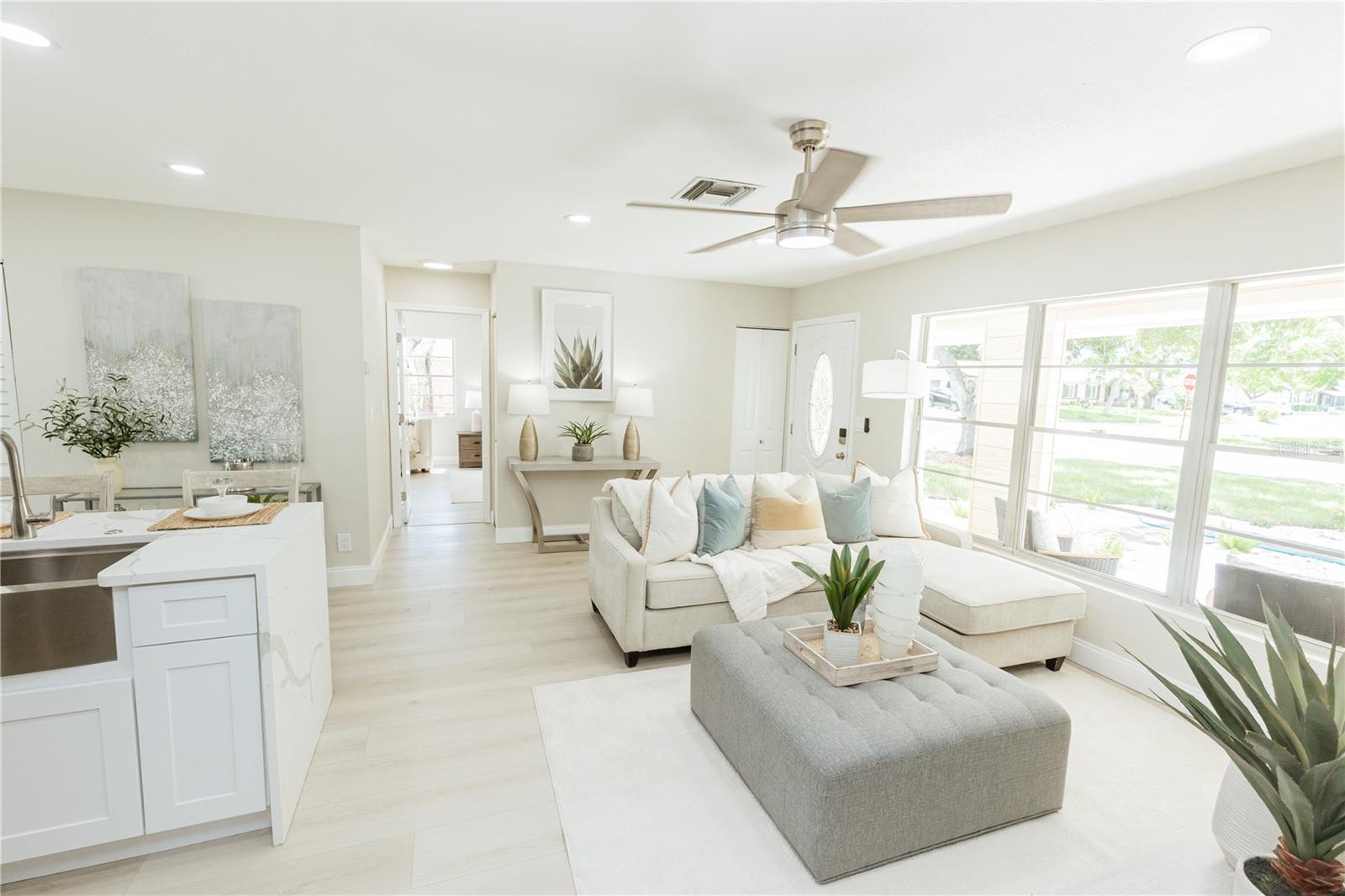 Bem-vindo à casa dos seus sonhos, com uma piscina cintilante de tamanho generoso na ensolarada Flórida! Este retiro lindamente remodelado de 3 quartos e 2 banheiros está perfeitamente situado em um espaçoso terreno de esquina, oferecendo uma mistura de luxo e praticidade. Entre para descobrir um interior convidativo adornado com luxuosos pisos de vinil que o conduzem por uma planta aberta. A cozinha gourmet é uma obra-prima, com bancadas de quartzo, armários shaker, gavetas de fechamento lento e eletrodomésticos de aço inoxidável de última geração. A impressionante ilha de quartzo serve como ponto focal, ideal tanto para a preparação de refeições como para jantares informais. A suíte principal é um refúgio tranquilo, completa com um amplo closet e um amplo banheiro principal. Este santuário semelhante a um spa inclui pias duplas, chuveiro com cascata e acesso direto à área da piscina cintilante - uma mistura perfeita de vida interna e externa. Do lado de fora, o terreno de esquina oferece amplo espaço para atividades ao ar livre e entretenimento, com espaço adicional para estacionar um barco ou trailer convenientemente ao lado da casa. Desfrute da vida ao ar livre durante todo o ano no pátio traseiro, perfeito para noites relaxantes e reuniões com a família e amigos. Localizada no Largo, esta casa não é apenas um oásis privado, mas também oferece potencial para rendimento de aluguer Airbnb, graças ao seu zoneamento. Além disso, beneficie de uma vida energeticamente eficiente com painéis solares pagos. Não perca a oportunidade de possuir esta propriedade excepcional - agende sua exibição hoje e imagine o estilo de vida que este oásis de esquina pode oferecer!