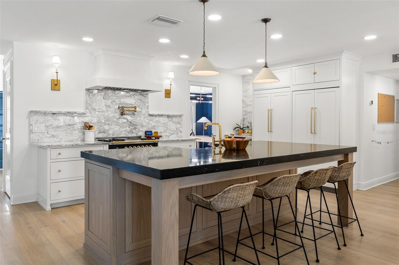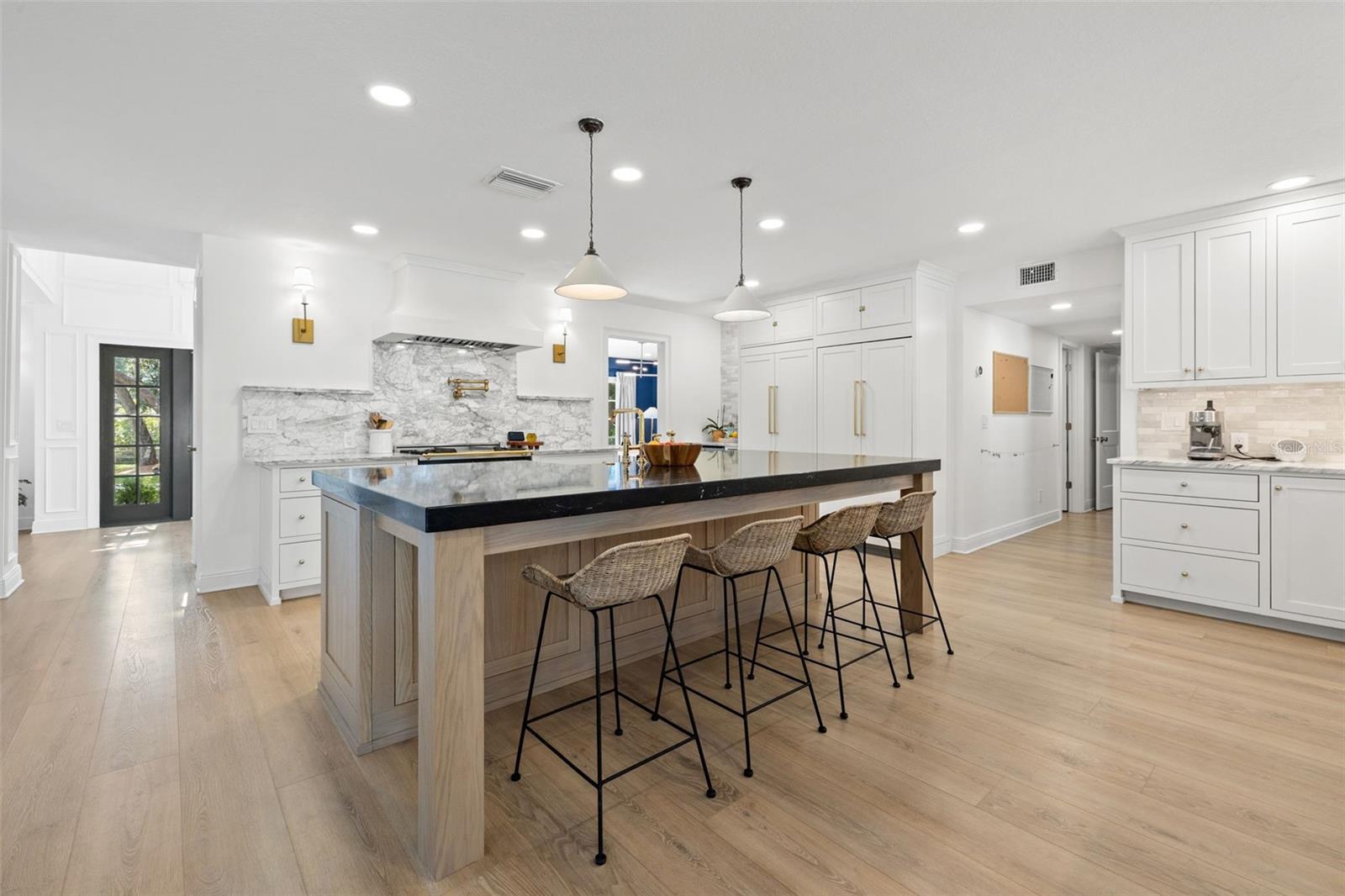 Esta casa é alta e seca e não sofreu danos causados pelo vento ou contra o furacão Helene ou Milton! Bem -vindo à sua grande propriedade! Situado em quase um hectare de terra, esta casa de estilo colonial de Monterey oferece 6 quartos espaçosos e 3 banheiros, totalmente reformados em 2022. Localizado em um canto tranquilo do condado de Pinellas não incorporado, a propriedade é cercada por mais de carvalhos vivos de 70 anos e acessados por um impulso pavimentado privado. A casa possui uma entrada circular de concreto de concreto personalizada incrustada com conchas marinhas, uma almofada de estacionamento separada, portas de entrada dupla de mogno sólido, lâmpadas de entrada de gás de propano e grandes janelas de sacada, evocando o charme de uma antiga mansão da Carolina Southern Antebellum. No interior, a Grand Entryway possui tetos de 17 ', madeira personalizada, uma escada curva e um corrimão de ferro feito sob medida. A grande sala de design aberto oferece espaço versátil para entretenimento, com uma área de jantar fluindo para uma sala de estar com uma lareira a gás, adjacente a uma cozinha personalizada. A cozinha, um sonho para cozinhar e divertir, gira em torno de um carvalho de 9 'e afiado em marmore preto e apresenta armários artesanais localmente, acessórios italianos, um fogão de propano/propano de combustível duplo com forno de convecção, geladeira pronta para painel embutida e lava-louças, microondas subcondutas e duas pias de tamanho total. Recursos inteligentes, como uma despensa escondida, acrescentam seu apelo. Adjacente à cozinha está um escritório em casa bem equipado ou quarto no térreo, com madeira personalizada e um armário de vinho escondido. O banheiro do andar de baixo serve propósitos duplos como banho de hóspedes e banheiro da piscina. A lavanderia é funcional e elegante, com lavadora e secadora de tamanho normal, painéis de placa de contas, armários personalizados, balcões de quartzito preto e um profundo pia de utilidade. Também está incluída uma academia privada (ou 6º quarto) com acabamento em madeira personalizado, tetos de níquel badames e pisos de borracha reciclados duráveis. A sala de bônus, perfeita para uma sala de jogos, sala de teatro ou suíte de sogros, tem sua própria entrada particular. No andar de cima, o quarto principal está cheio de luz natural de grandes janelas e portas francesas. A suíte primária inclui um banheiro com pisos de mármore Carrera, chuveiro de vidro, banheira de imersão separada, grande vaidade de mármore e um closet com cômodas embutidas. Adjacente ao quarto principal está outro quarto grande com um closet. O terceiro banheiro atualizado apresenta uma vaidade dupla, pisos de mármore e uma combinação de banheira/chuveiro de mármore Carrara. Mais dois quartos espaçosos com amplo espaço no armário completam o andar de cima. Do lado de fora, a propriedade possui uma piscina de água salgada personalizada e um spa com uma pavimentadora natural de caver, e paisagismo estabelecido, e um totalmente cercado em quintal para maior privacidade. Esta mansão do sul lindamente restaurada foi meticulosamente atualizada com todos os detalhes em mente. Faça este esplêndido propriedade sua casa para sempre!