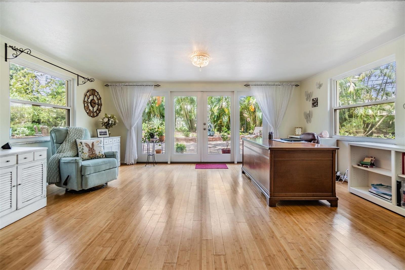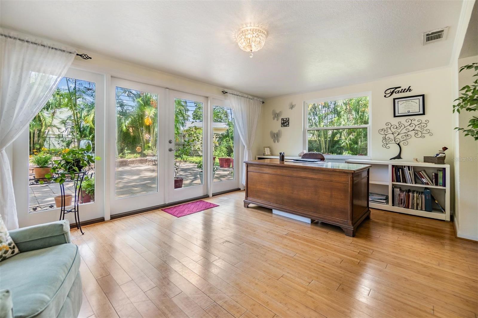 Localização! Localização! Localização! Esta joia da área de Harbour Bluffs/Belleair Bluffs está situada sob os carvalhos maduros com apelo de meio-fio e um grande oásis de quintal com paisagismo profissional. Ao passar pela porta da frente desta encantadora casa de dois quartos e dois banheiros, você apreciará imediatamente o piso de madeira natural e muitas janelas grandes que emolduram as vistas pitorescas do jardim para criar um espaço convidativo e aberto. A cozinha possui armários de madeira natural, bancada em granito e balcão elevado com passagem para a sala de jantar que funciona bem como balcão de café da manhã ou área de serviço para receber convidados. Os chefs também vão adorar o fogão a gás e a grande geladeira LG de aço inoxidável. Convenientemente localizada fora da cozinha está a lavanderia / lama com lavadora, secadora, pia, armários de armazenamento e porta de entrada da garagem para dois carros. O retiro do quarto principal oferece duas grandes janelas, um armário de parede, dois guarda-roupas e um banheiro privativo com chuveiro e uma grande penteadeira com espelho duplo. O banheiro de hóspedes remodelado é elegante e fácil de manter, com sua parede de acrílico Microban e borda da banheira/chuveiro e uma elegante penteadeira branca. O segundo quarto possui dois armários de parede com um sistema de prateleiras versátil, um armário menor para casacos ou sapatos, uma cama embutida personalizada para espaço adicional para dormir quando necessário e duas grandes janelas que oferecem vistas tranquilas para o jardim do quintal. Um dos destaques da casa é a marquise iluminada e alegre, onde portas francesas de vidro revelam o oásis do quintal. Este espaço sereno é o sonho de qualquer amante da natureza, com uma variedade de plantas nativas da Flórida, uma cerejeira que dá frutos nove meses por ano, além de uma amoreira e um pessegueiro. O amplo pátio pavimentado é ideal para desfrutar do pôr do sol que lança belos raios de cor pelo quintal, fazer churrascos com a família ou receber convidados. Outras características notáveis incluem o lindo piso de madeira natural que flui pelas áreas de estar e quartos, o novo galpão (2024) estilo bangalô 8x12 protegido com âncoras de furacão e em localização elevada em zona não inundada. Este bairro tranquilo e amigável fica a apenas 1,6 km de mercearias, boutiques, restaurantes e a menos de 5 km de Belleair Beach e a menos de 11 km da renomada Clearwater Beach. Uma casa imperdível em localização privilegiada - Agende hoje mesmo seu tour privado! ****Oferecendo uma redução de taxa de 1% nos primeiros 12 meses sem nenhum custo quando você usa nosso credor aprovado.****