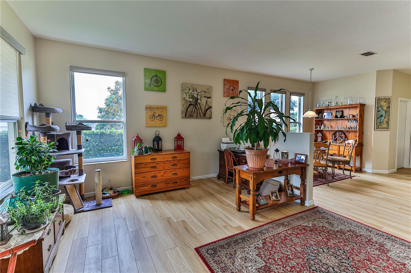 Bem-vindo a esta casa meticulosamente mantida de 2 quartos e 2 banheiros, situada em um espaçoso terreno de grandes dimensões de 0,24 acres. Esta propriedade livre de manutenção oferece a combinação perfeita de conforto e estilo, apresentando uma planta aberta que conecta perfeitamente as áreas de estar, realçada por claraboias que preenchem o espaço com luz natural. Entre para encontrar pisos luxuosos de pranchas de vinil (LVP), adicionando um toque de elegância e fácil manutenção. A área de estar possui persianas com controle remoto para sua conveniência. A grande suíte principal é um verdadeiro refúgio, completa com closets duplos, proporcionando amplo espaço de armazenamento. Aproveite o melhor da vida na Flórida na varanda com tela, ótima para relaxar ou se divertir. Esta casa também oferece uma associação social, dando-lhe acesso a comodidades e atividades comunitárias. As atualizações práticas incluem um novo telhado instalado em 2021, uma nova unidade de AC instalada em 2022 e uma lavadora e secadora substituída em 2022, garantindo que você possa morar com tranquilidade. A garagem para 2 carros oferece bastante espaço para veículos e arrumação.