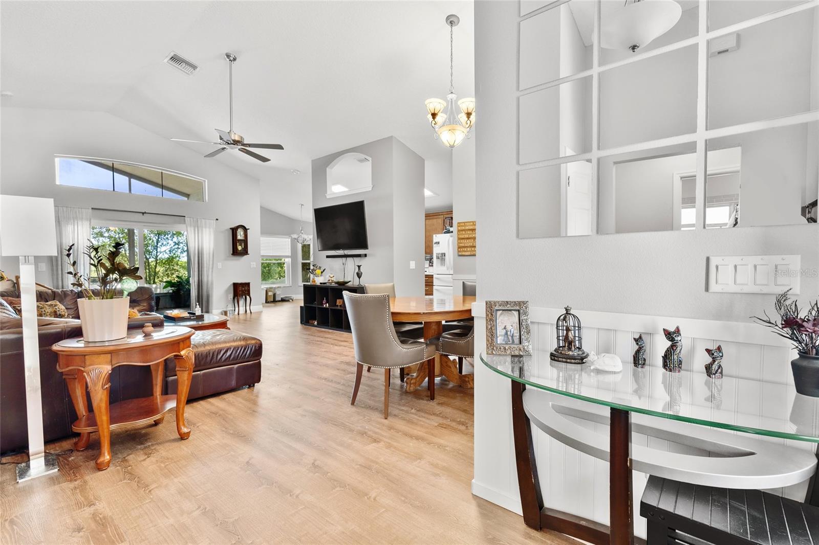 As atualizações infinitas aguardam nesta encantadora casa de dois quartos com um escritório que poderia facilmente ser um terceiro quarto, localizado no procurado bairro de Silver Lake, em Leesburg. A cozinha remodelada apresenta armários elegantes, bancadas em granito, backsplash chique e uma faixa de gás. O espaçoso quarto principal oferece um closet, enquanto o banheiro principal inclui vaidades duplas e um chuveiro de azulejos. Aproveite a conveniência de uma lavanderia interna com armazenamento extra. A sala possui portas de vidro deslizantes mais recentes que levam a uma varanda exibida com um ventilador de teto. O lindamente paisagístico da frente e o quintal incluem um pátio de pavimentação personalizado com uma fogueira a lenha. Sem vizinhos traseiros e um quintal totalmente cercado, a privacidade é garantida. Atualizações adicionais incluem janelas mais recentes, teto, HVAC e aquecedor de água. Localizado em um beco sem saída tranquilo, esta casa pronta para se mover tudo-não perde!